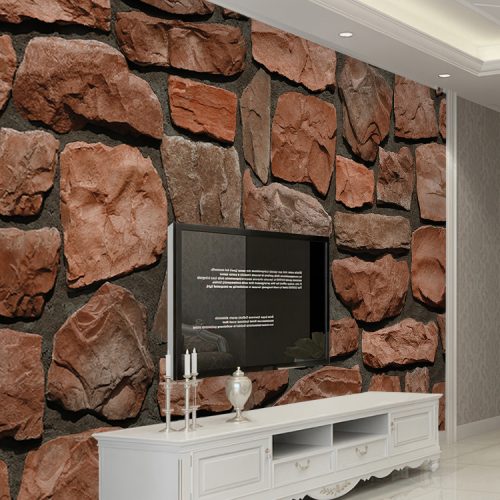 Kırmızı Doğal Taş Desenli Duvar Kağıdı | Rustik Dekorasyon