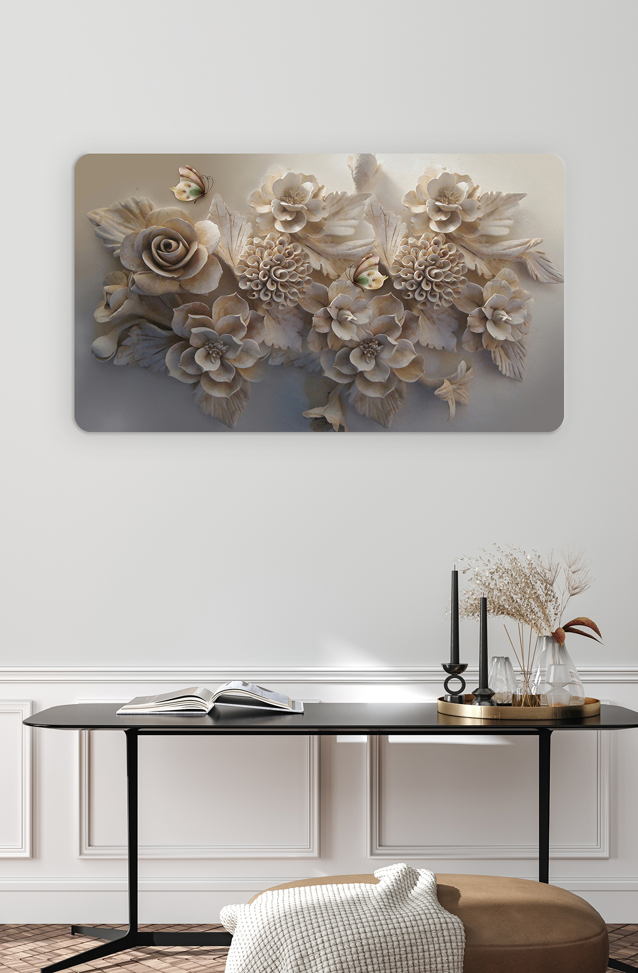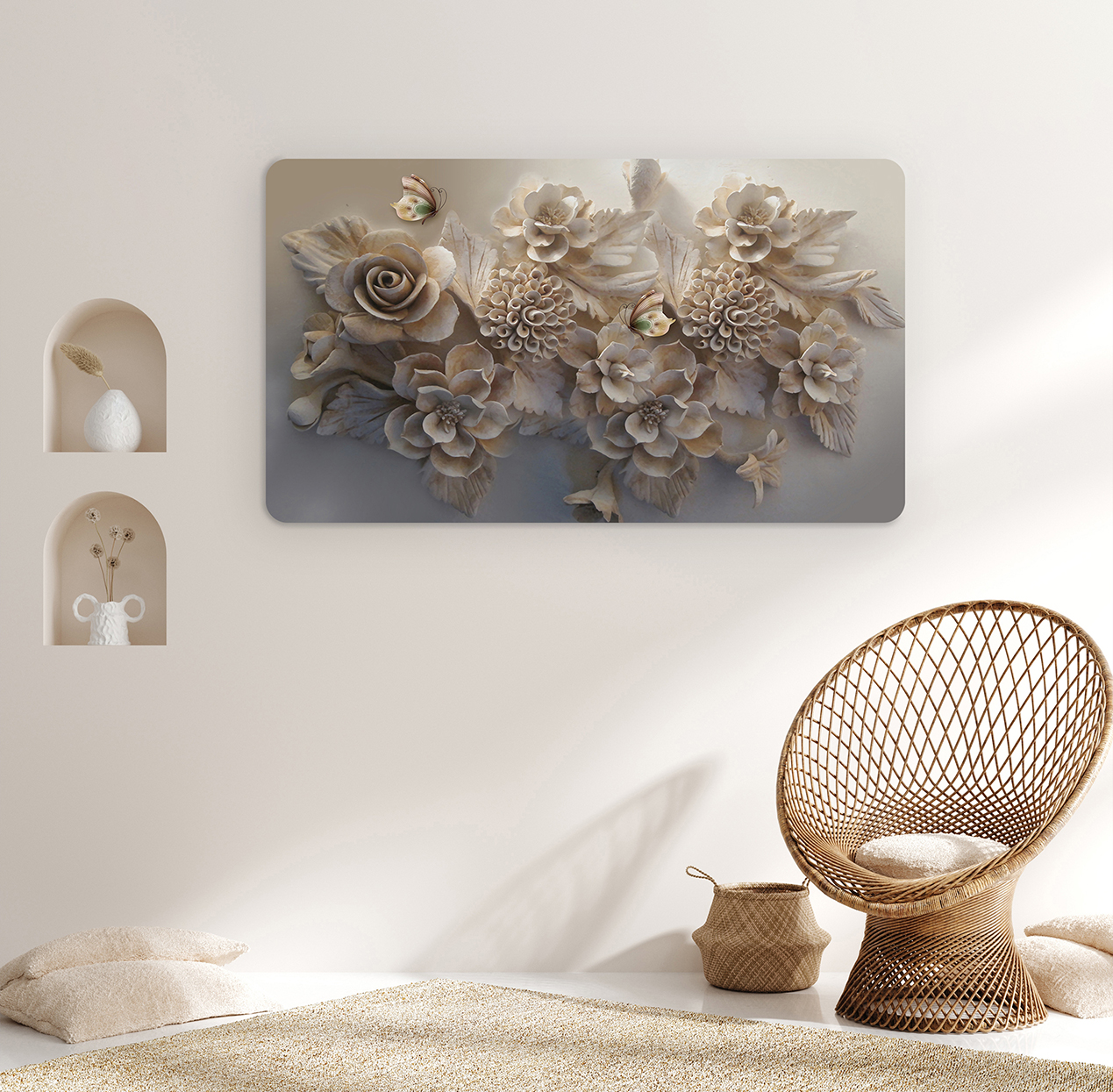3D Çiçek Desenli Duvar Dekoru – Zarif Tasarım 🎨🚂