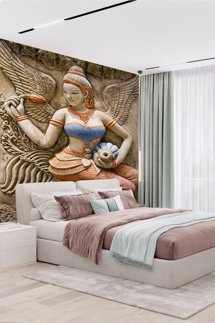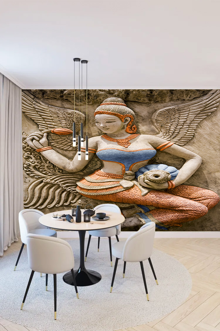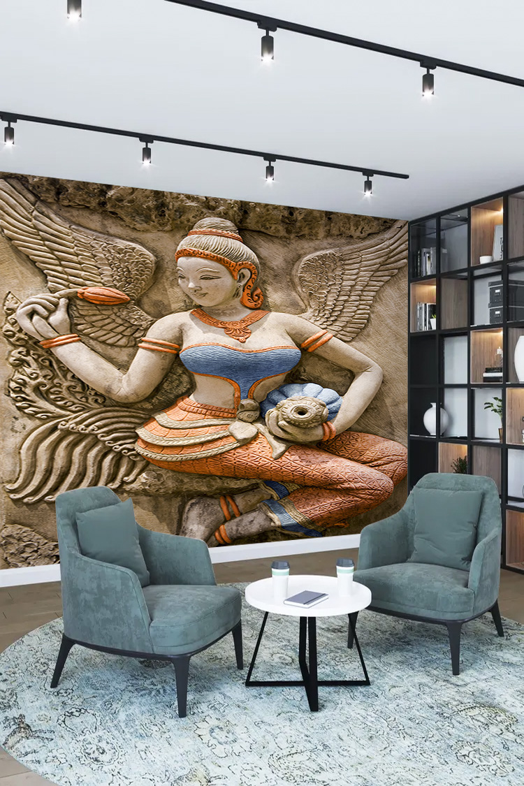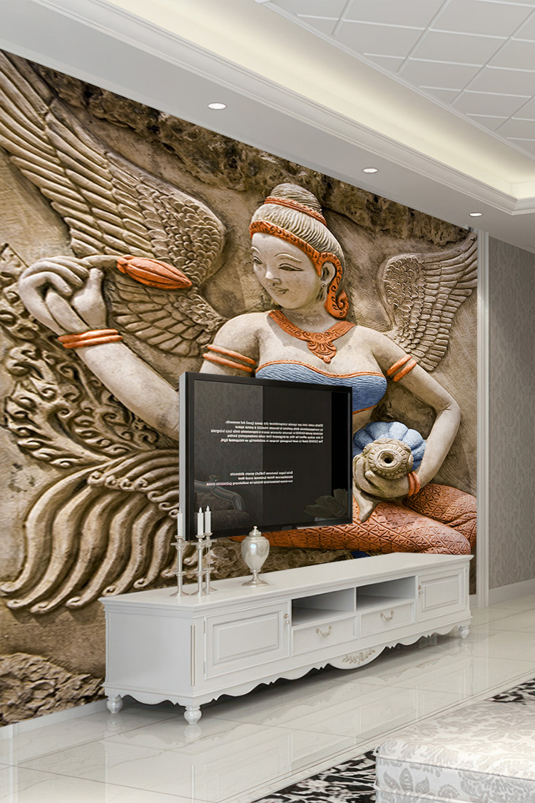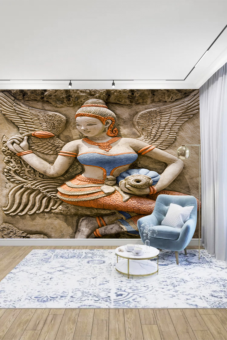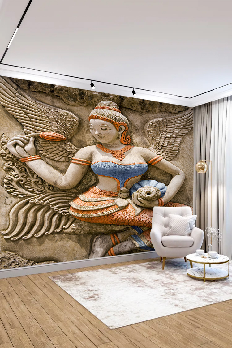 - 3D Kabartma Asya Sanatı Figürlü Duvar Kağıdı