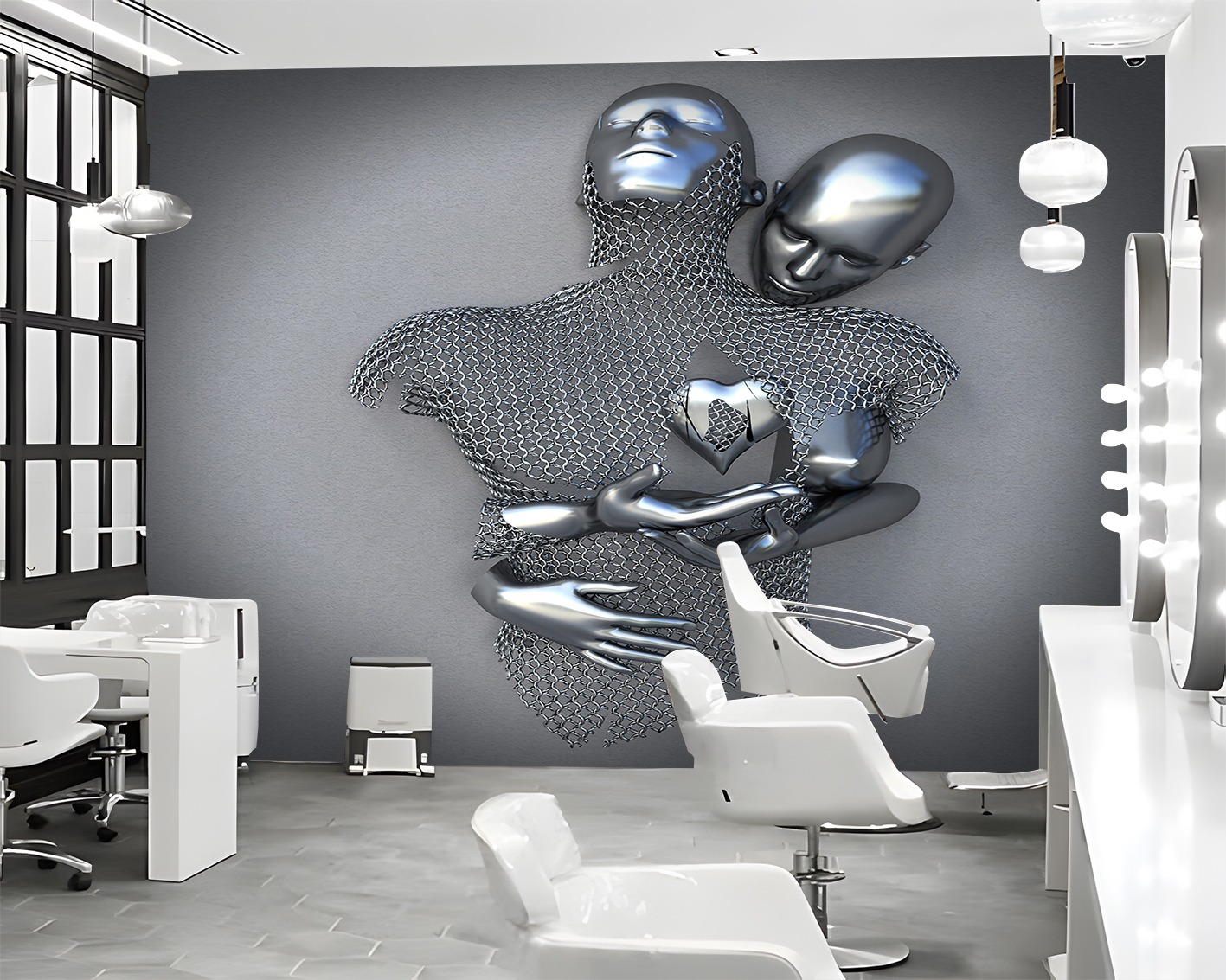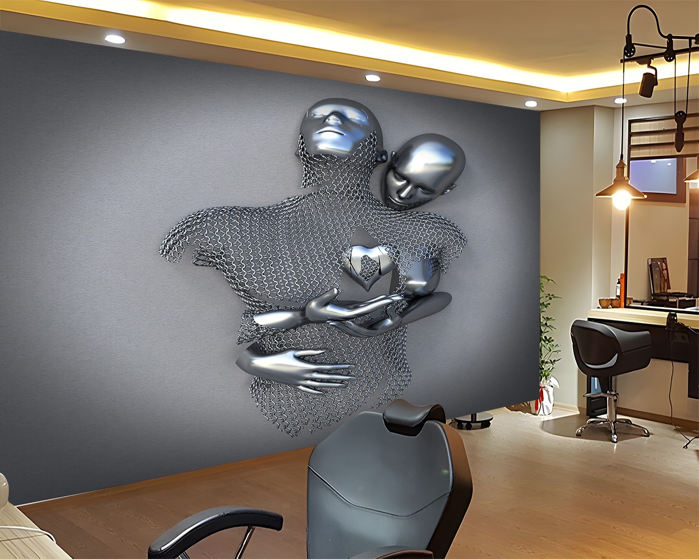 3D Zincir Detaylı Sevgili Heykeli Duvar Kağıdı