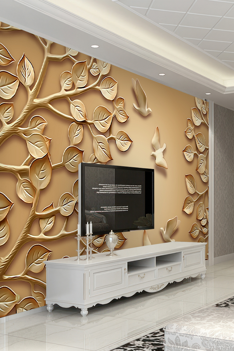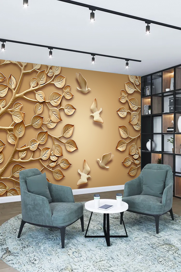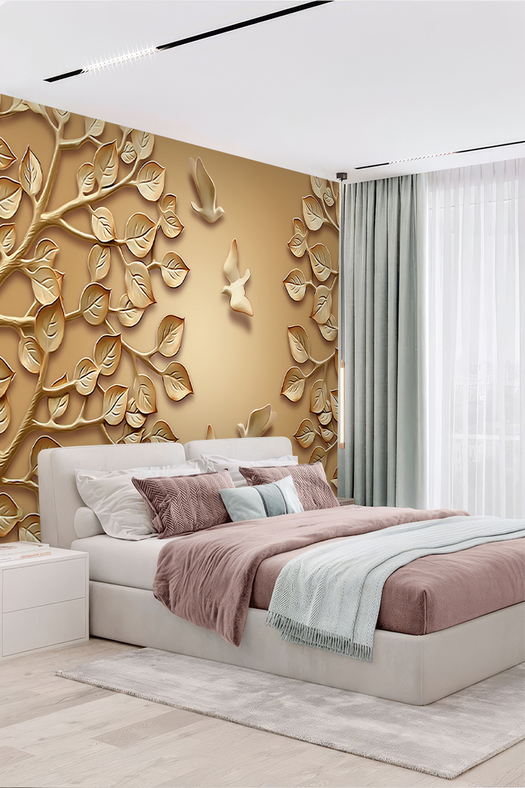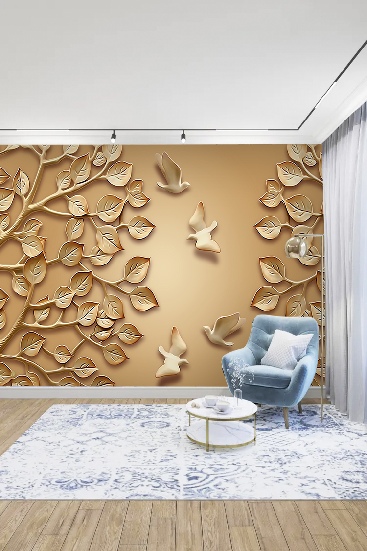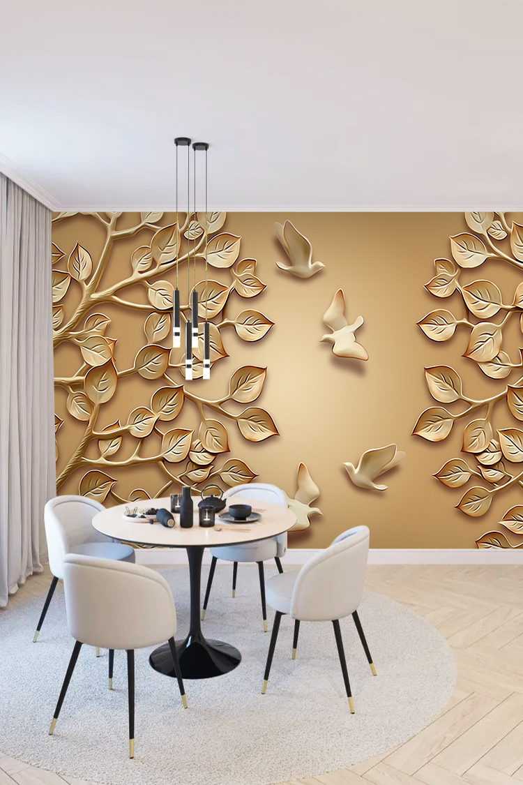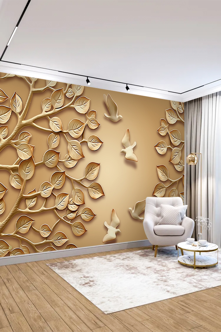 Ağaç Dalı ve Kuş 3D Duvar Kağıdı – Zarif ve Doğal Tasarım