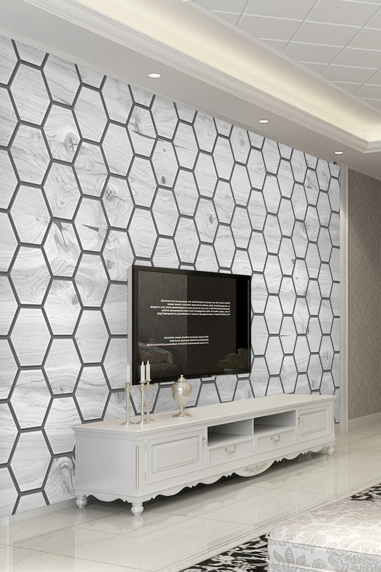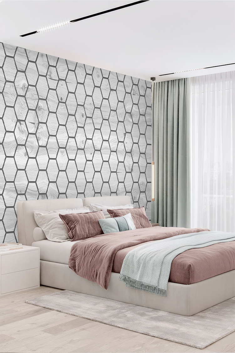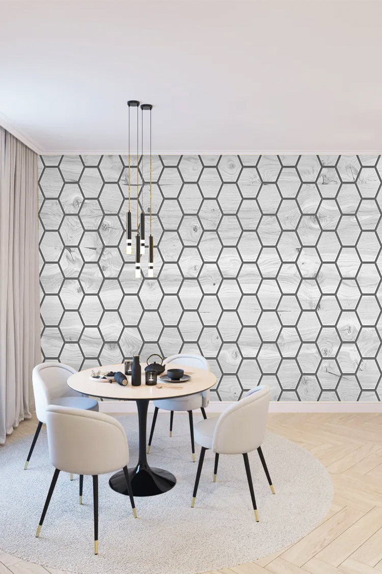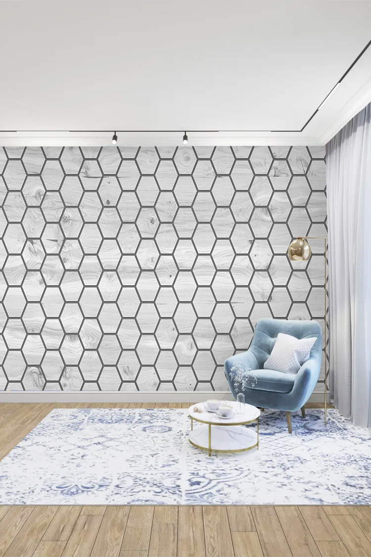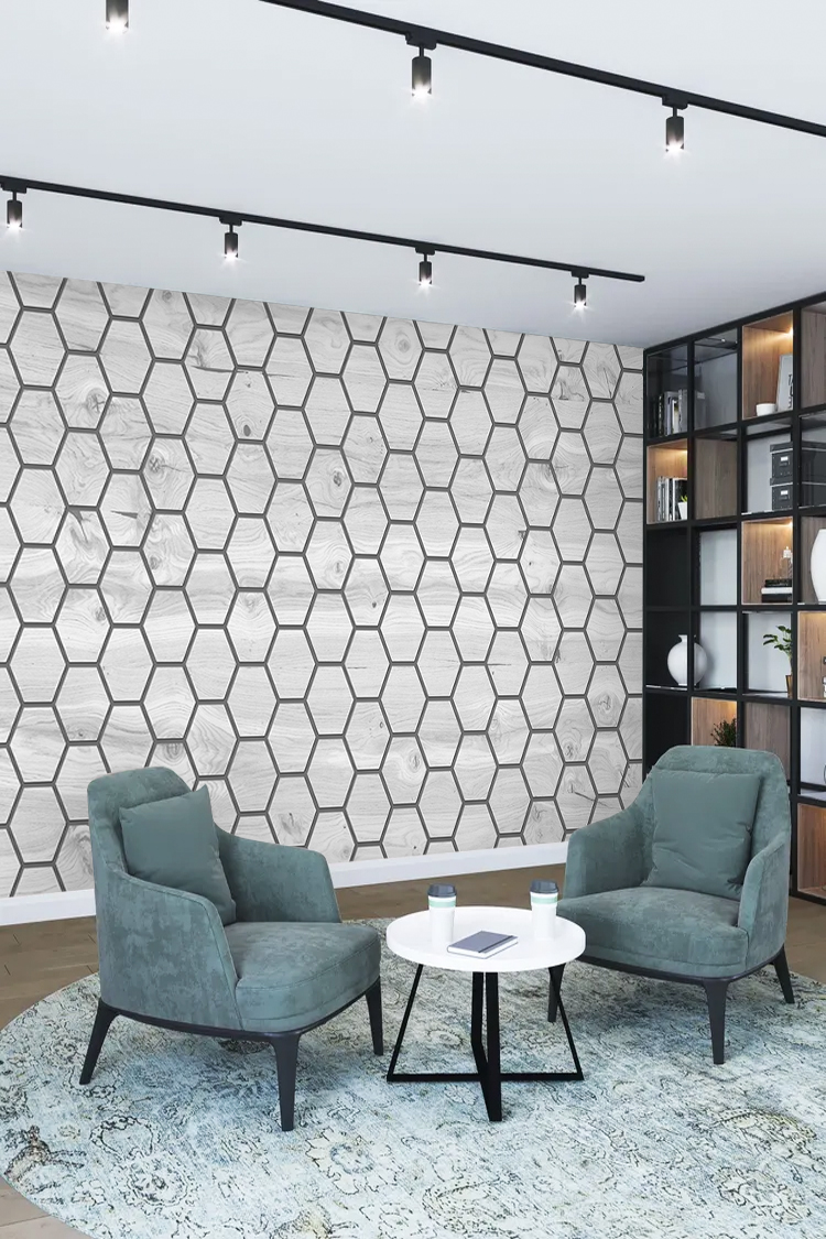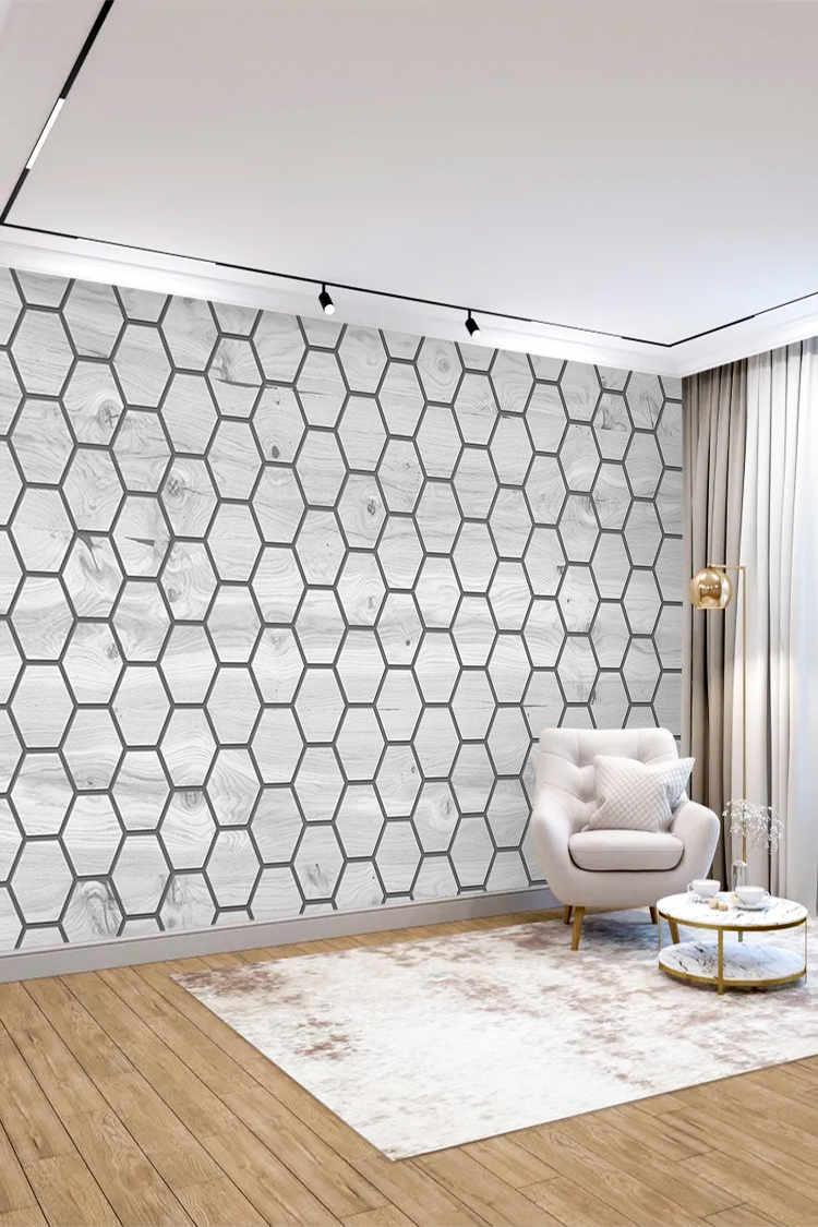 Altıgen Desenli 3D Duvar Kağıdı – Modern ve Minimalist Tasarım
