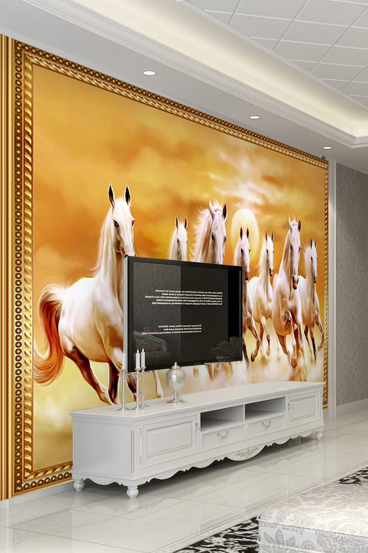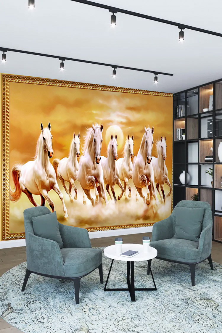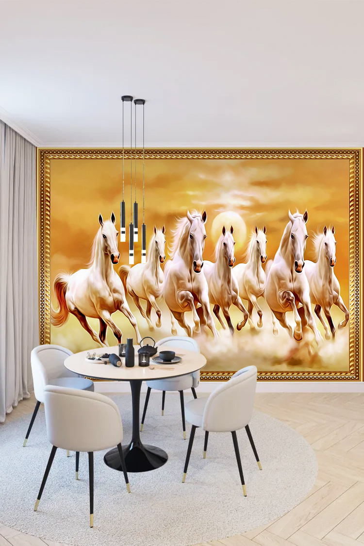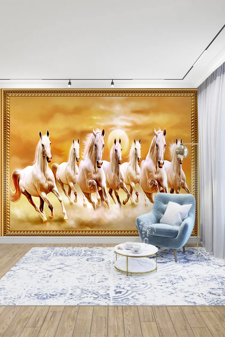 Altın Çerçeveli Yedi Beyaz At Duvar Kağıdı