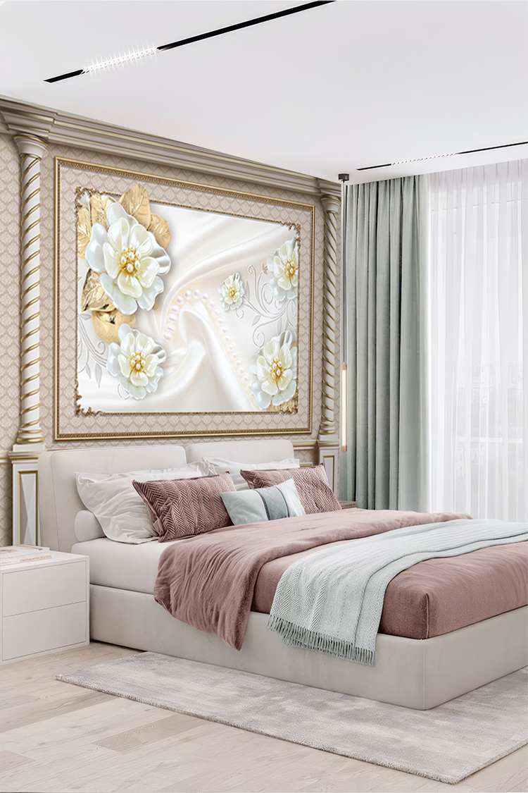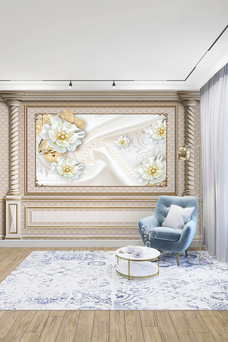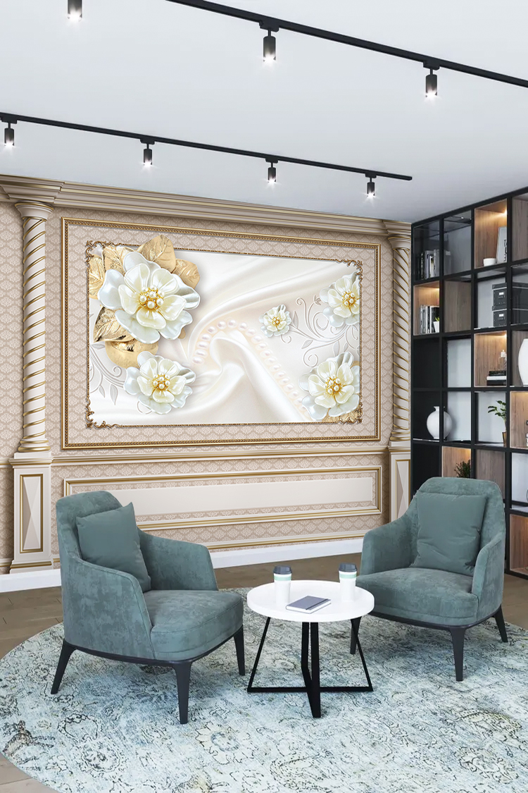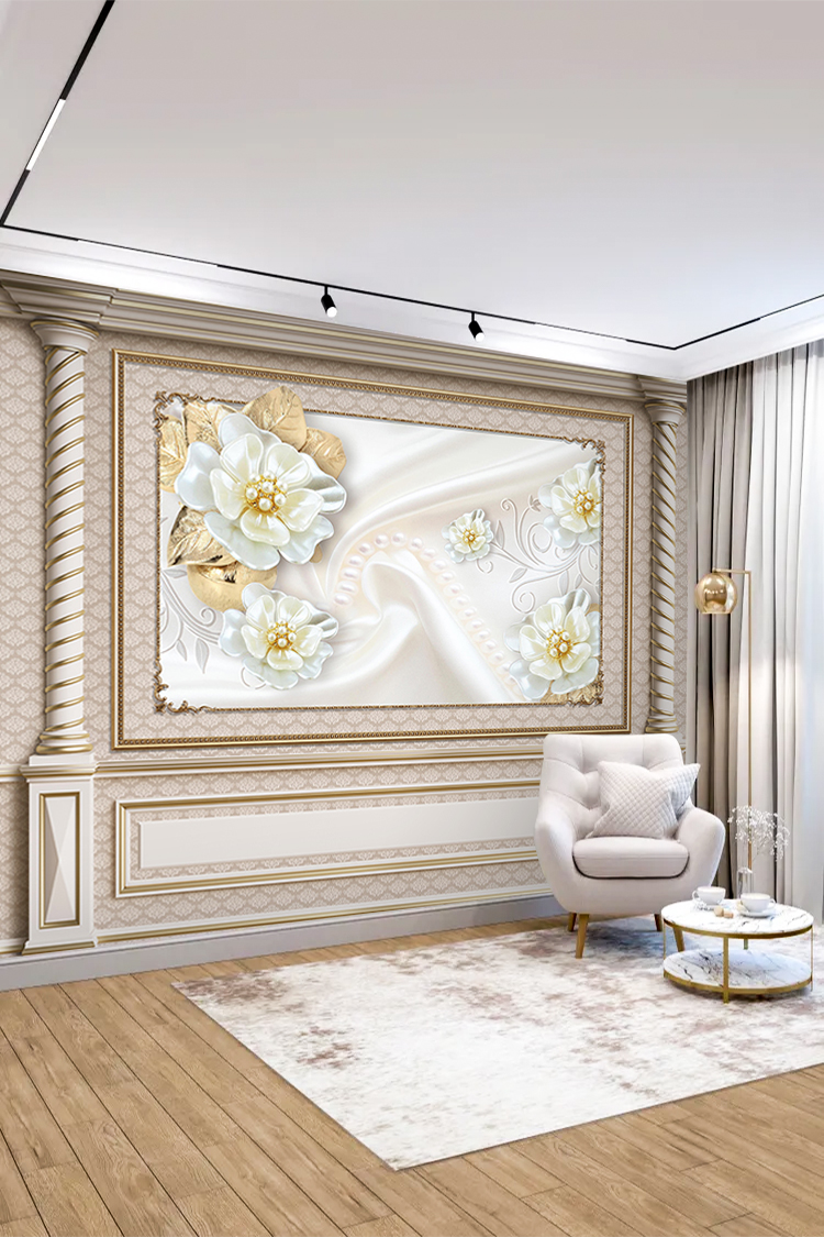 Altın Çiçekli Lüks Duvar Kağıdı