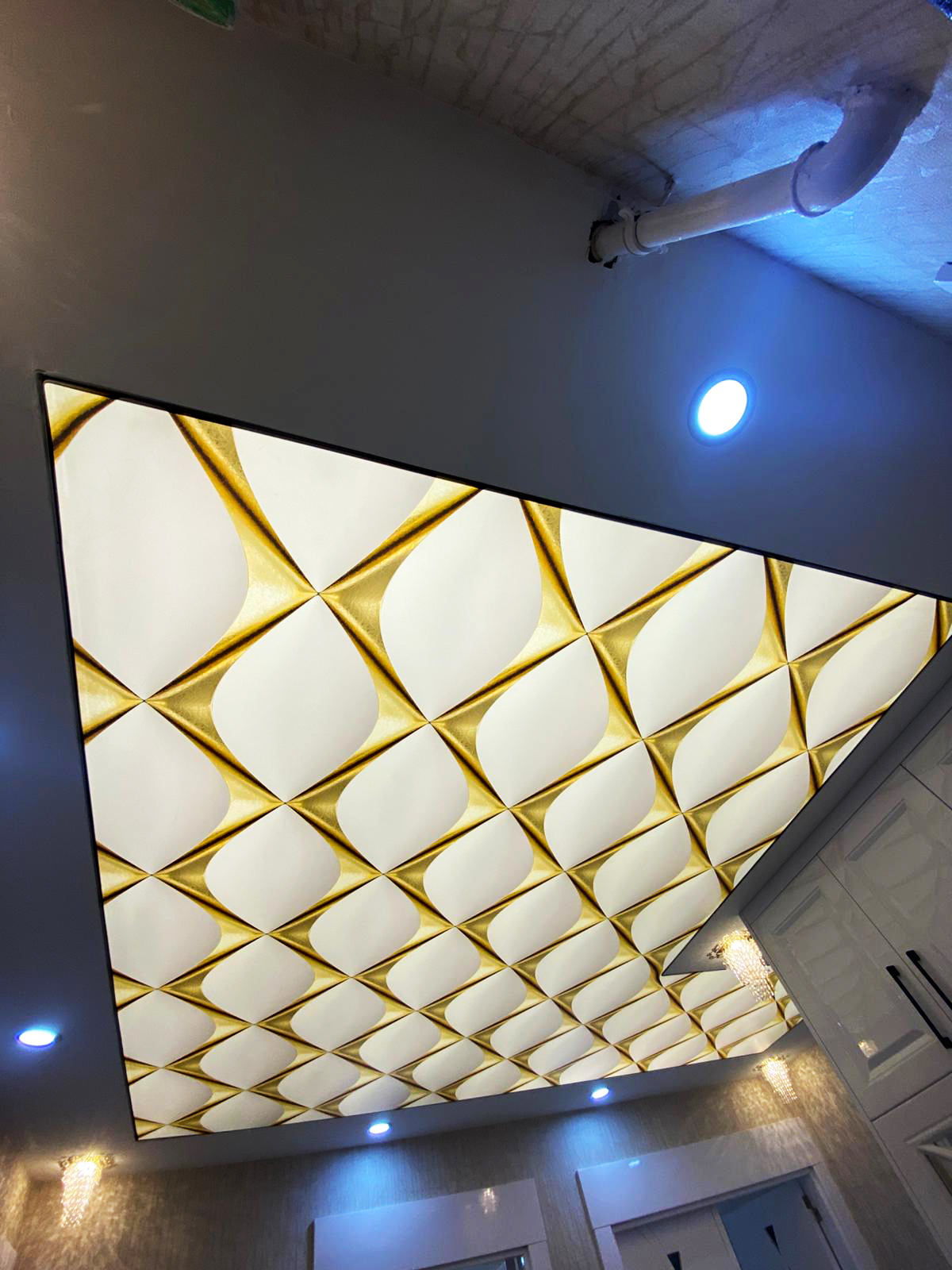 Altın Desenli Gergi Tavan | Lüks ve Göz Alıcı Dekor