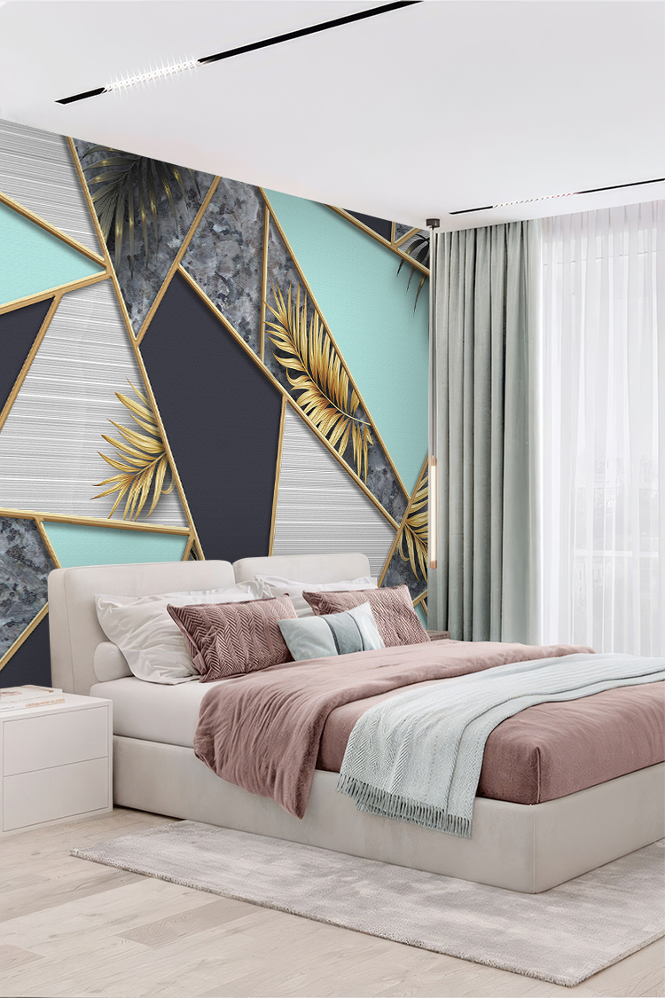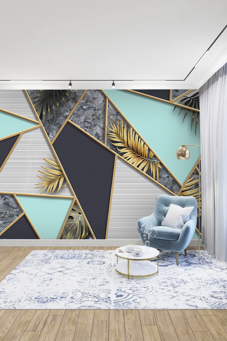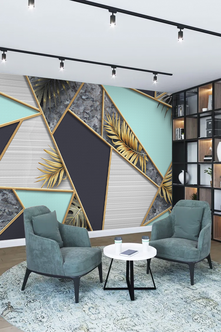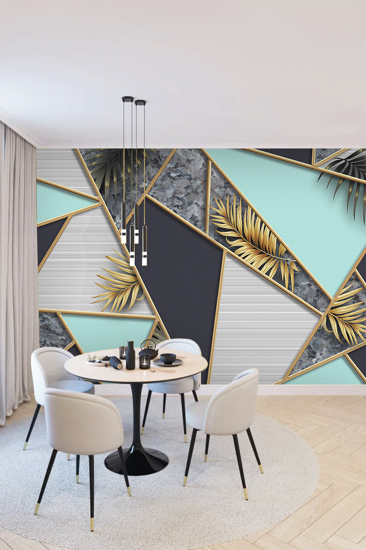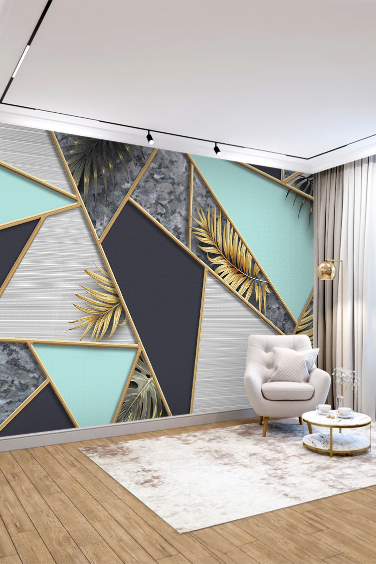 Altın Detaylı Geometrik Desenli Duvar Kağıdı – Modern ve Şık Tasarım