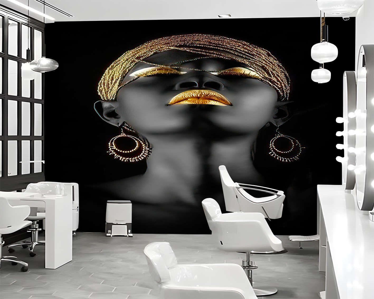 Altın Detaylı Siyah Kadın Figürlü Duvar Kağıdı