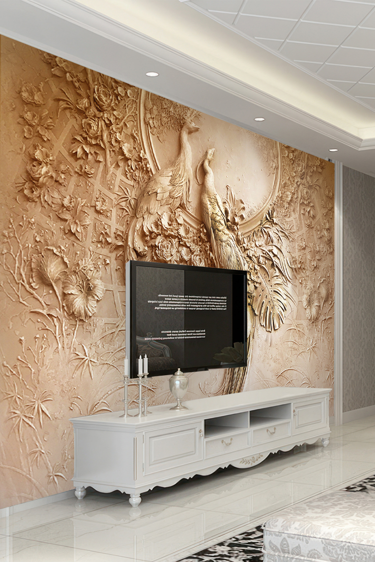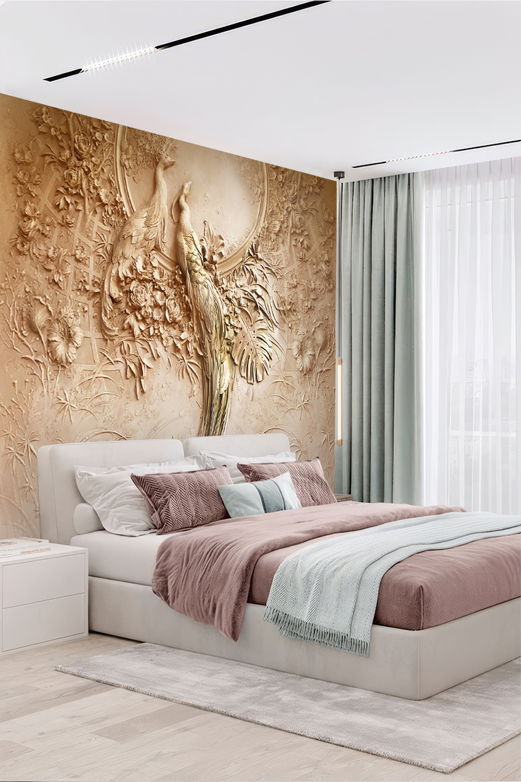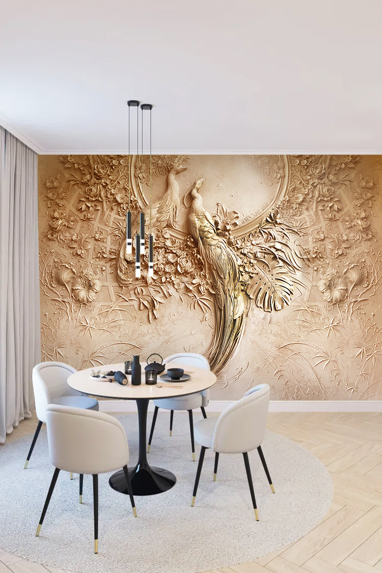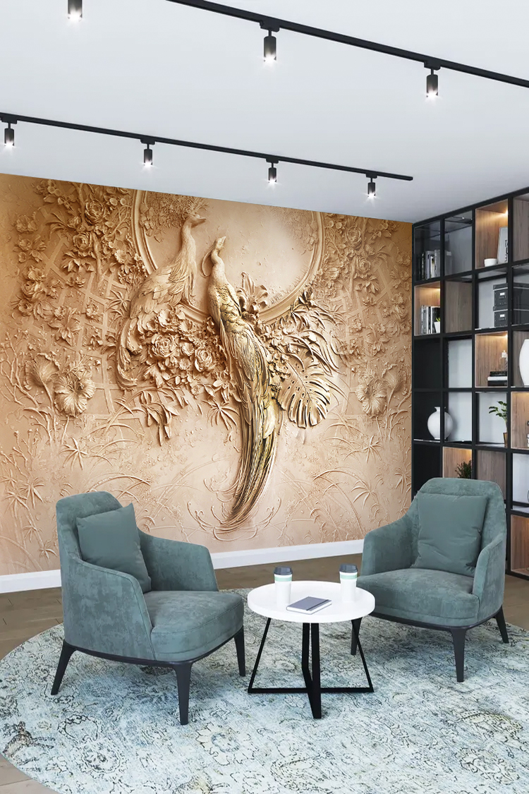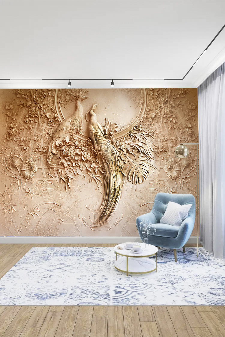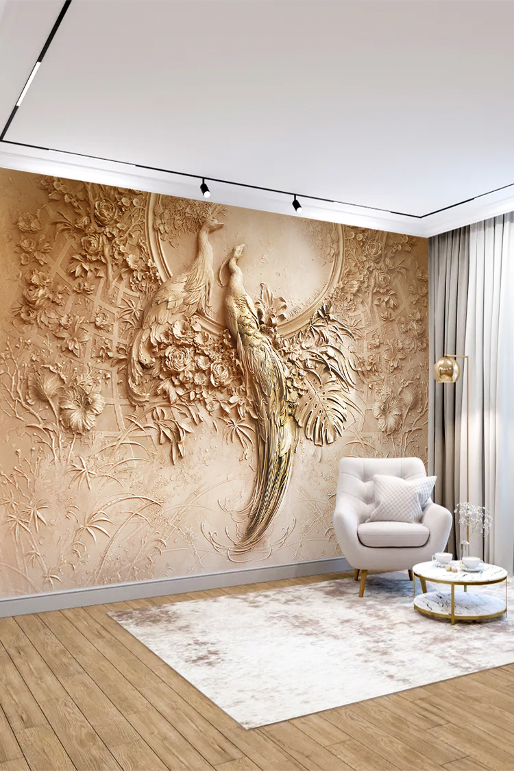 Altın Rengi Kuş 3D Duvar Kağıdı – Lüks ve Zarif Tasarım