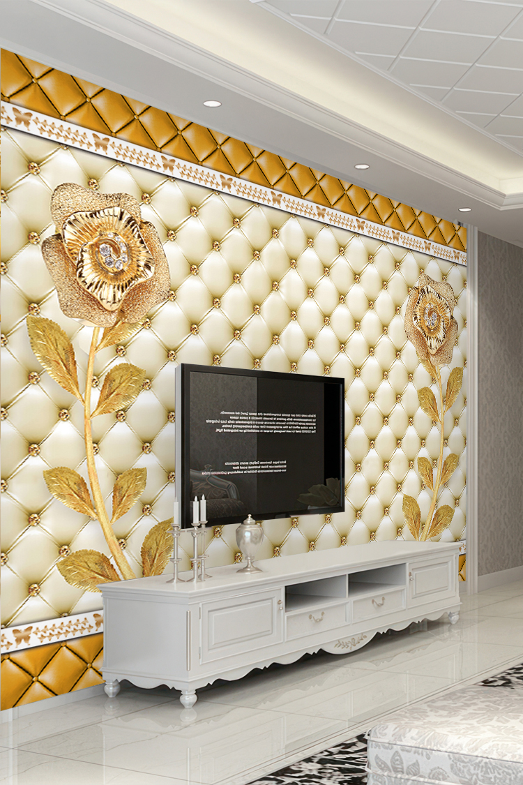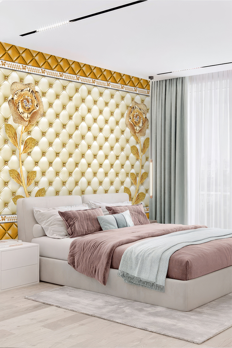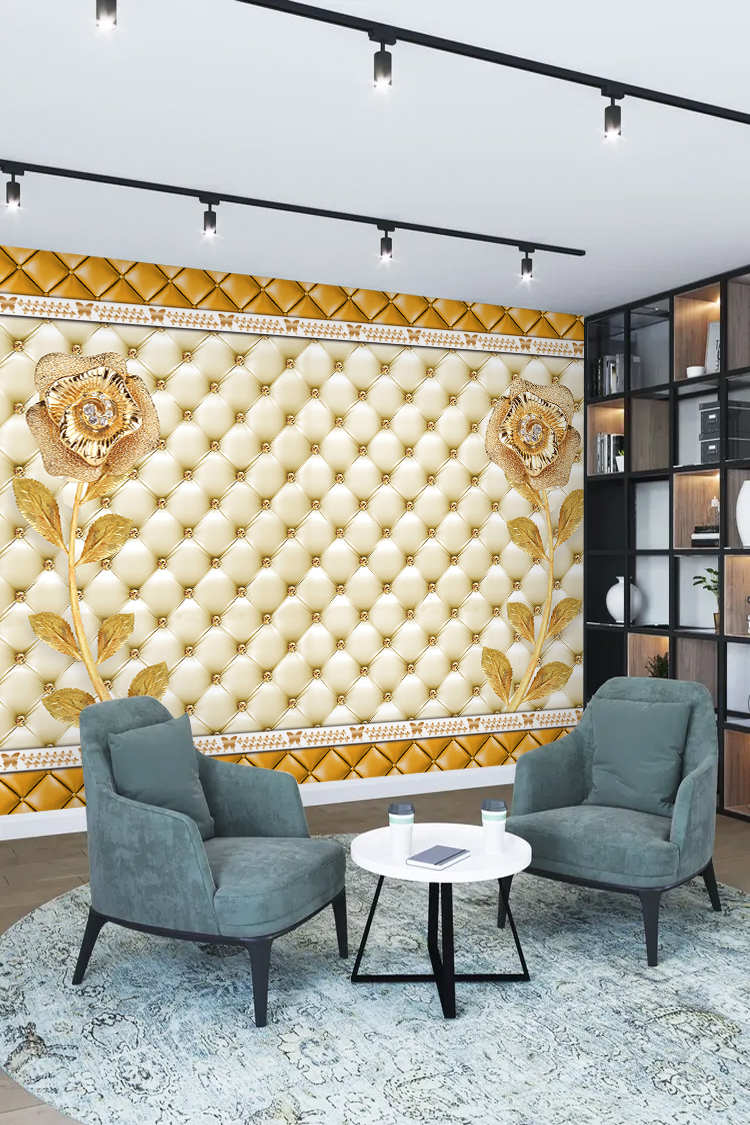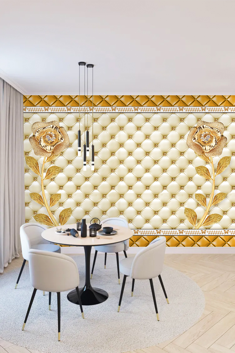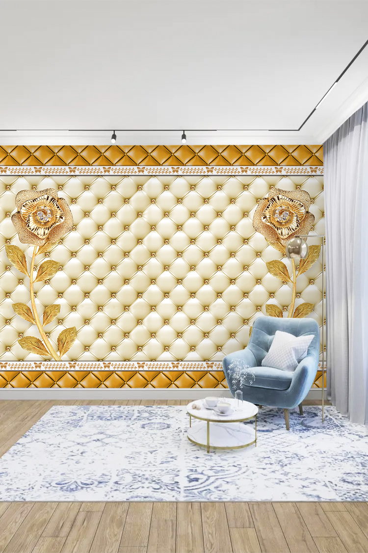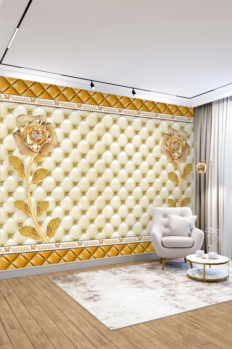 Altın Renkli Gül Desenli Duvar Kağıdı