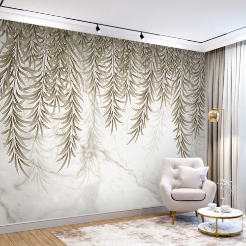 Altın Yapraklı Mermer Desenli Duvar Kağıdı