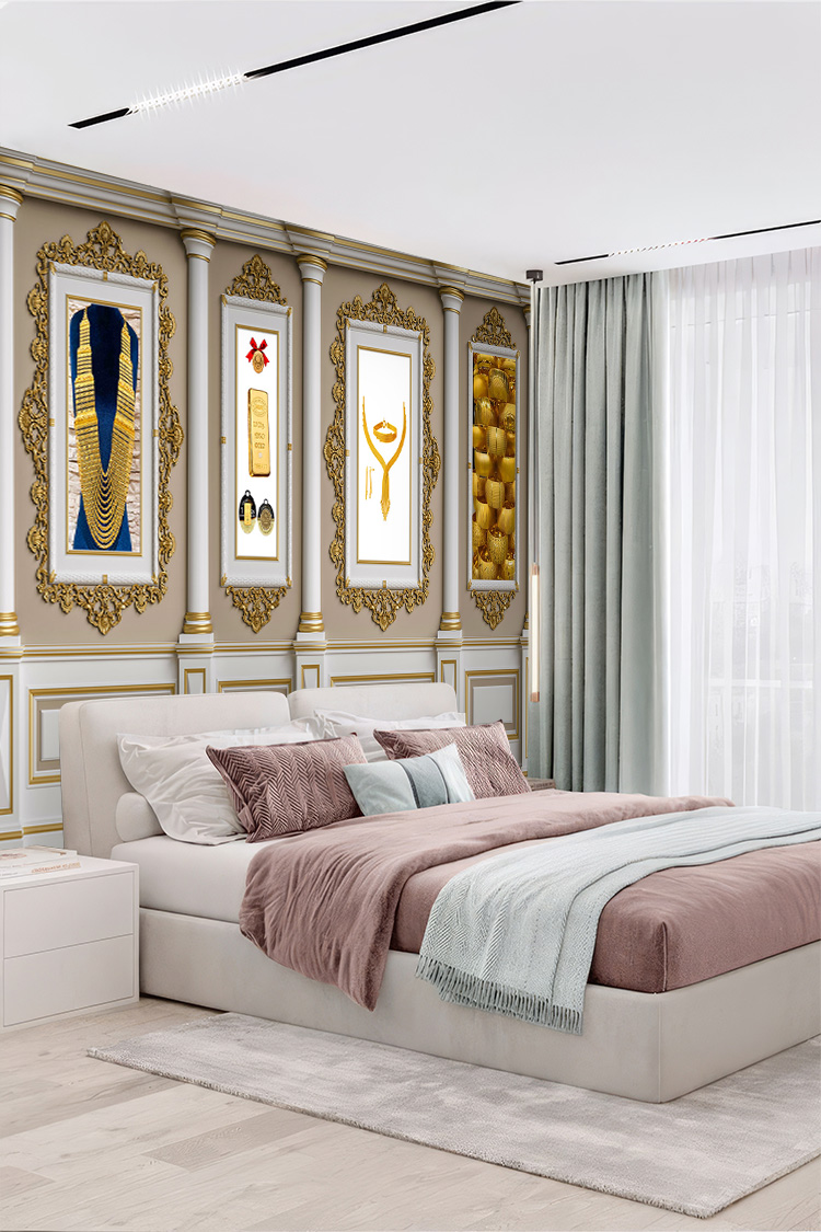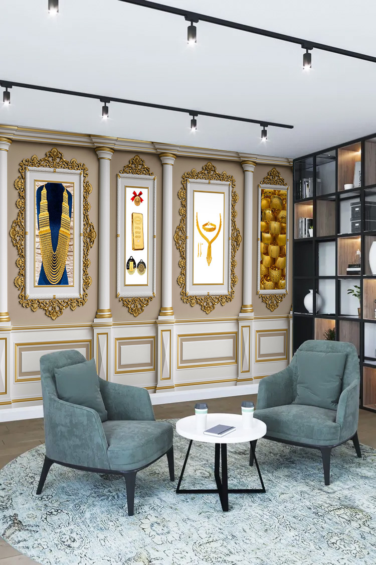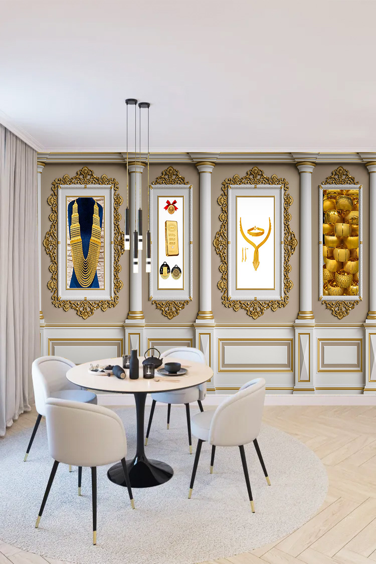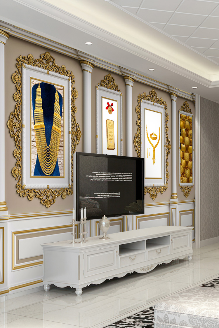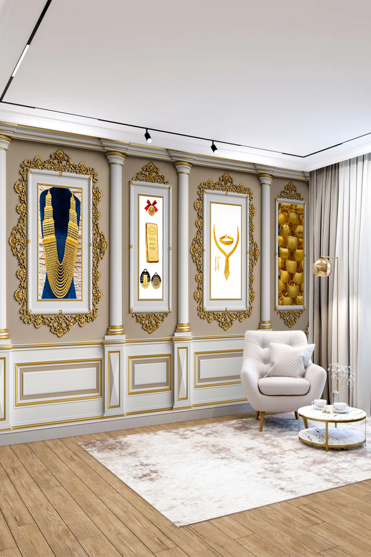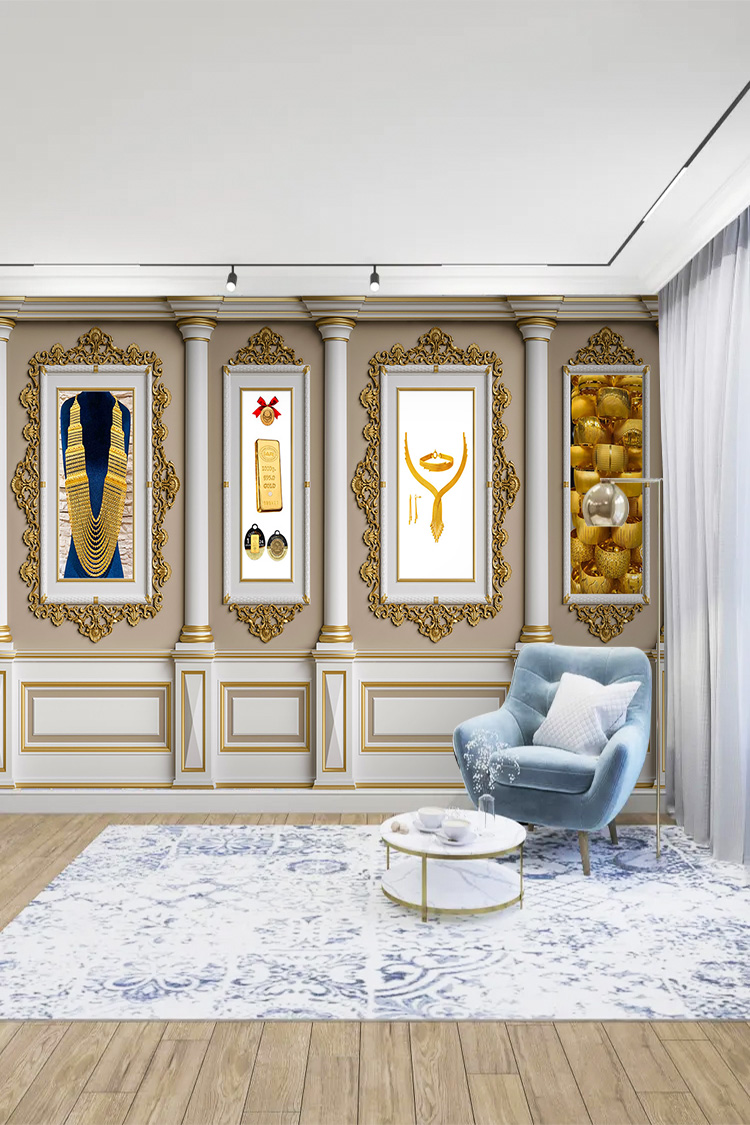 Altın Varaklı Klasik Sütun Panel Desenli Lüks Duvar Kağıdı – Salon Otel