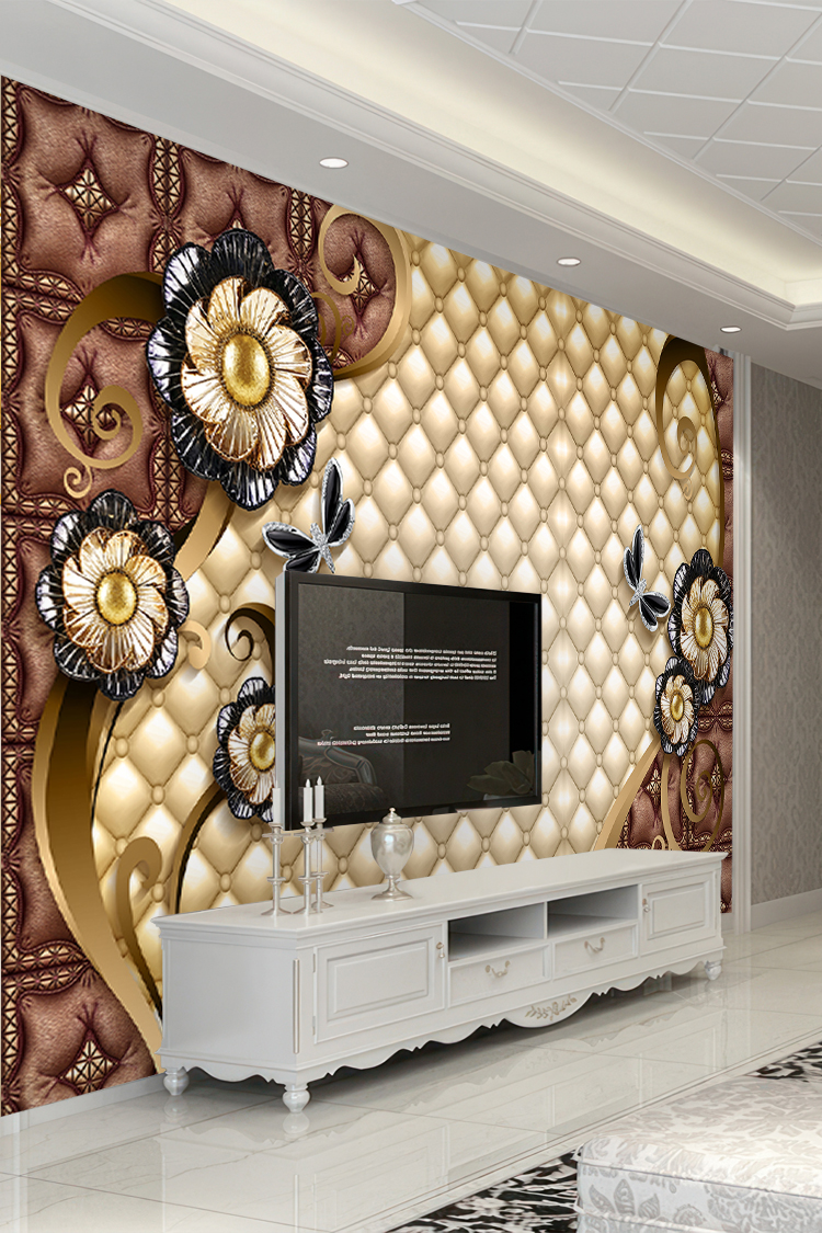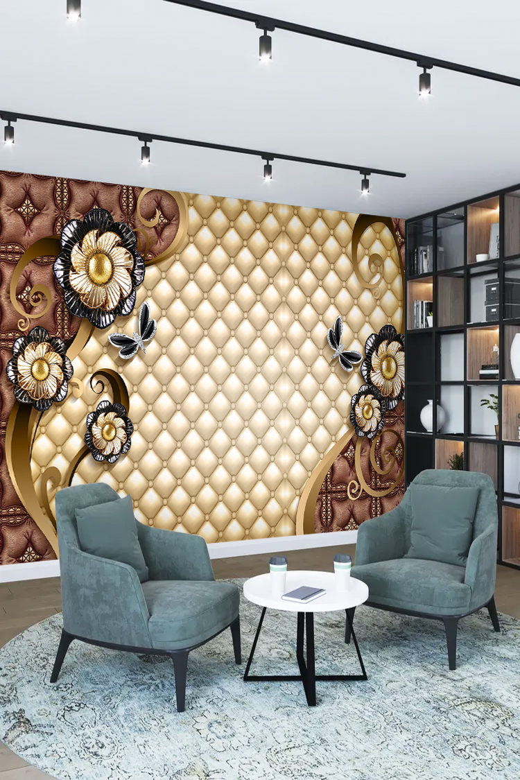 Altın Yaldızlı Çiçek Desenli Duvar Kağıdı