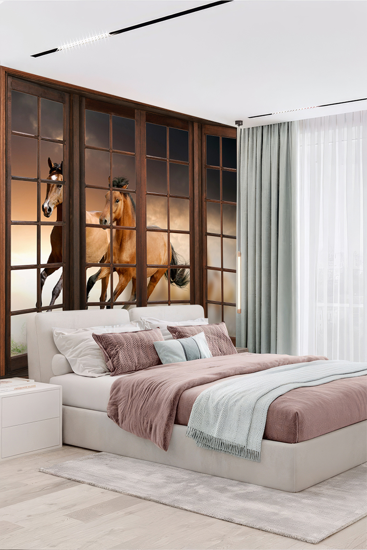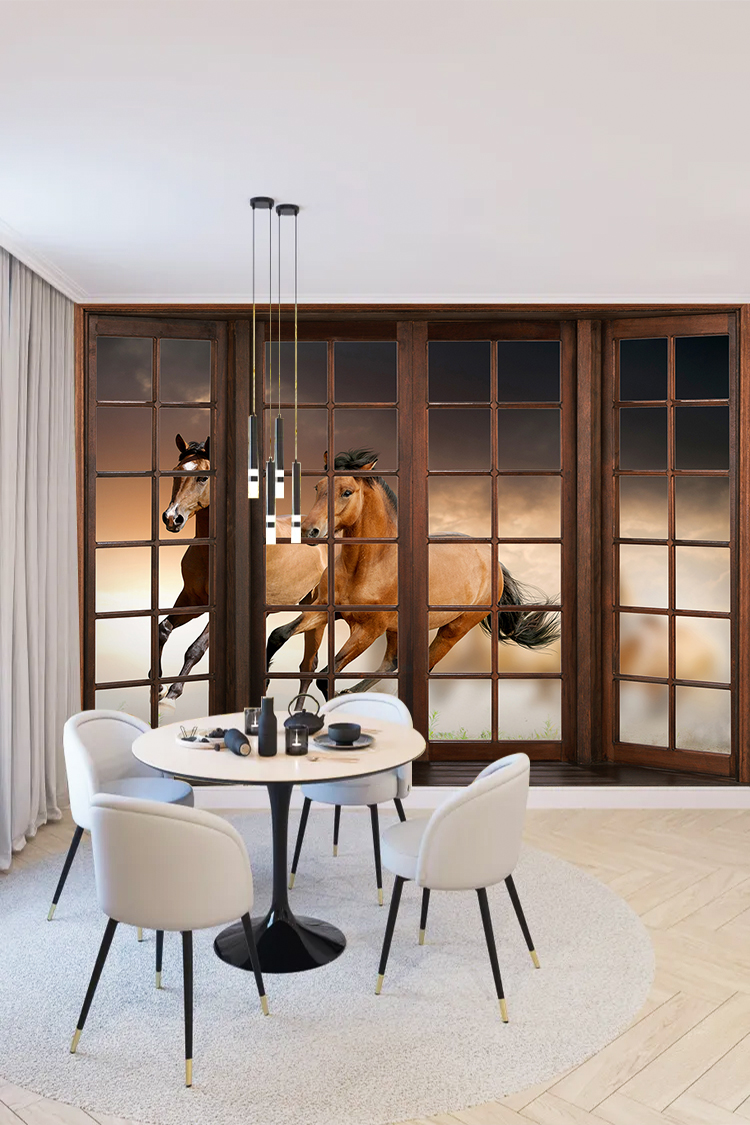 At ve Doğa Manzaralı Lüks Duvar Kağıdı