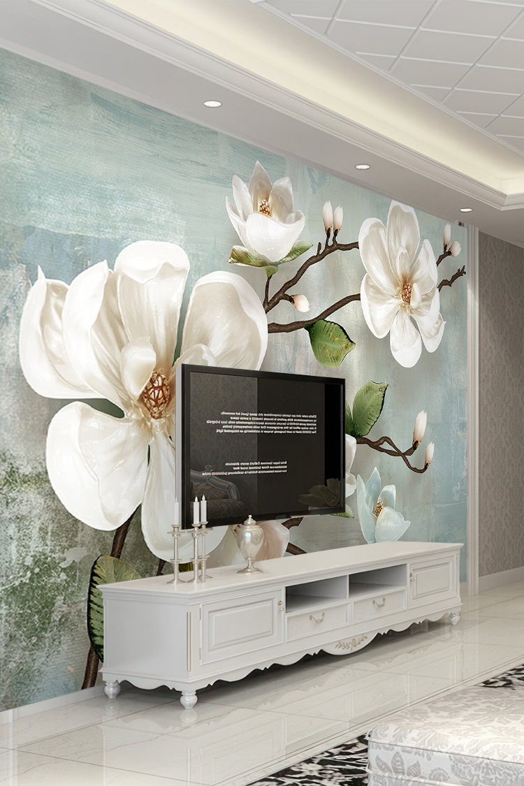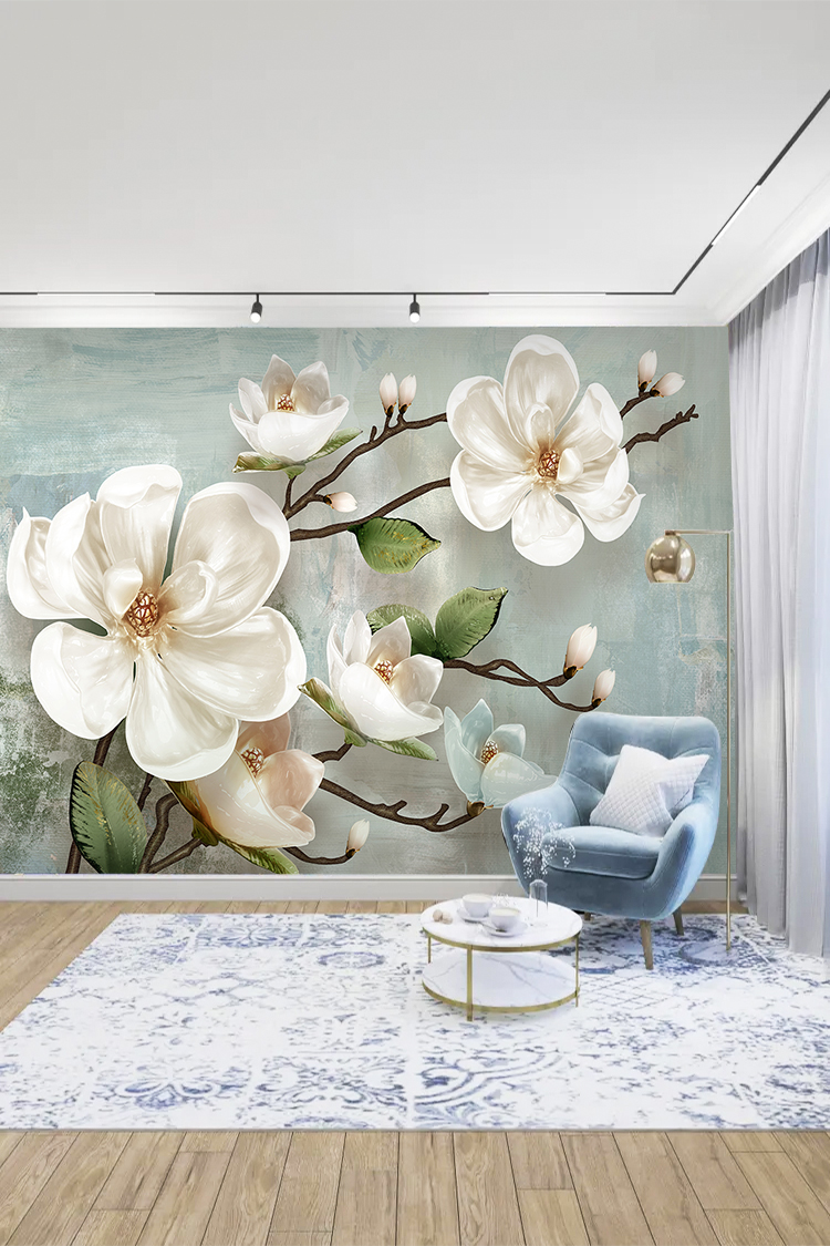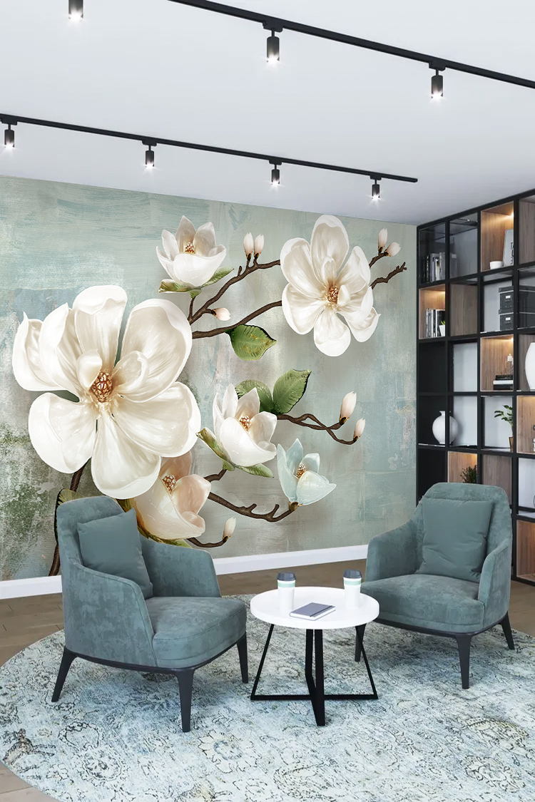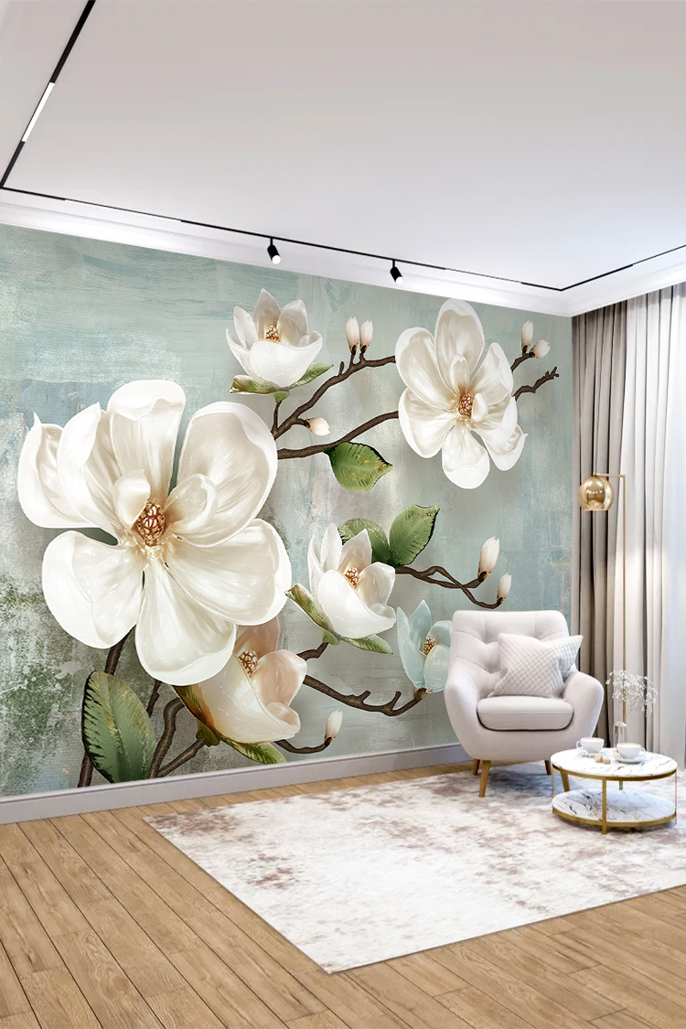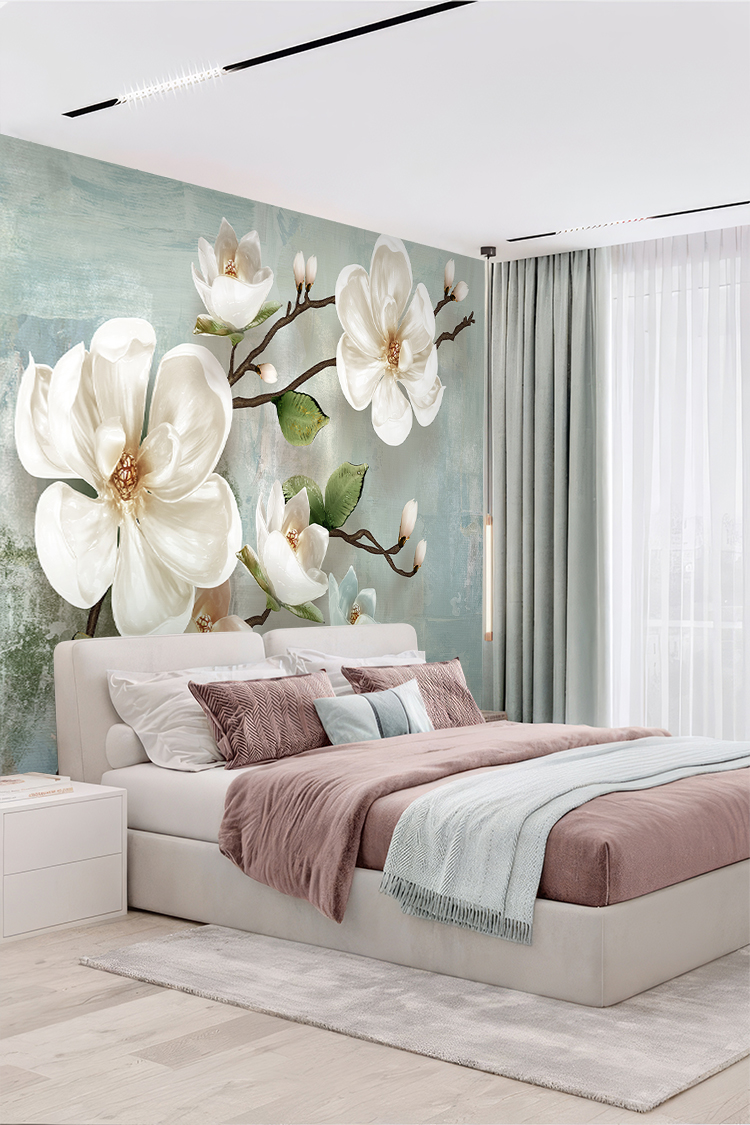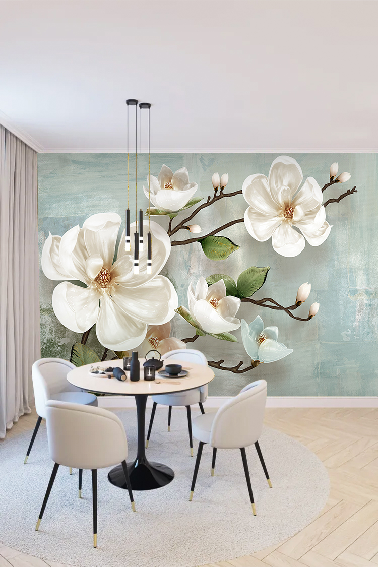 Beyaz Çiçek Deseni Duvar Kağıdı