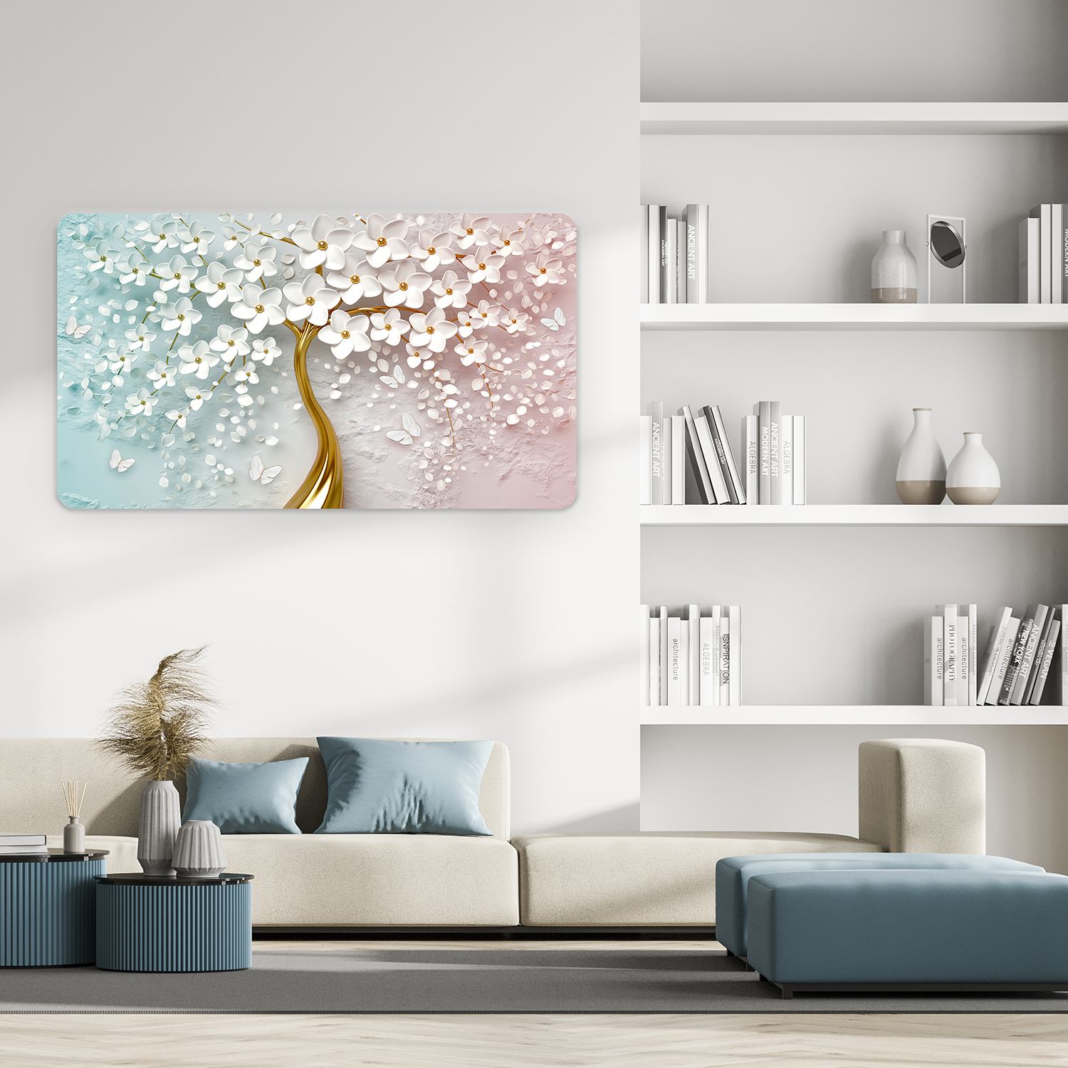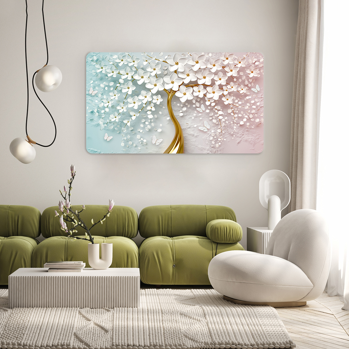 Beyaz Çiçekli Ağaç Duvar Kağıdı – Modern ve Şık Tasarım 🎨🚂