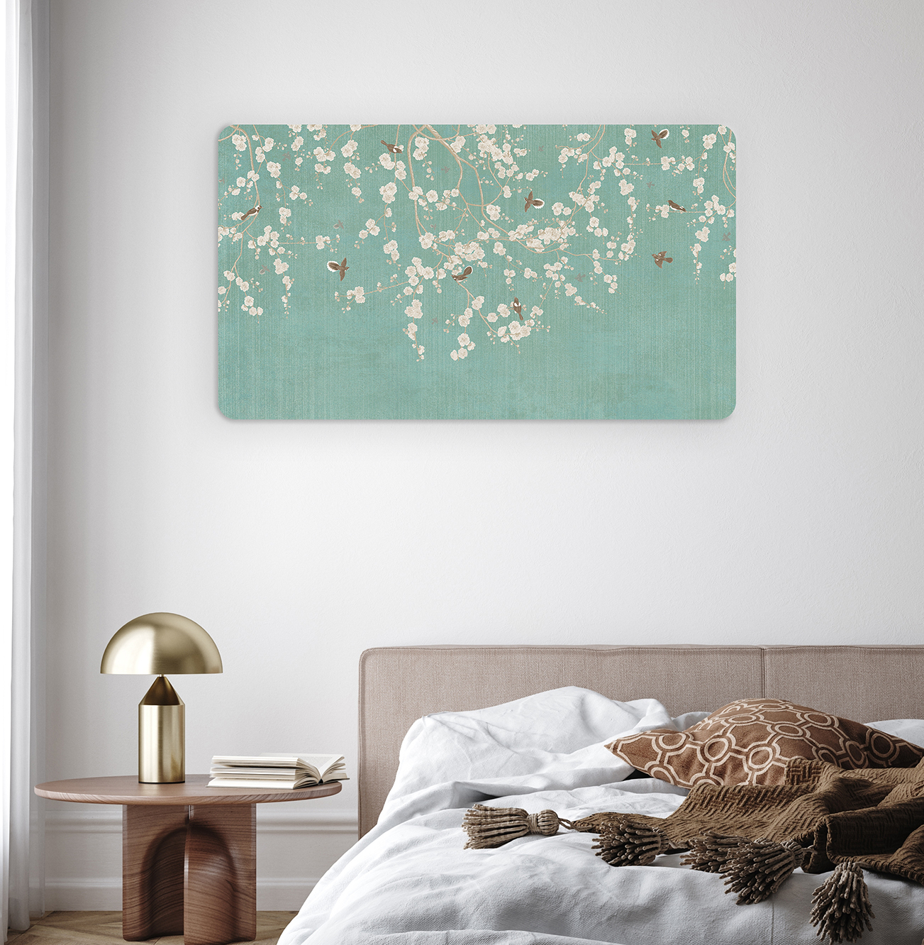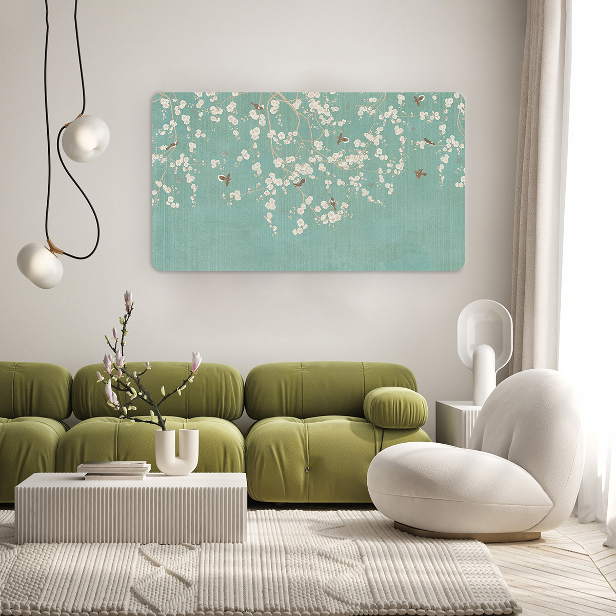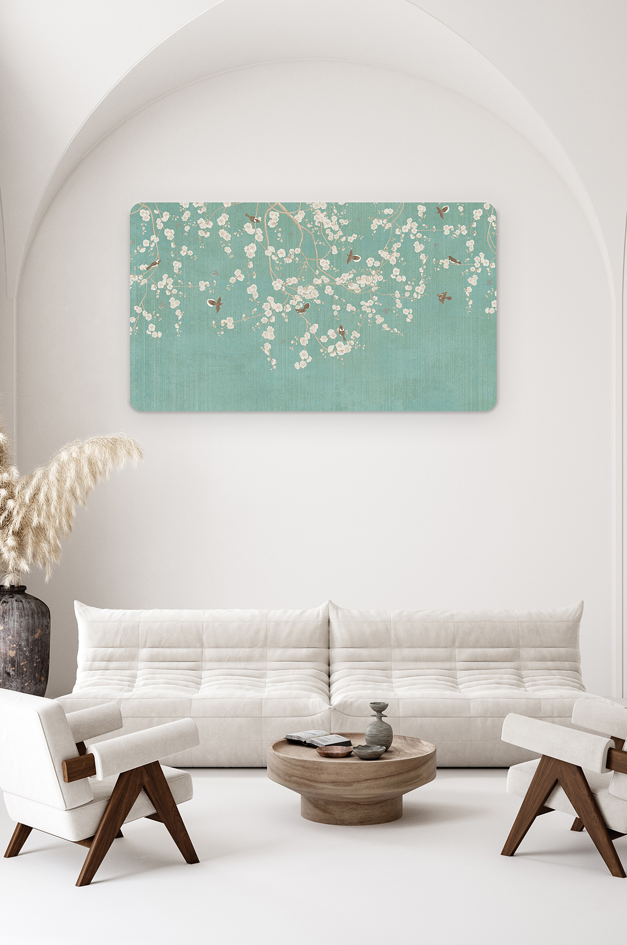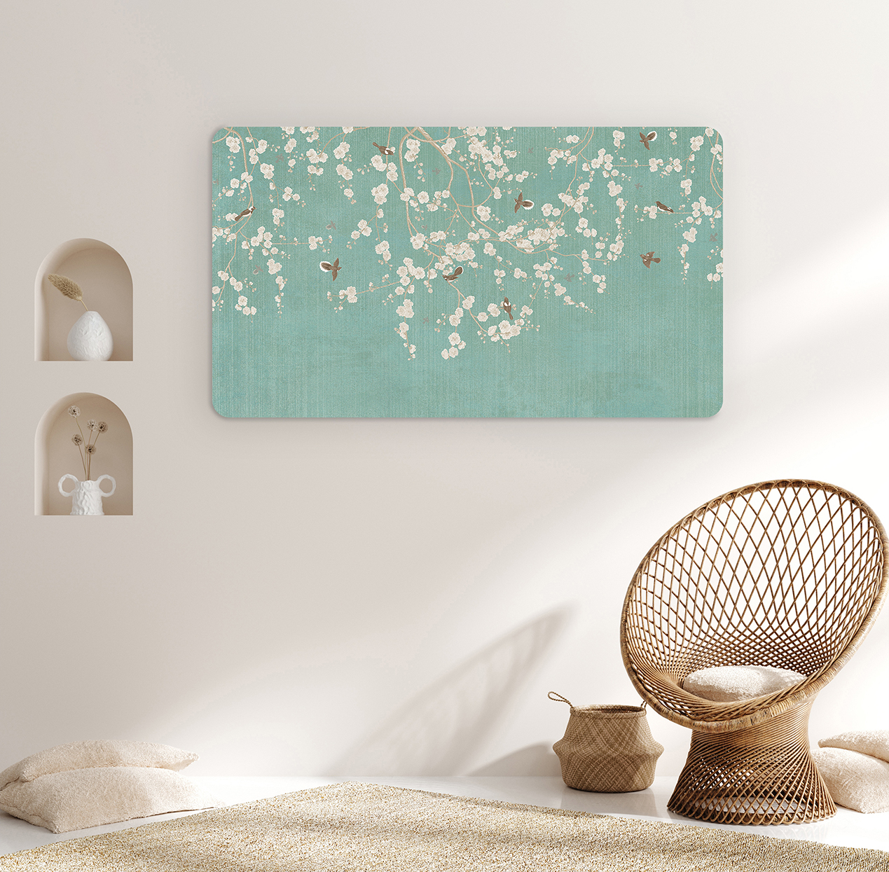 Beyaz Çiçekli Duvar Kağıdı – Mavi Arka Planlı Zarif Tasarım 🎨🚂