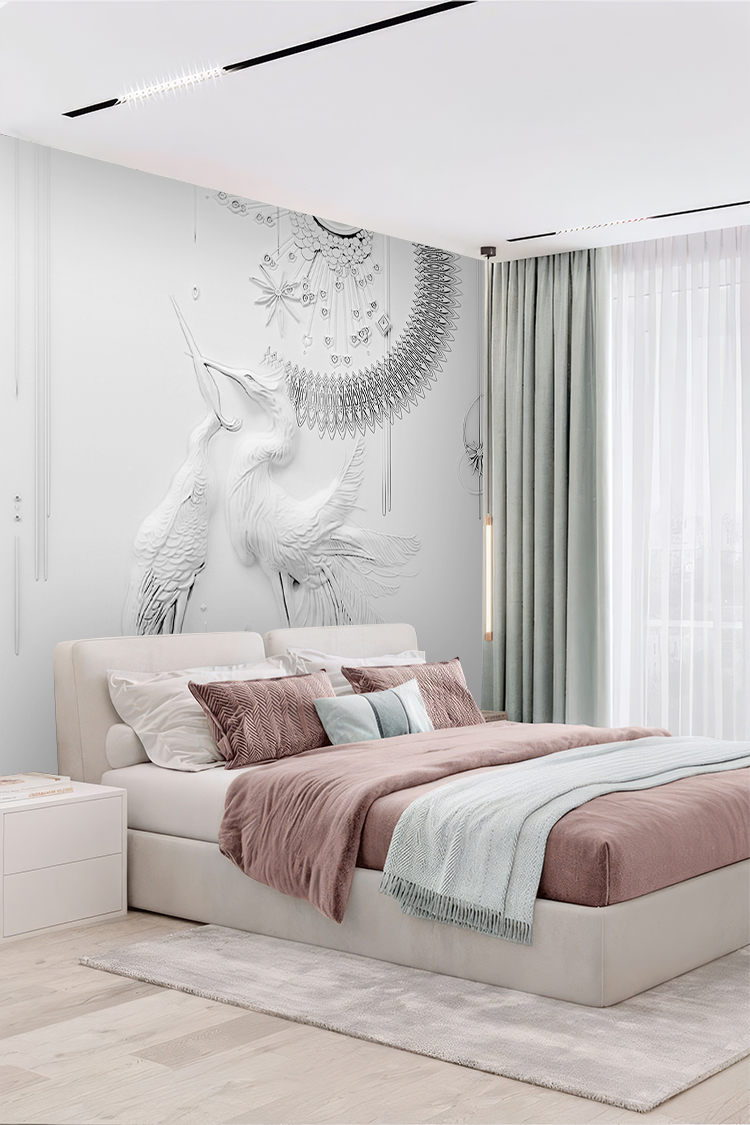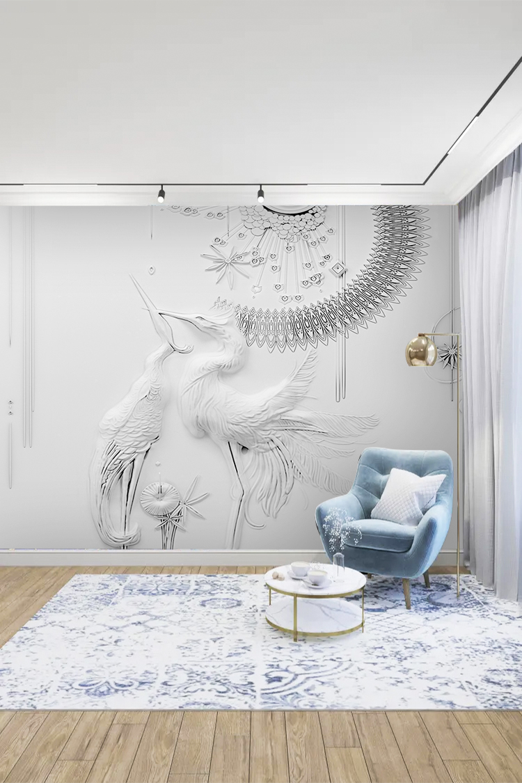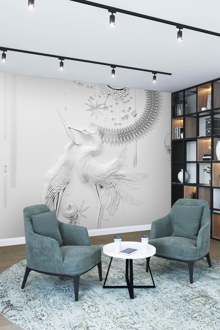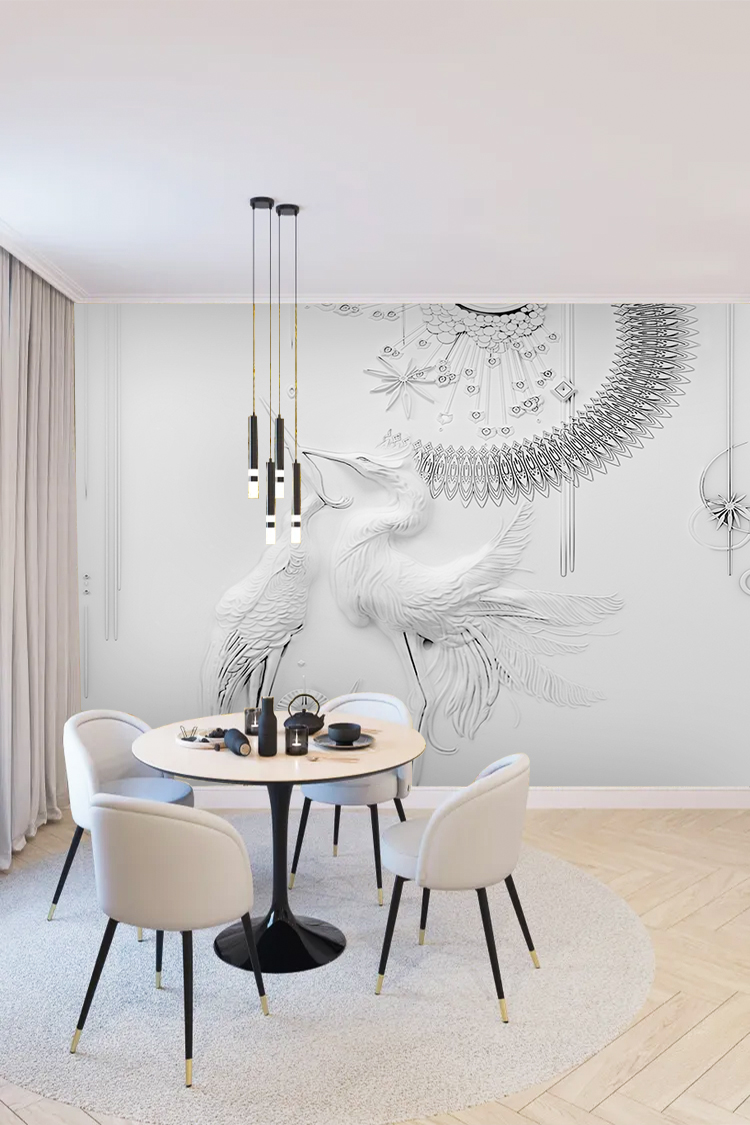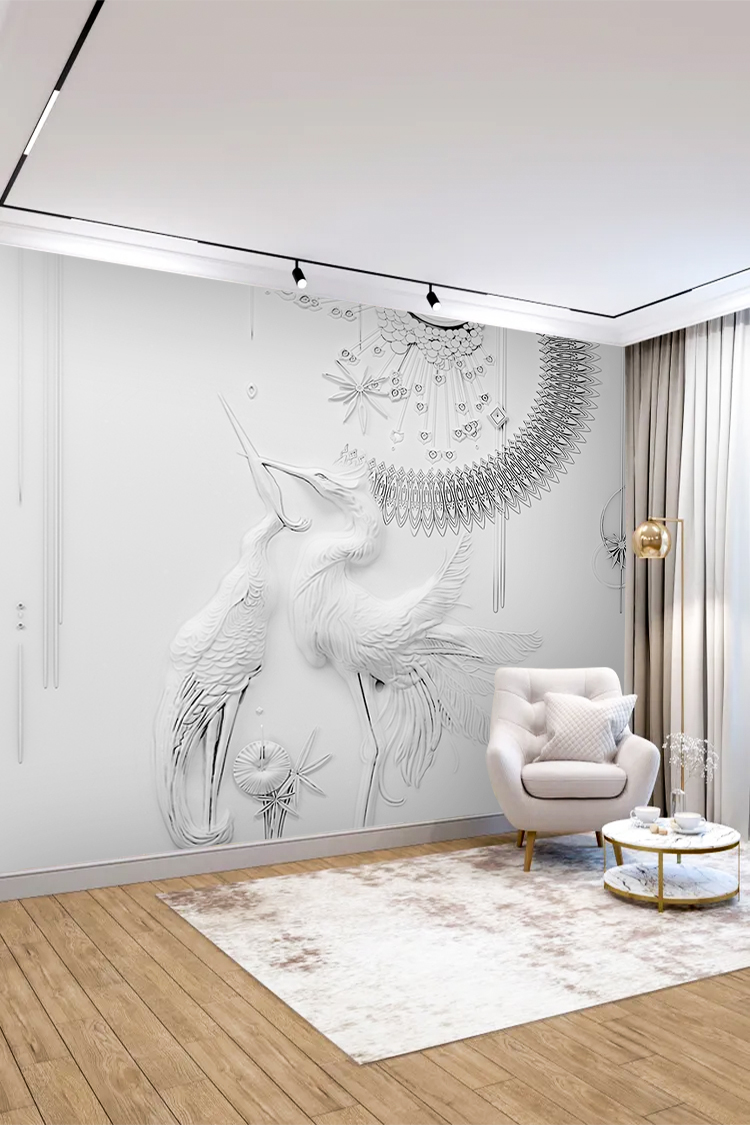 Beyaz Kuş 3D Duvar Kağıdı – Modern ve Zarif Tasarım