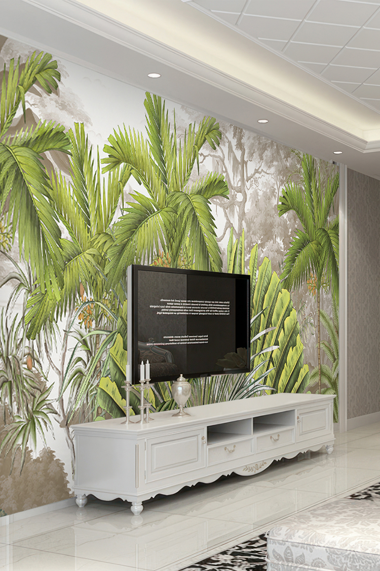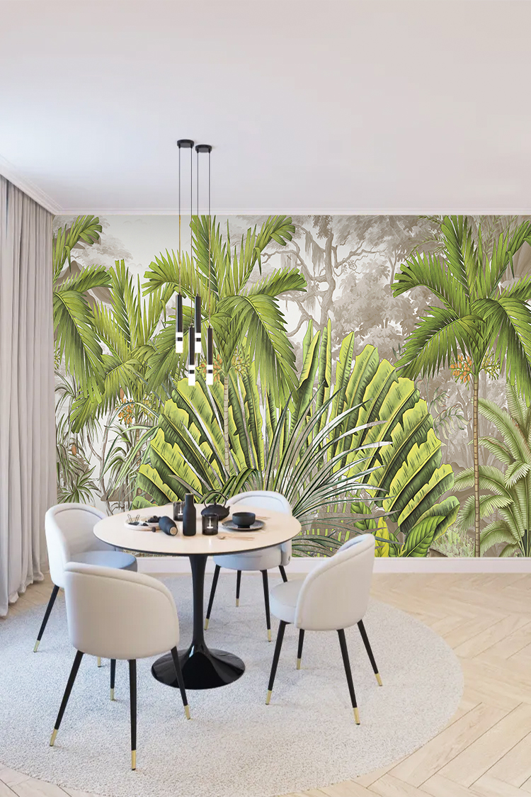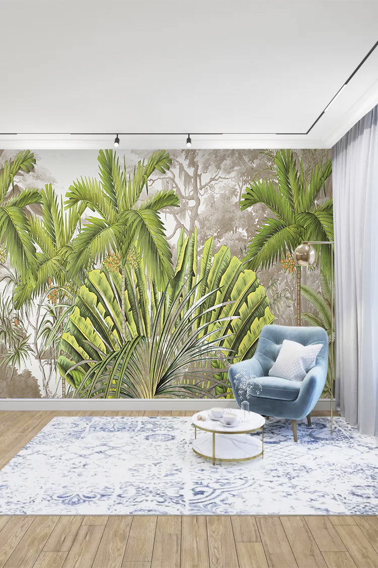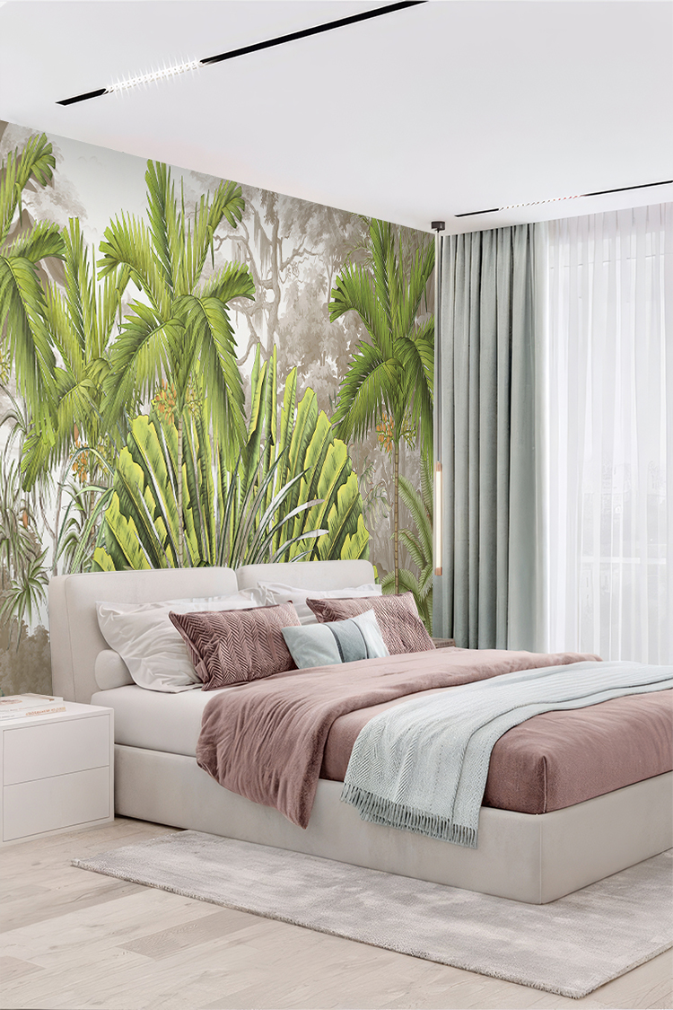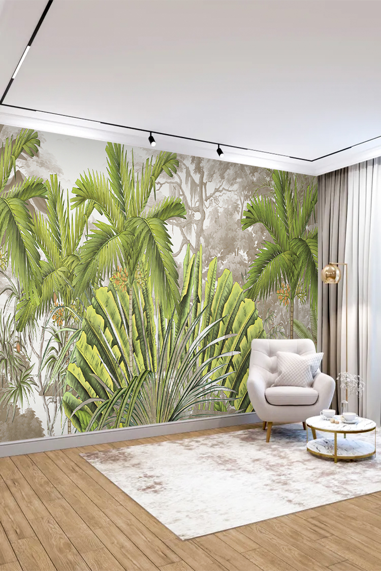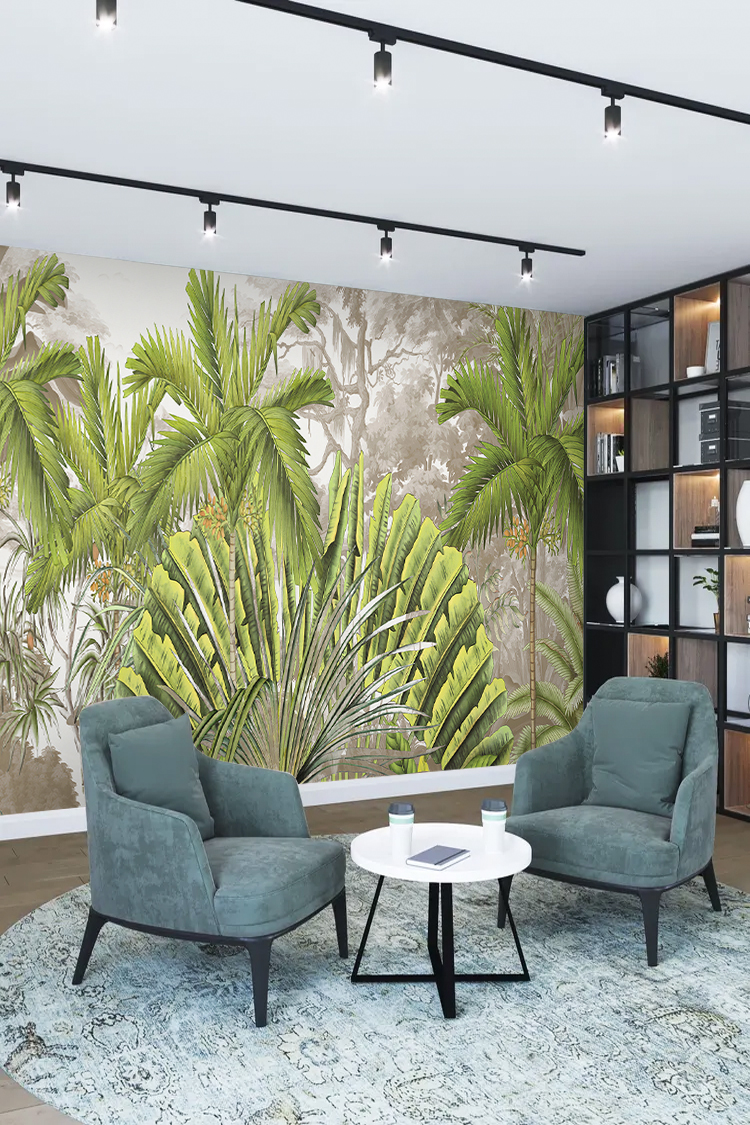 Canlı Yeşil Tropikal Palmiye Yapraklı Duvar Kağıdı
