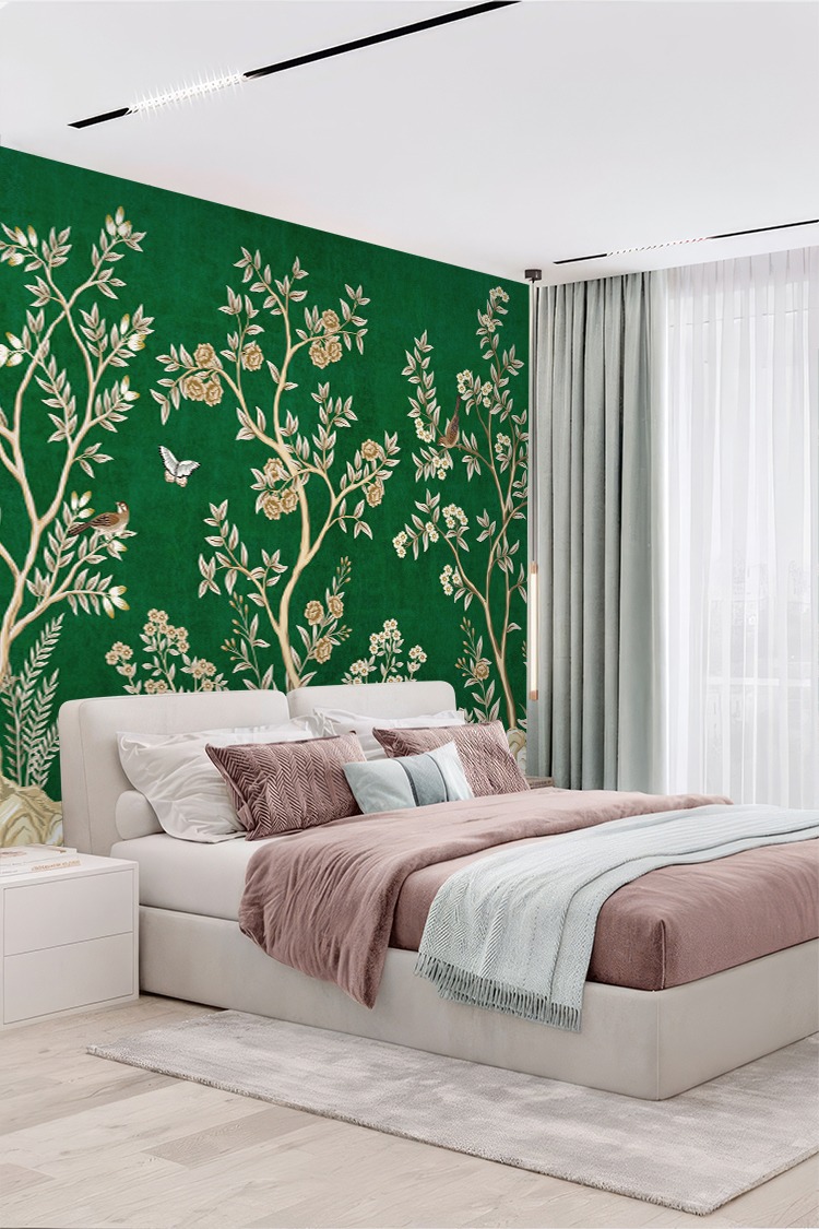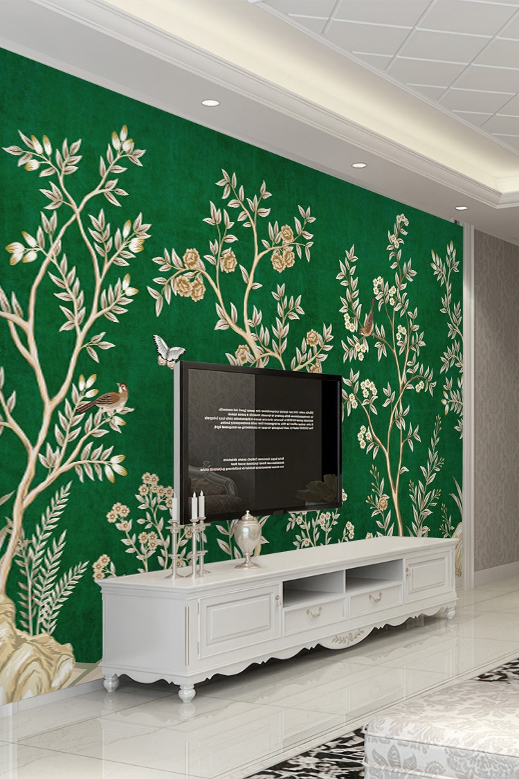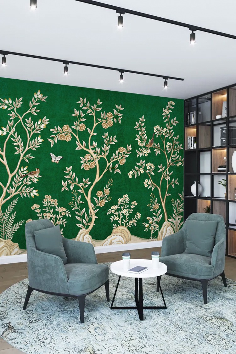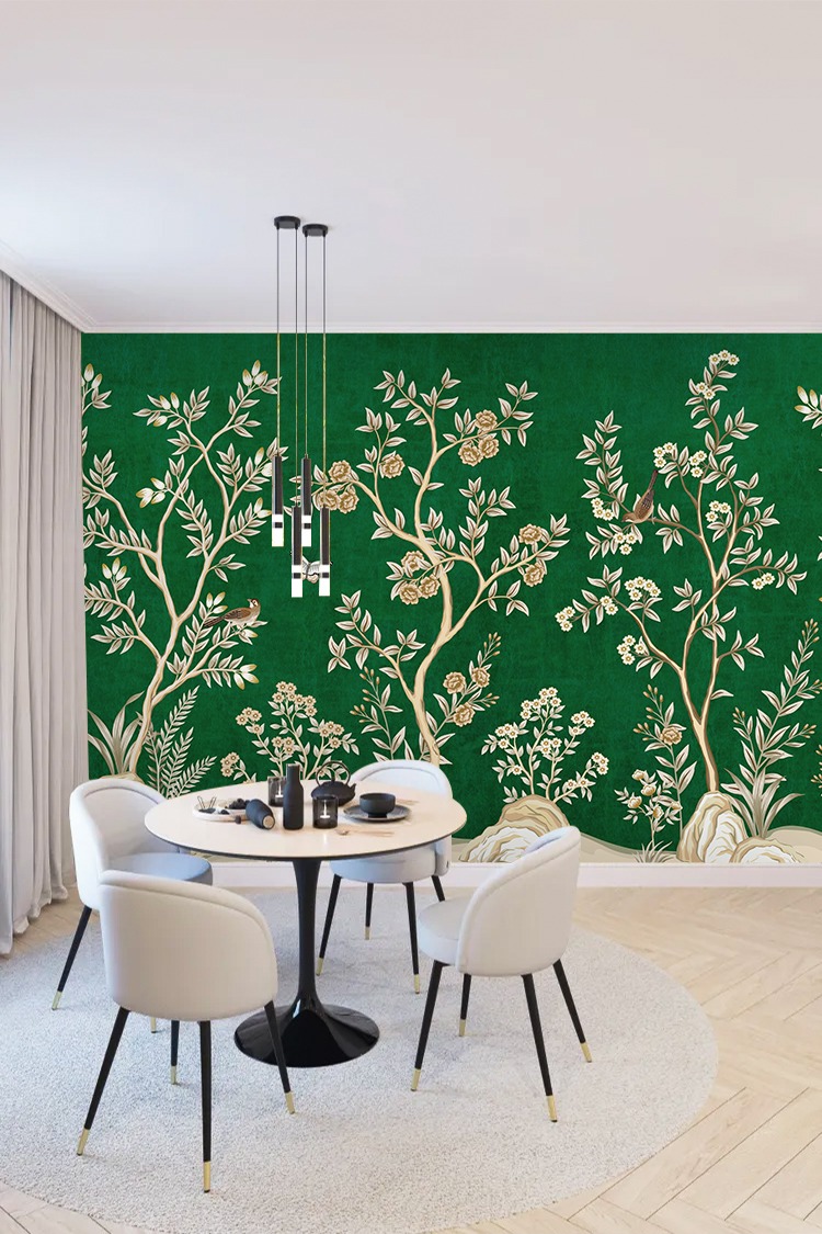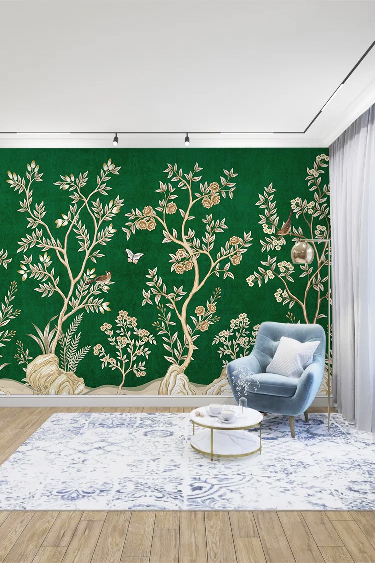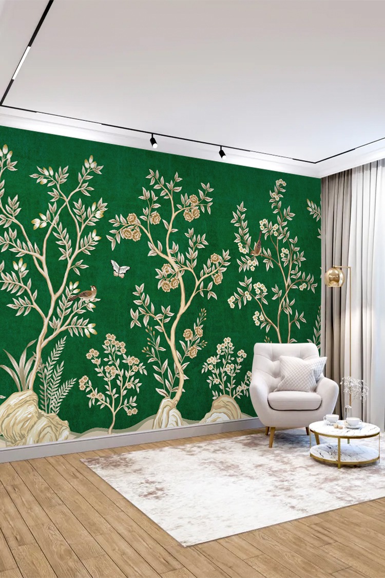 Chinoiserie Tarzı Tropikal Desenli Duvar Kağıdı