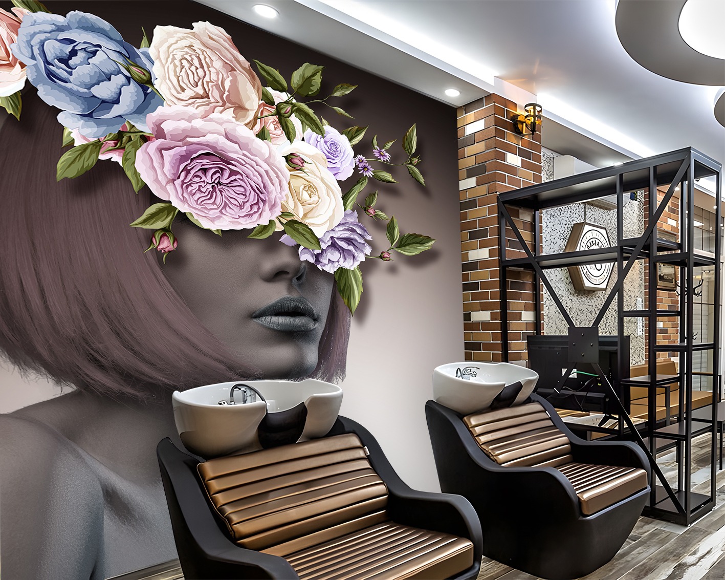 Çiçek Başlı Kadın Figürlü Estetik Duvar Kağıdı