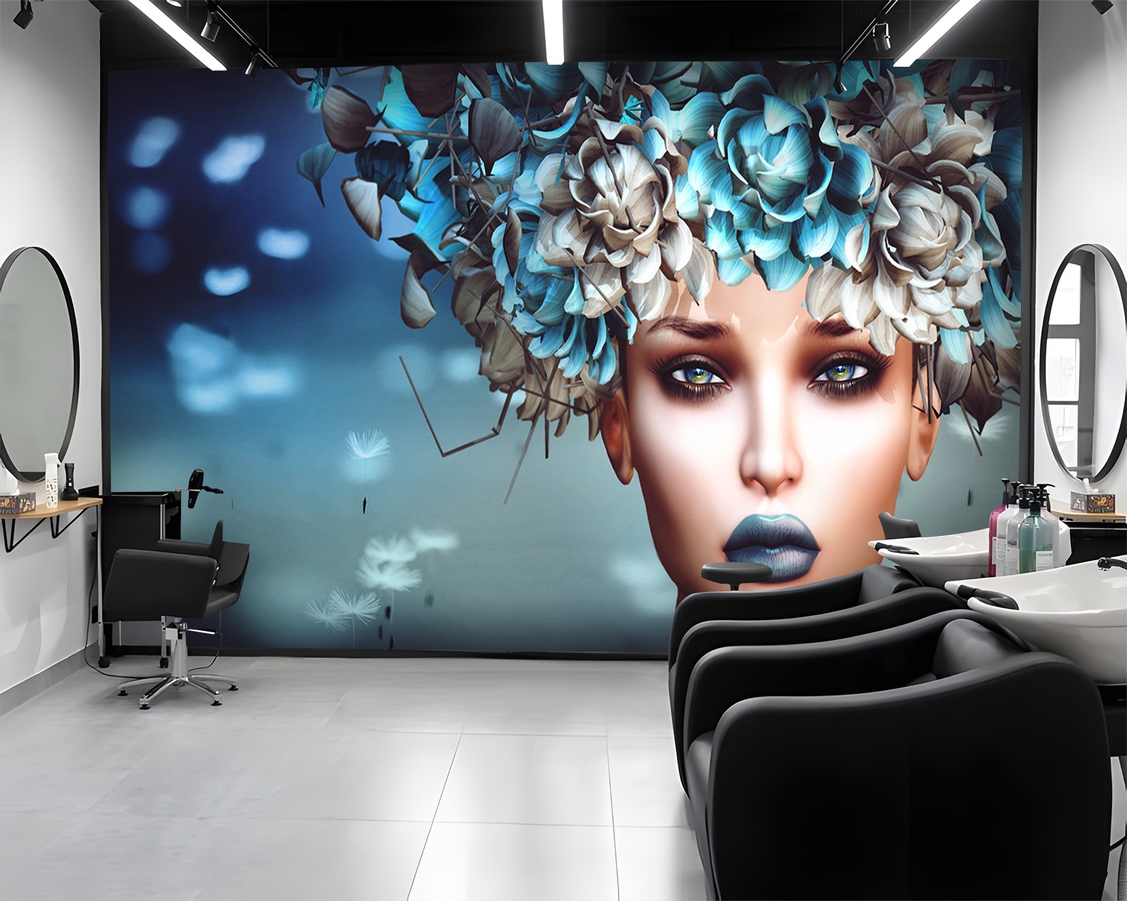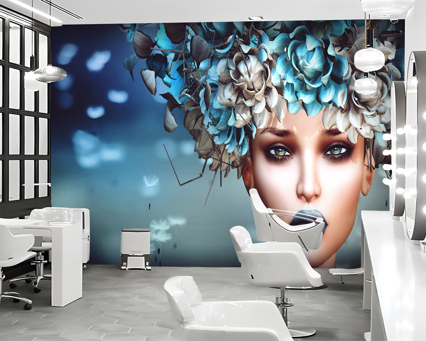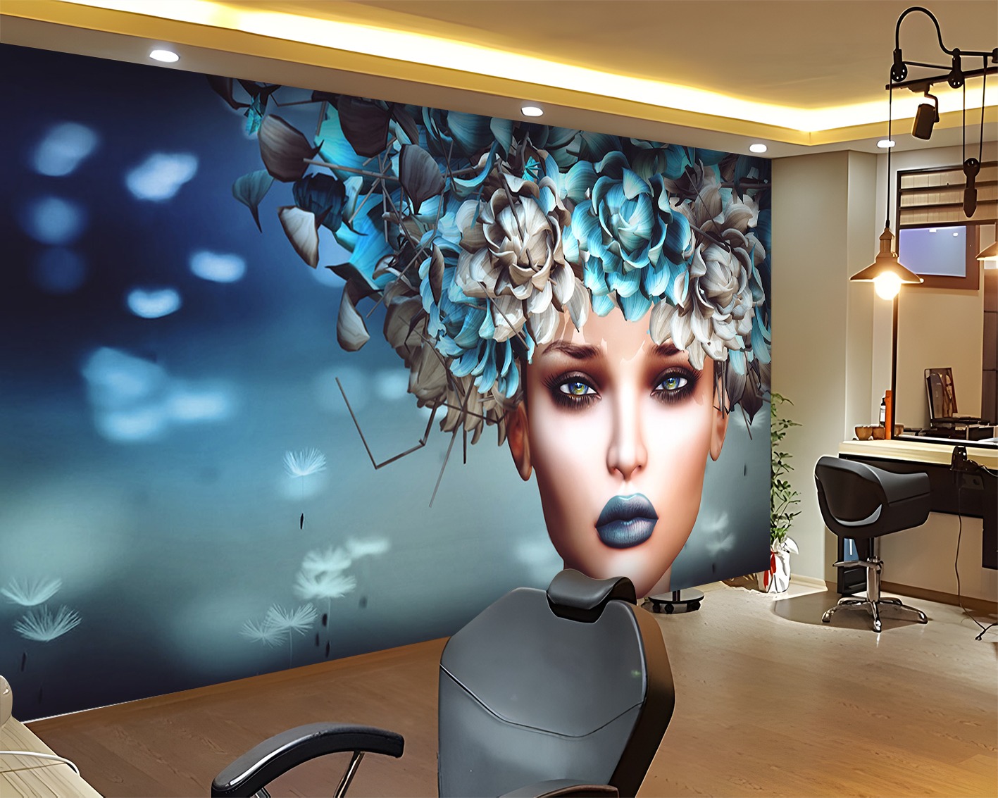 Çiçek Başlı Kadın Figürlü Fantastik Duvar Kağıdı