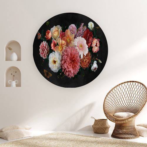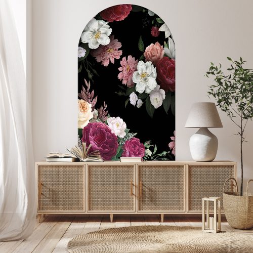 Siyah zeminli çiçek desenli duvar kağıdı – Zarif ve canlı tasarım