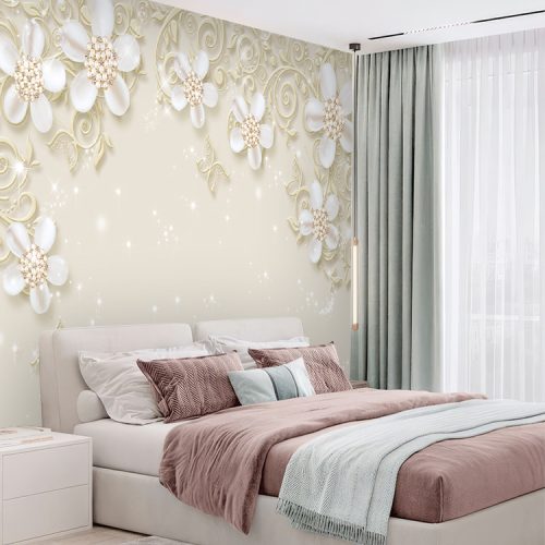 Lüx İnci Çicekli Duvar Kağıdı