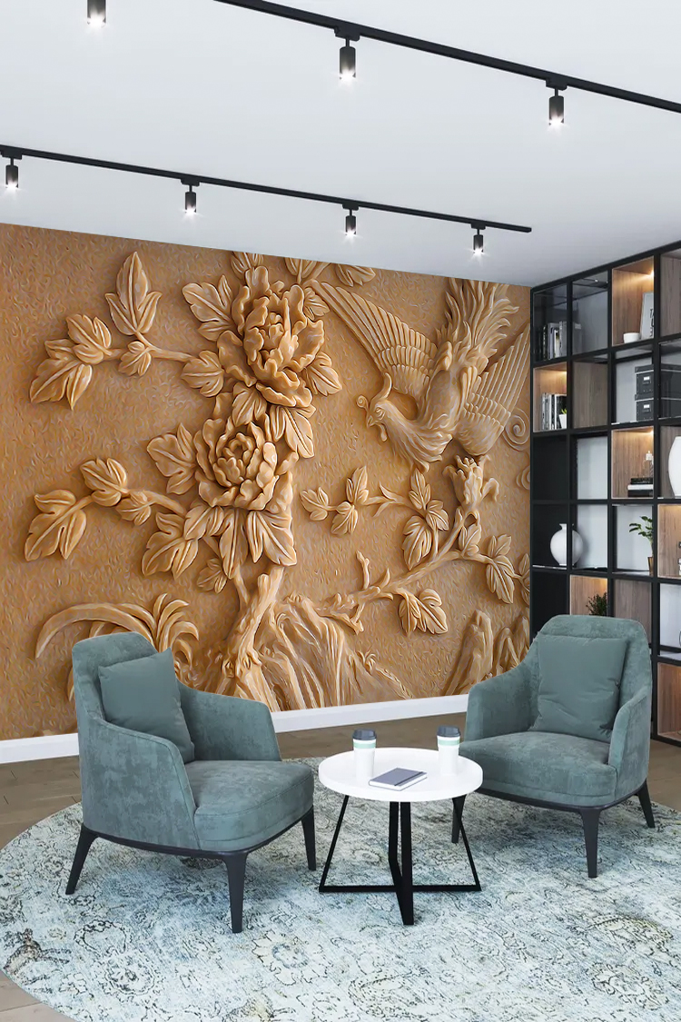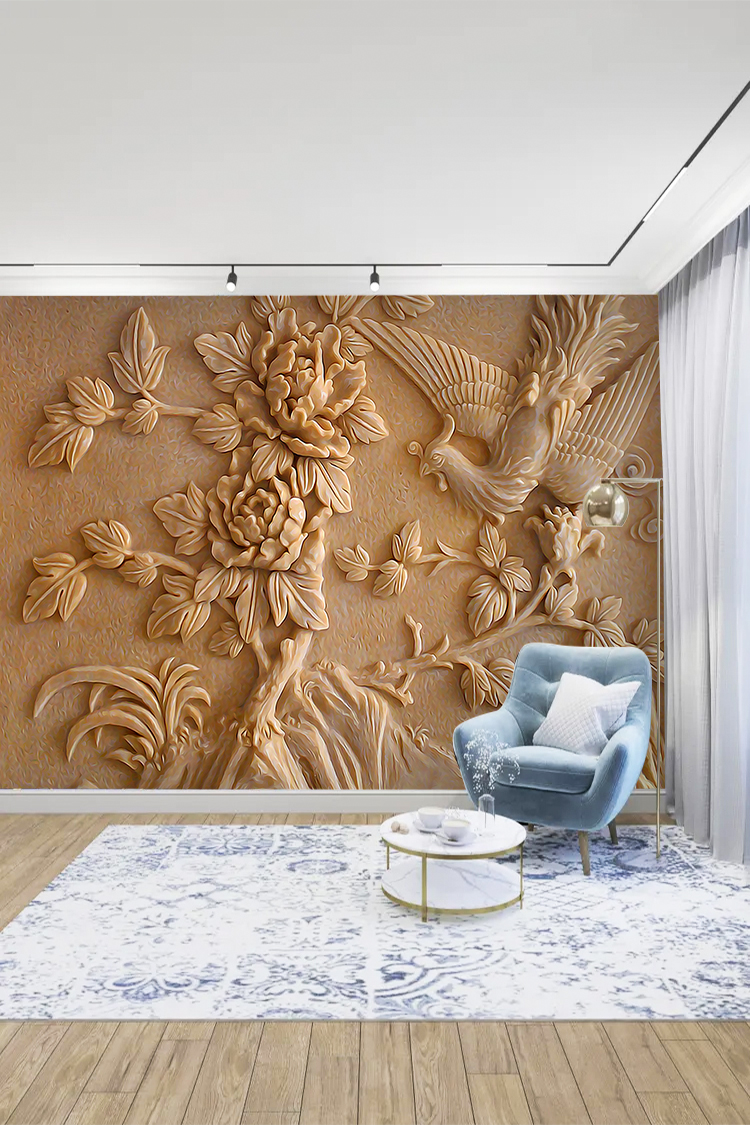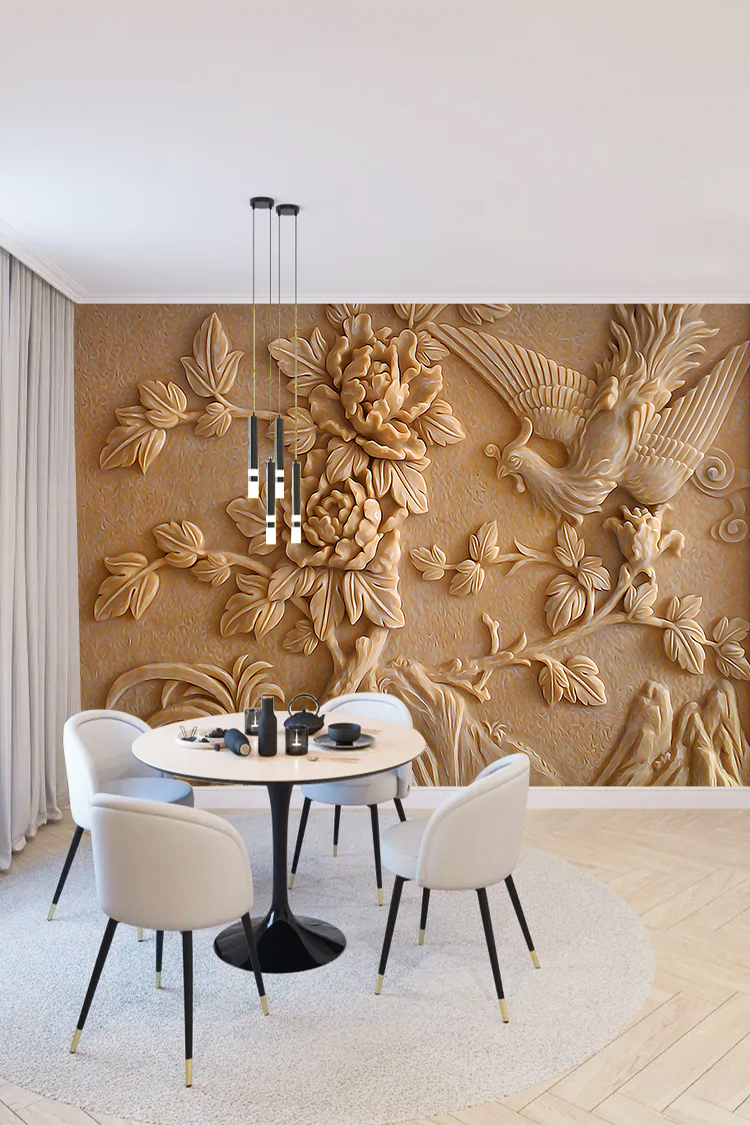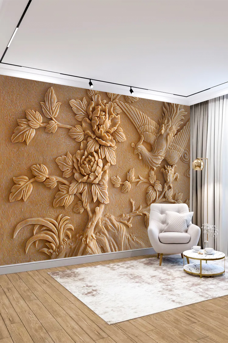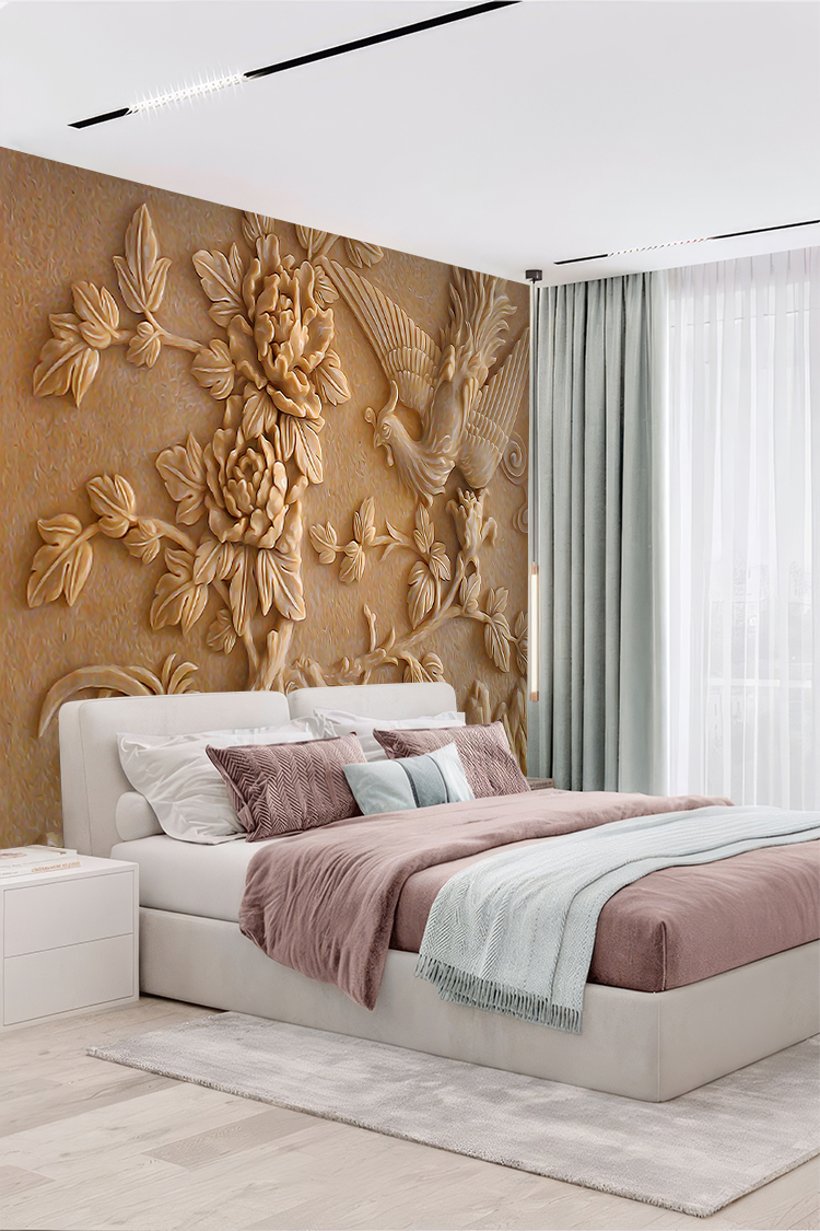 Çiçek ve Kuş 3D Duvar Kağıdı – Doğal ve Zarif Tasarım