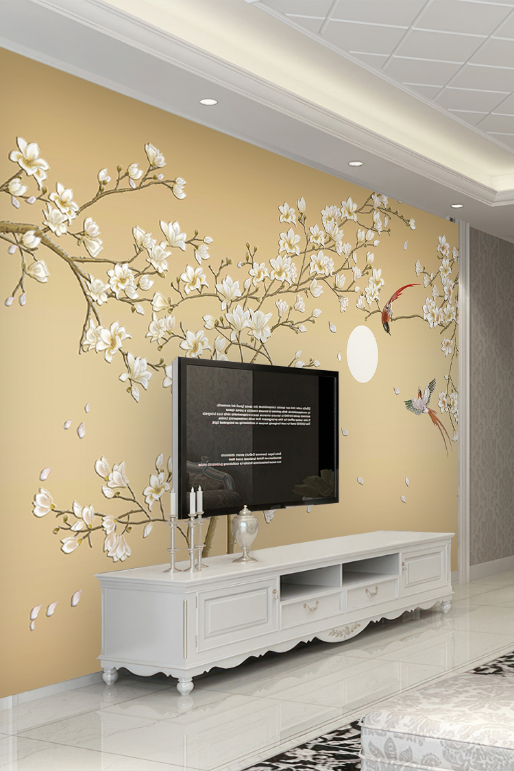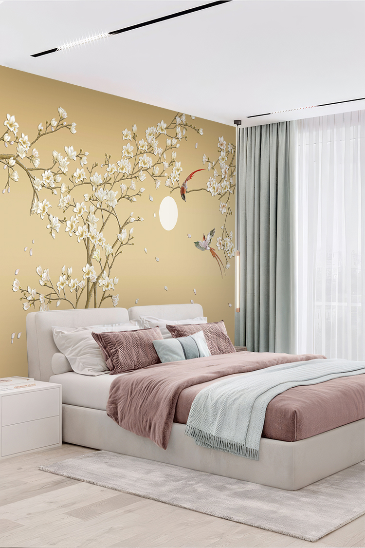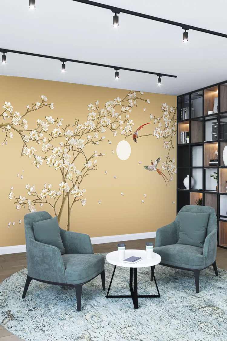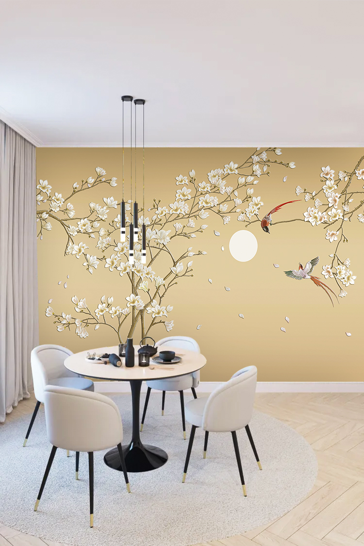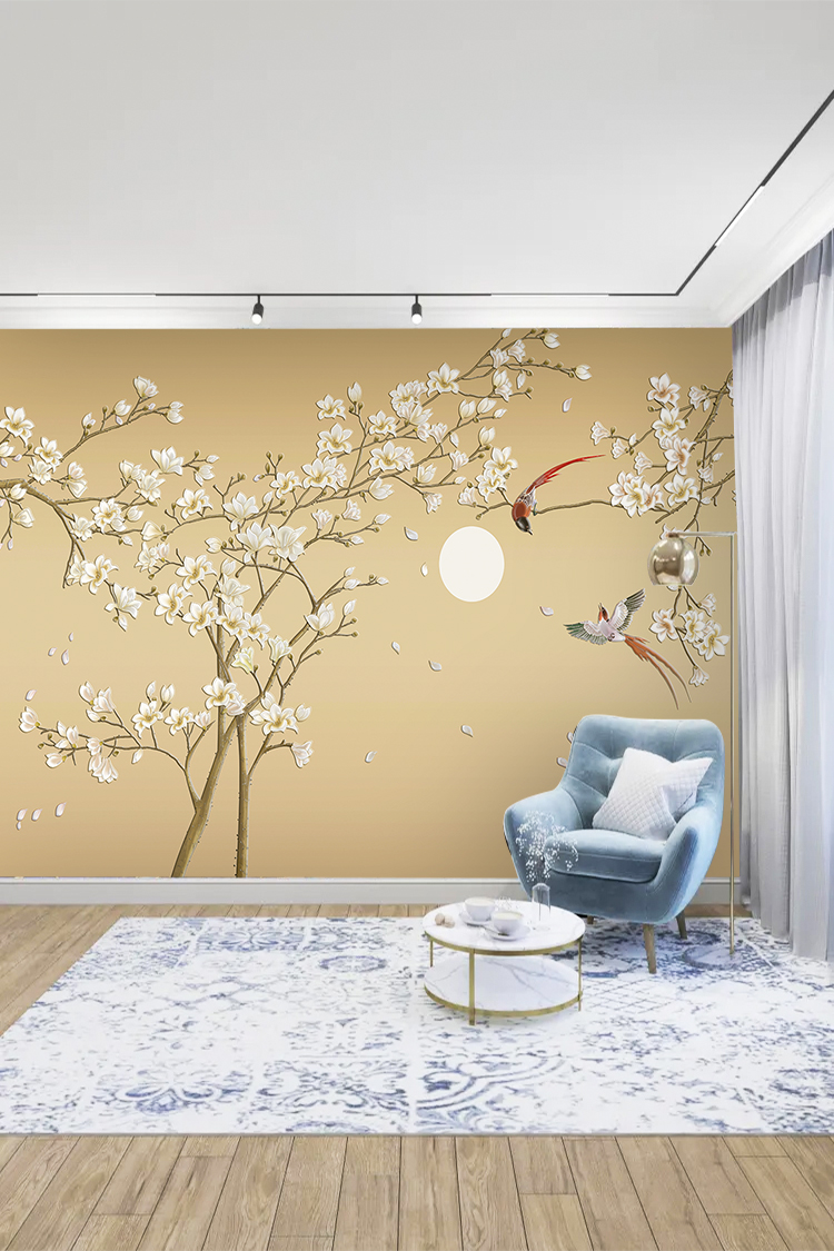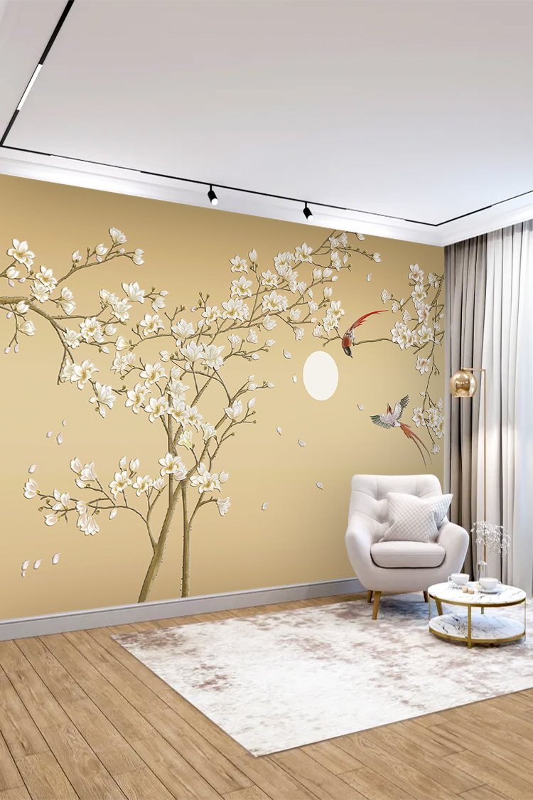 Çiçek ve Kuş Desenli Duvar Kağıdı