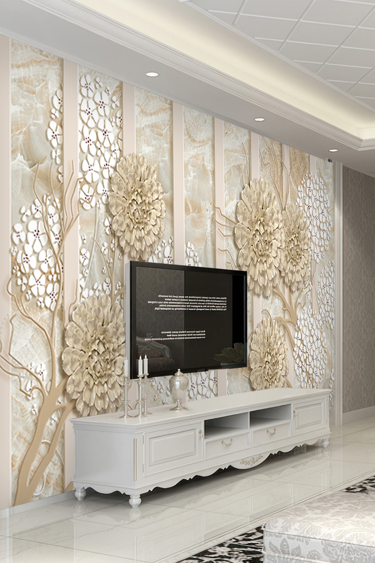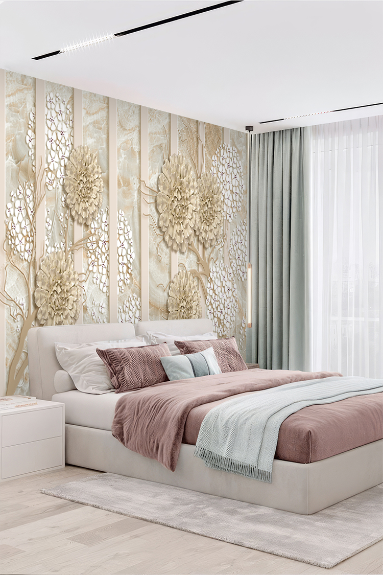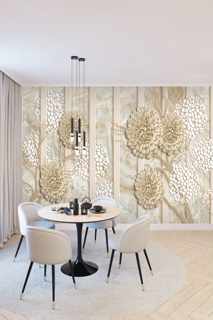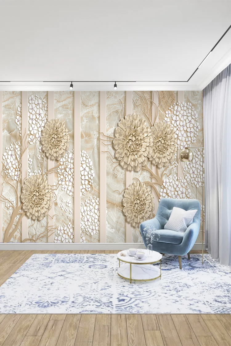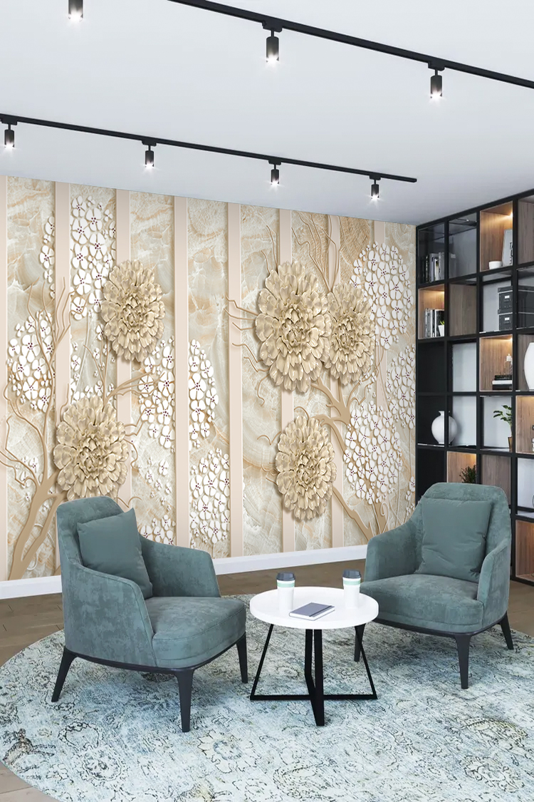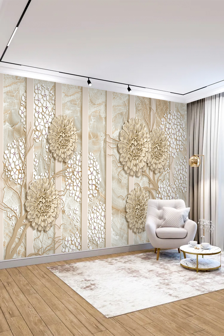 Çiçekli 3D Duvar Kağıdı – Zarif ve Doğal Tasarım
