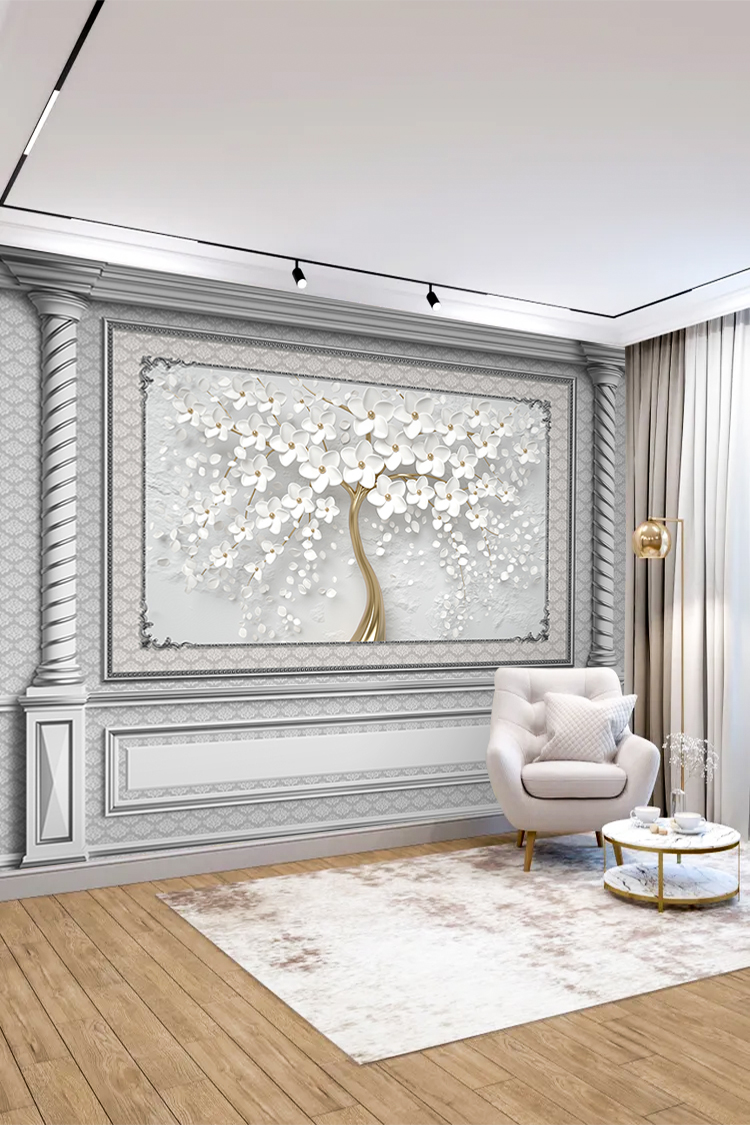 Çiçekli Ağaç Desenli Duvar Kağıdı
