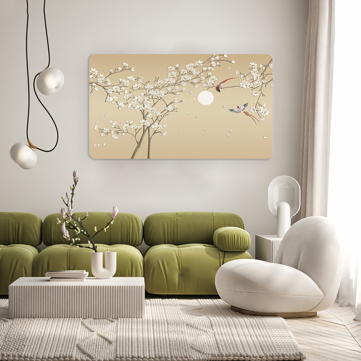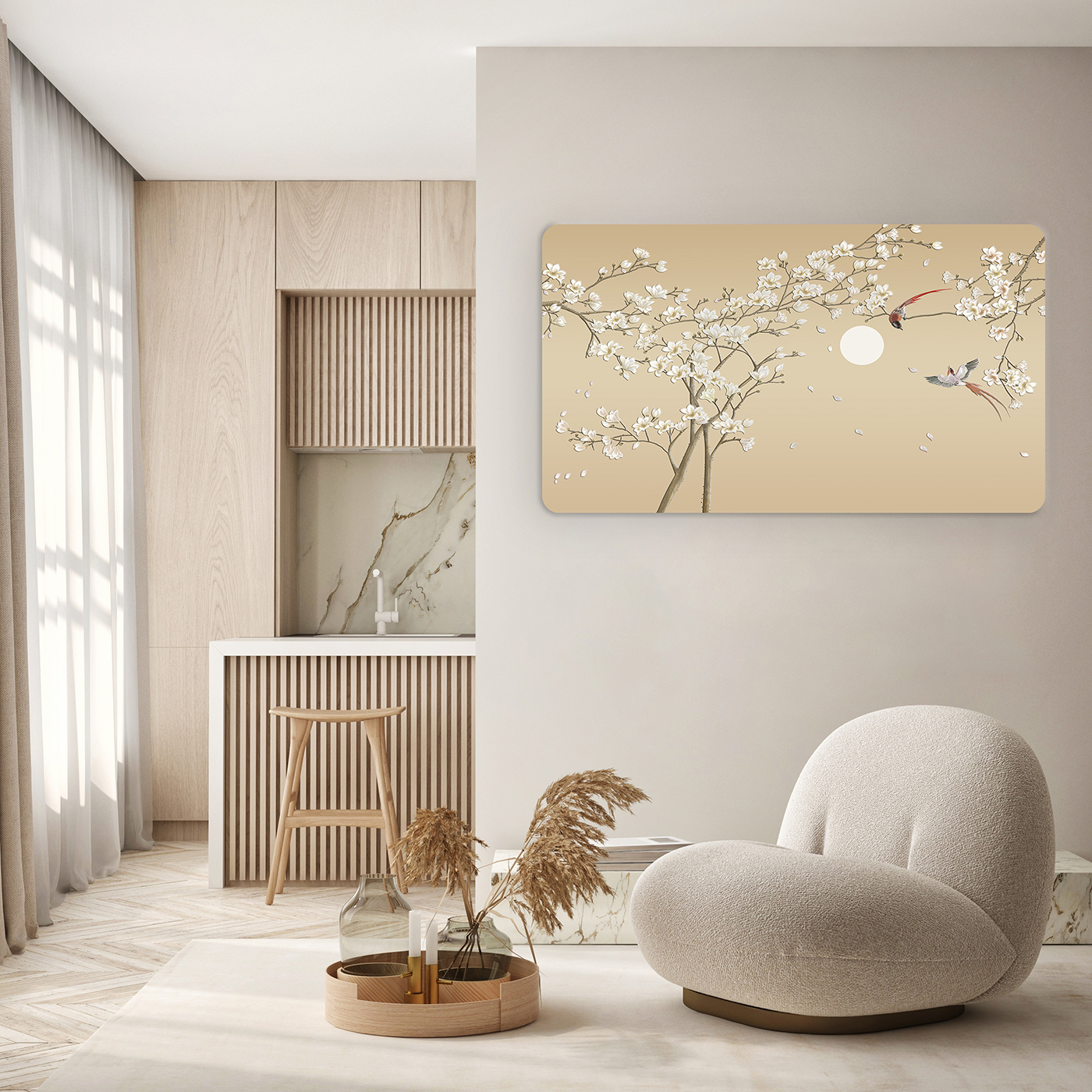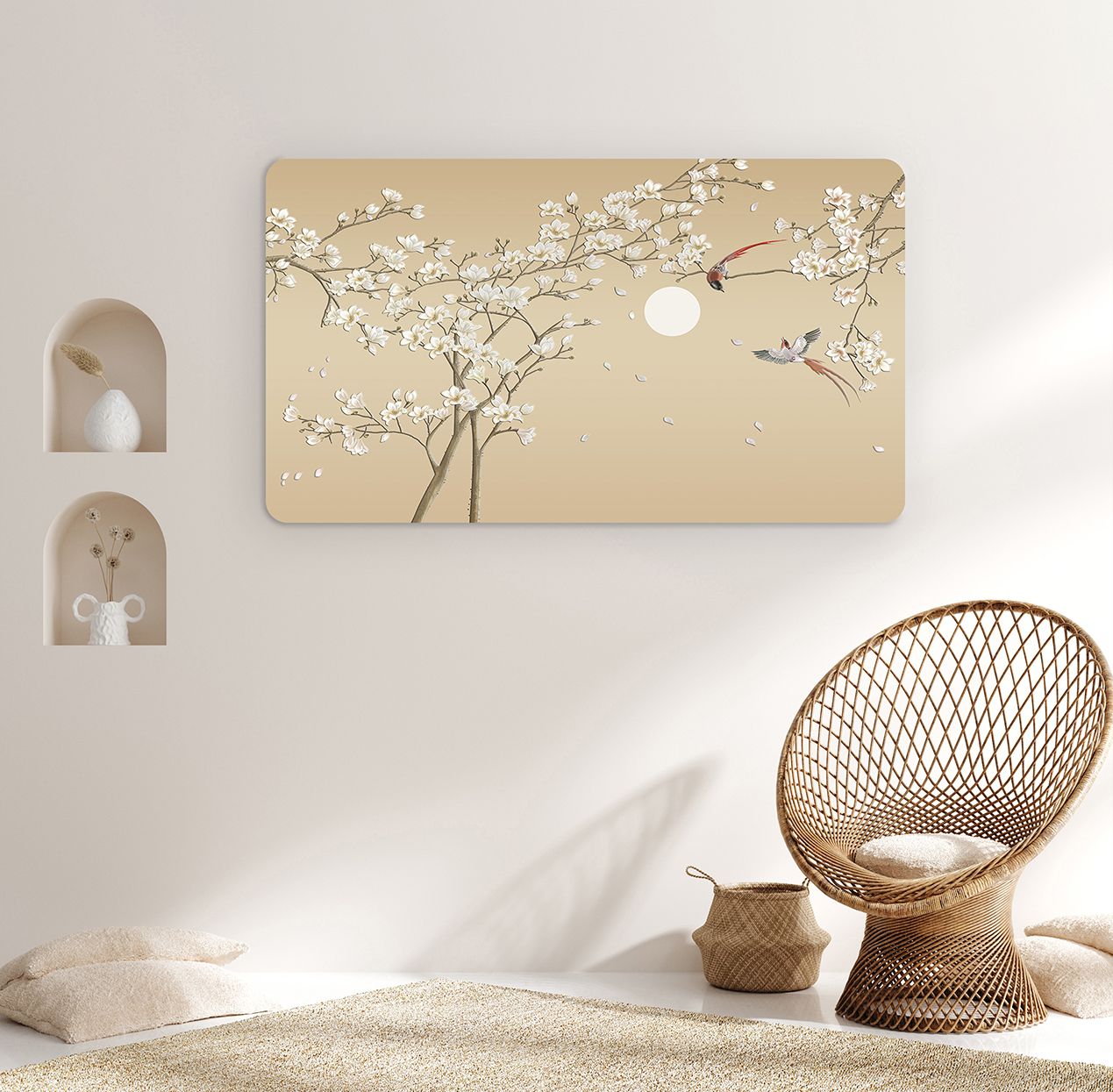 Çiçekli Ağaçlar ve Kuşlar Duvar Kağıdı – Sade ve Şık Tasarım 🎨🚂