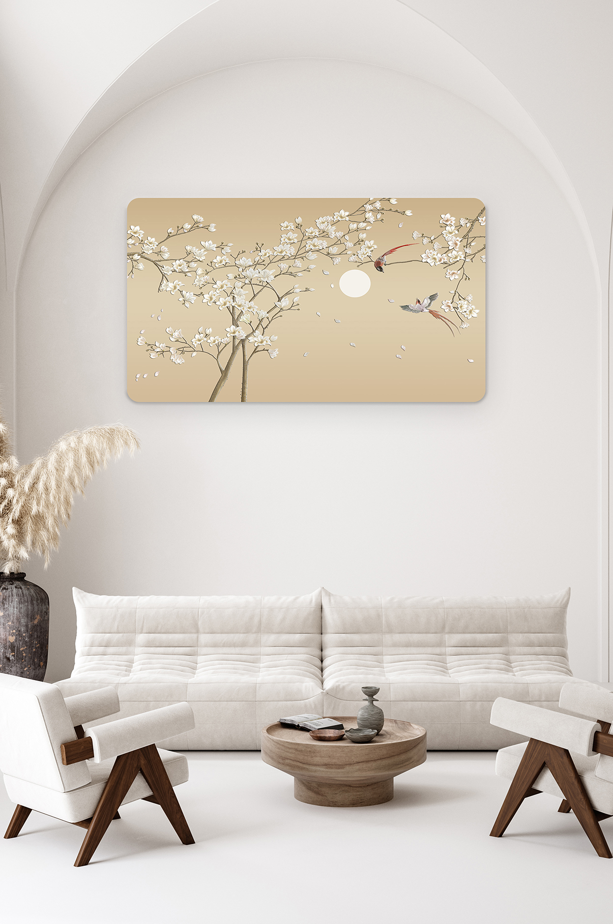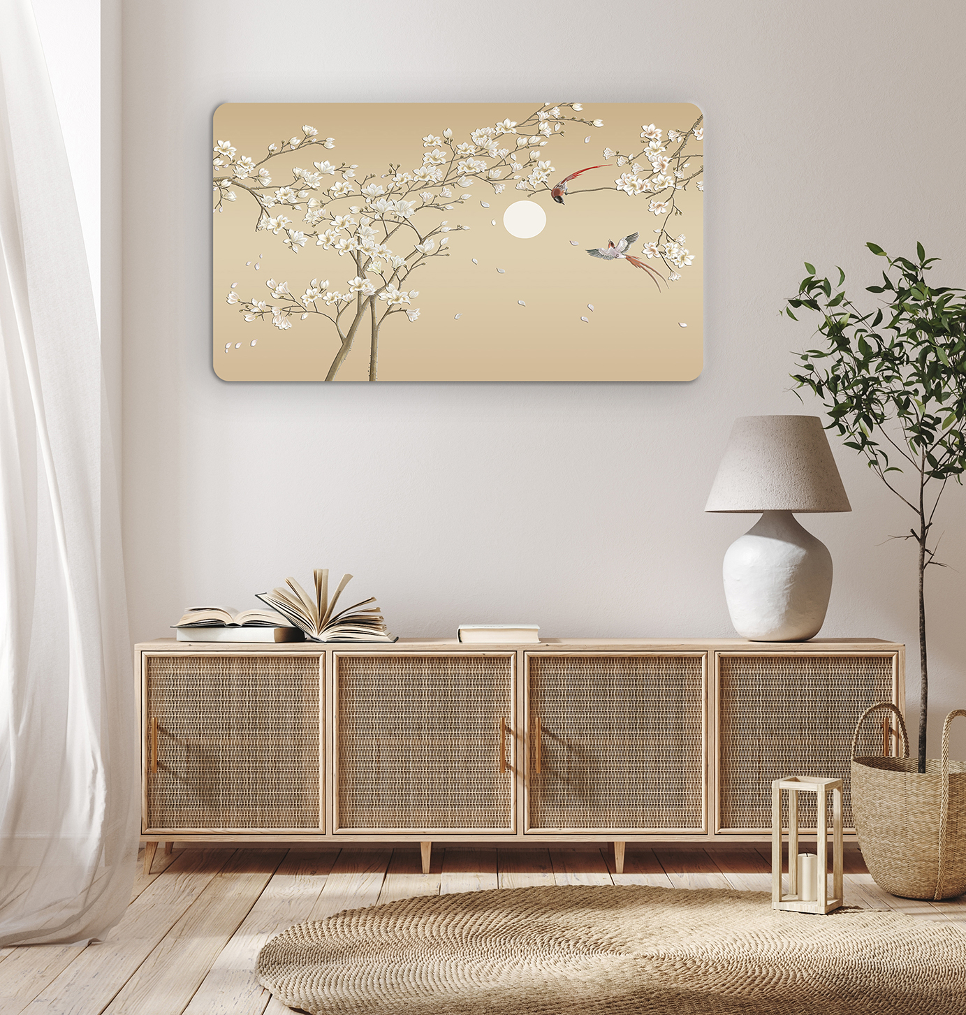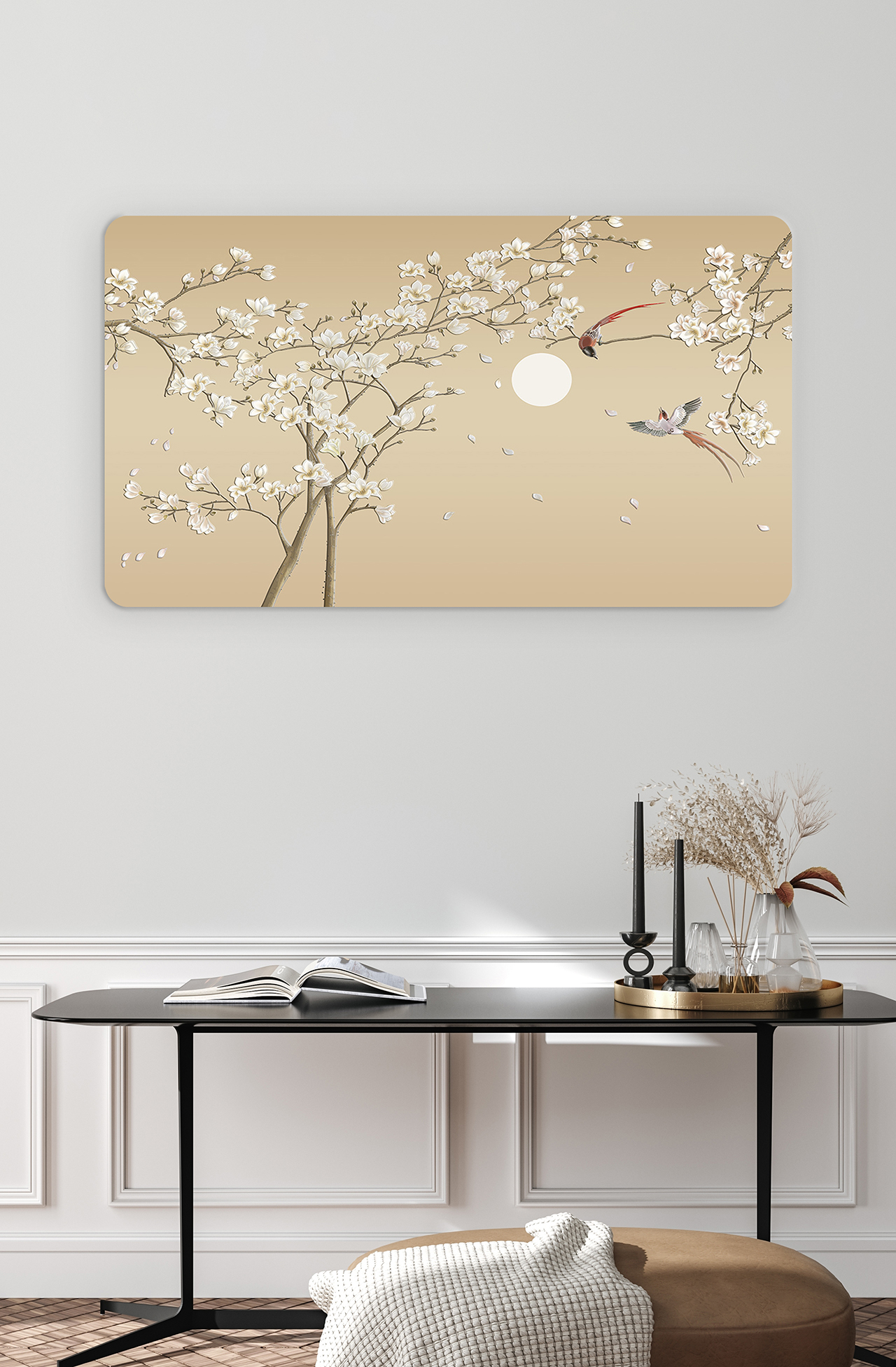 Çiçekli Ağaçlar ve Kuşlar Duvar Kağıdı – Sade ve Şık Tasarım 🎨🚂