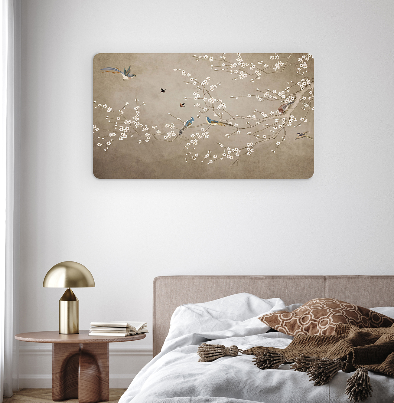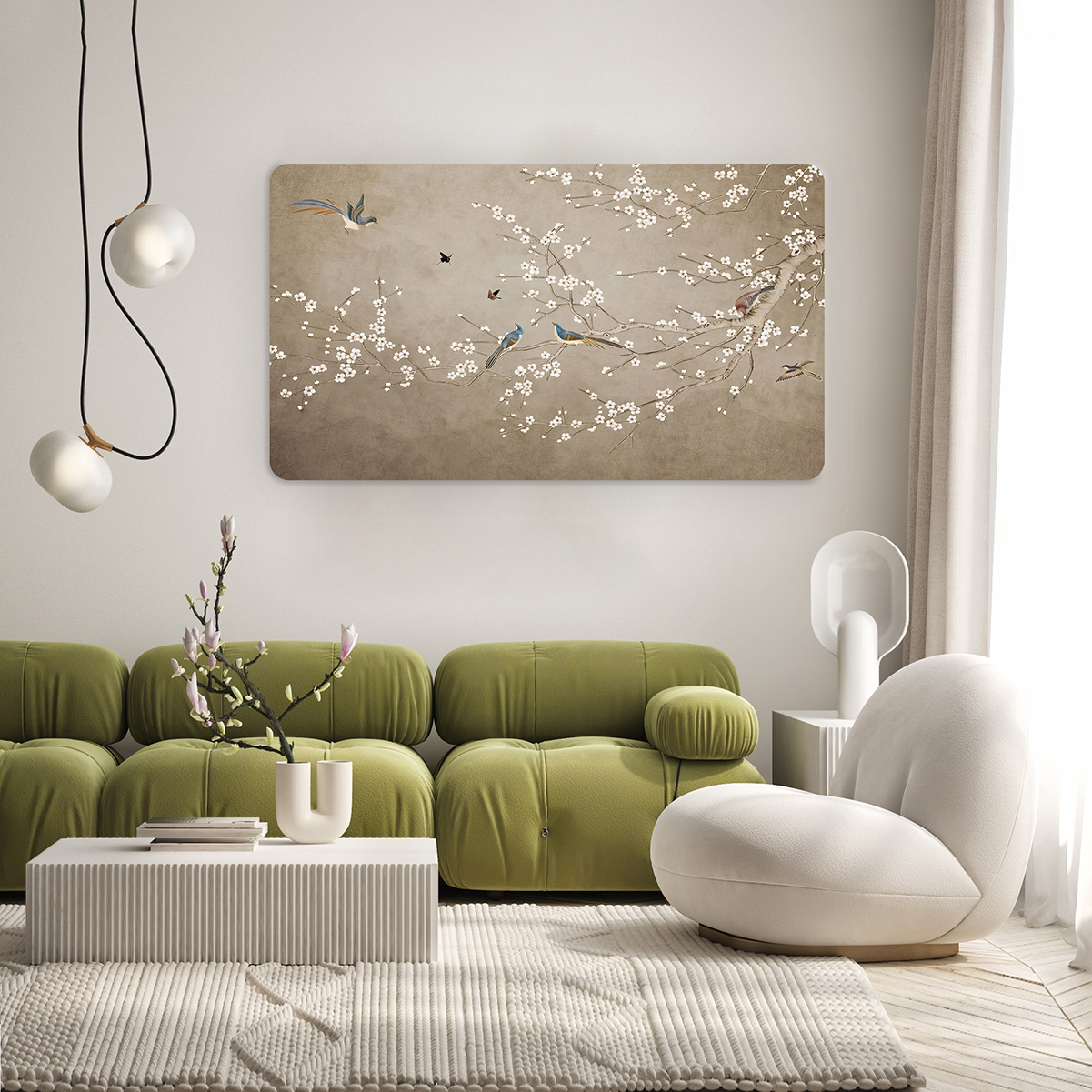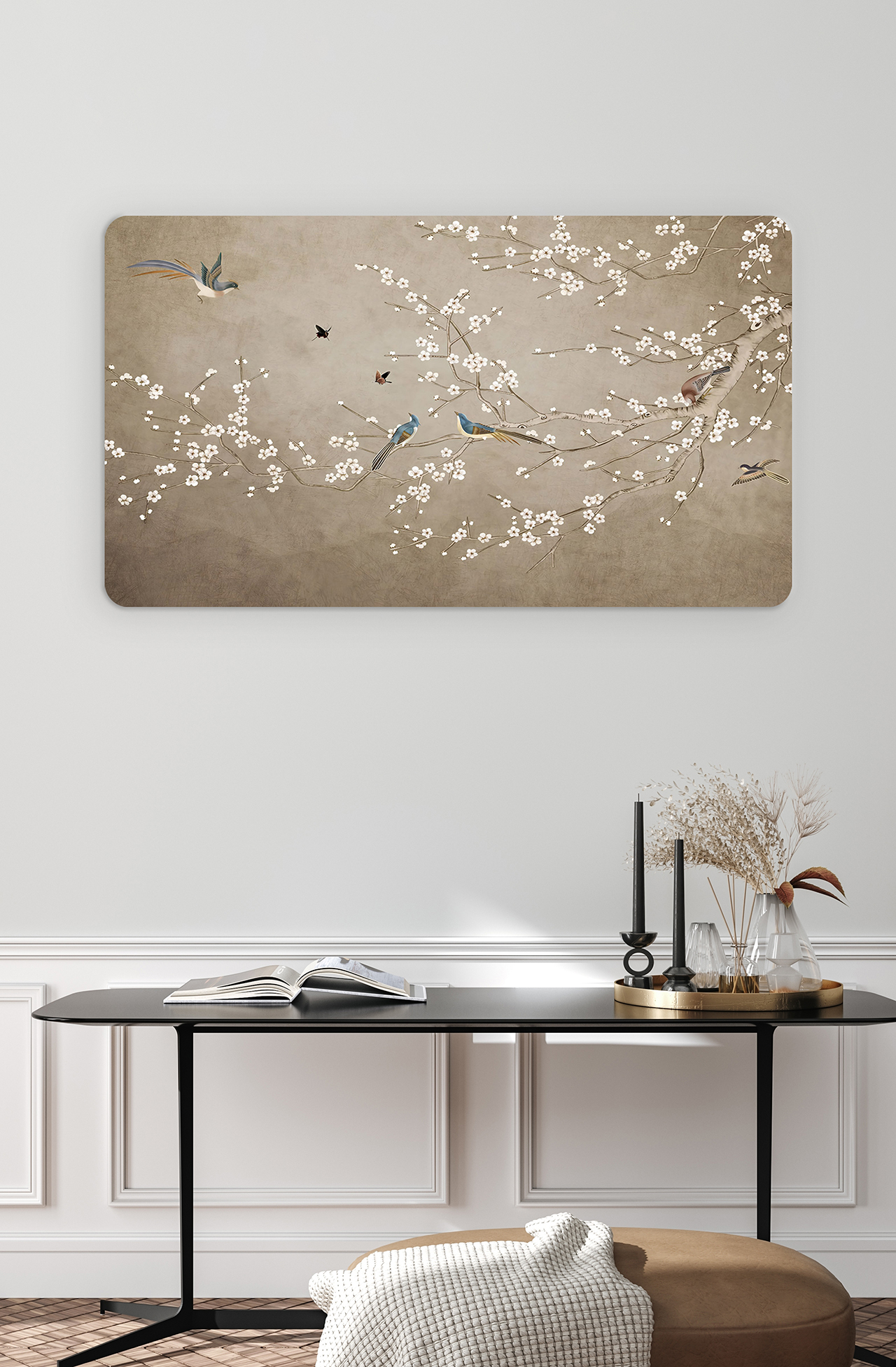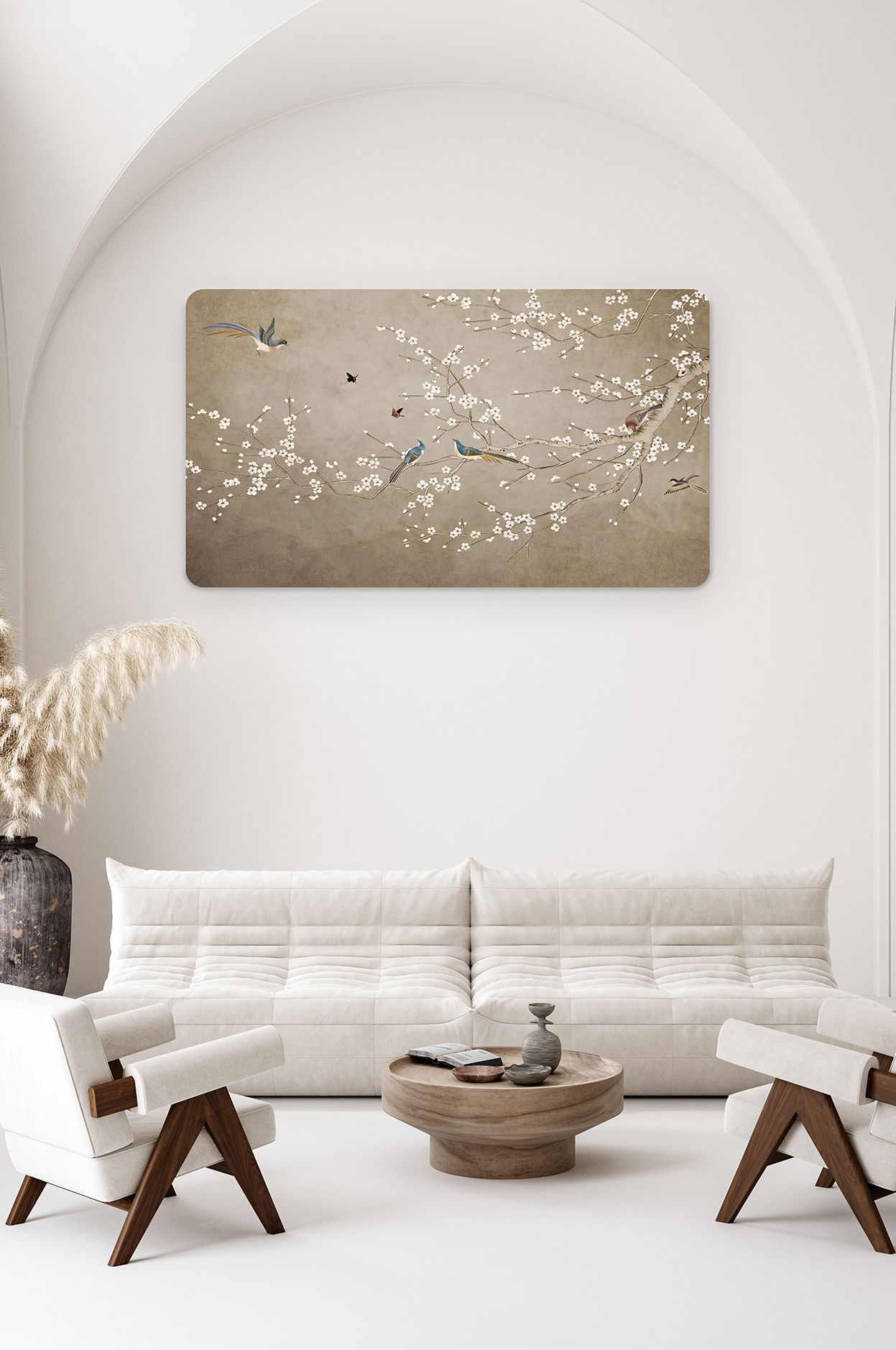 Çiçekli Dal ve Kuşlar Duvar Kağıdı – Doğal ve Zarif Tasarım 🎨🚂