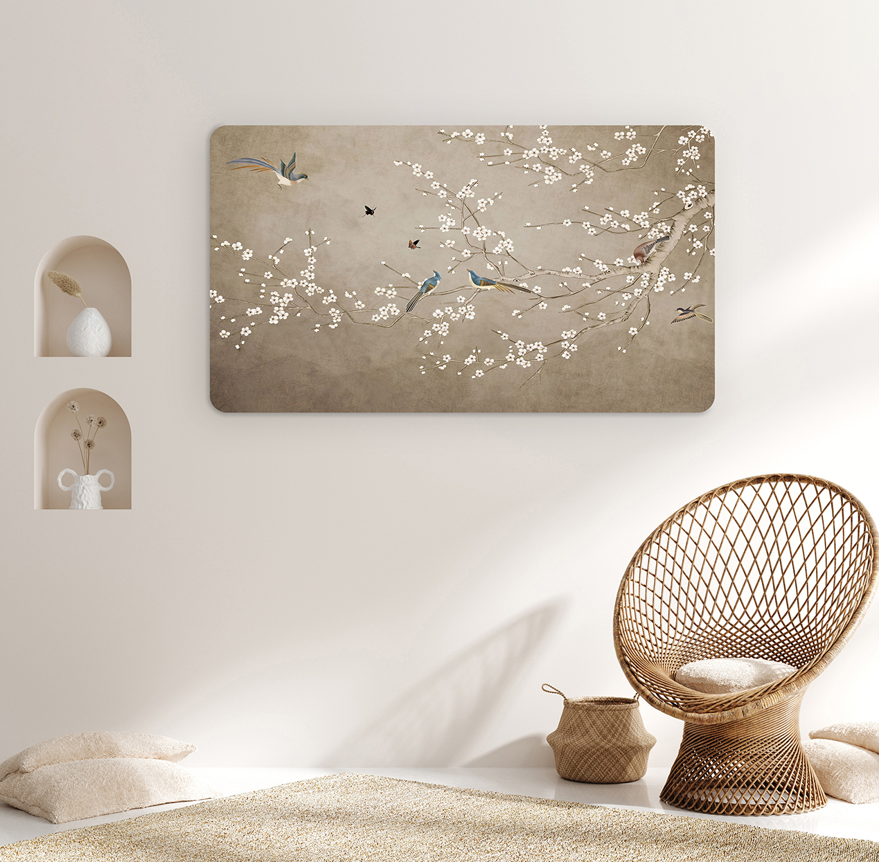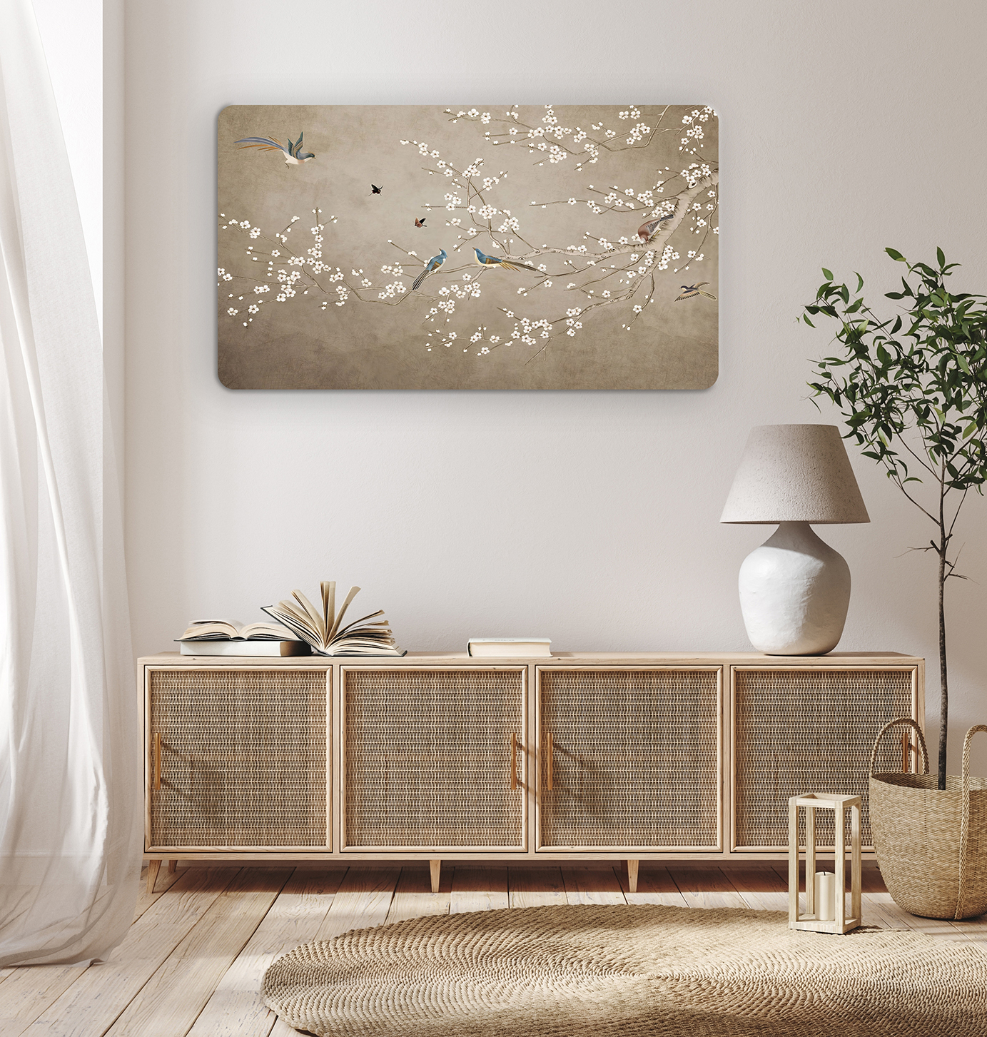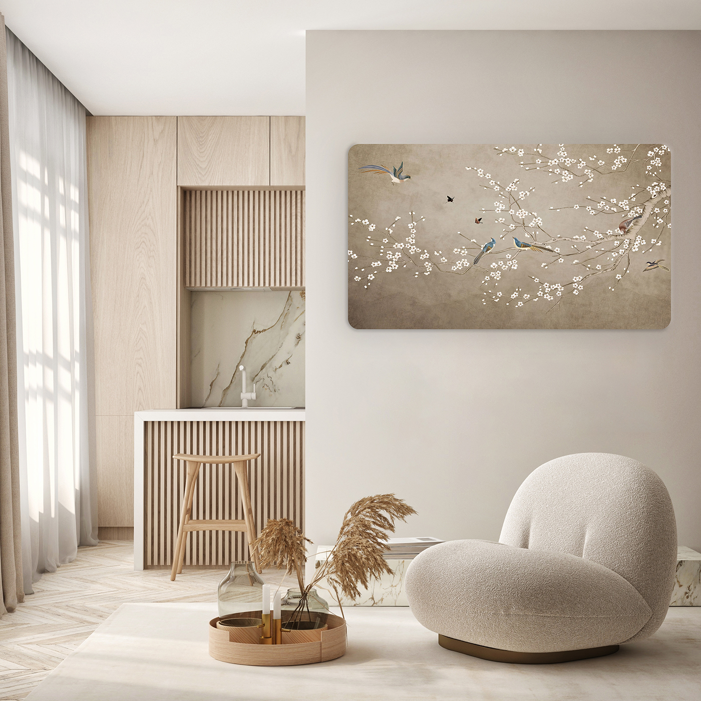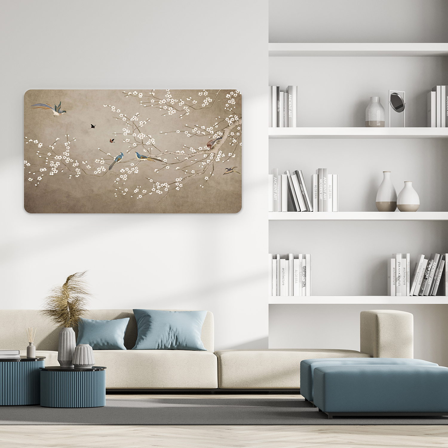 Çiçekli Dal ve Kuşlar Duvar Kağıdı – Doğal ve Zarif Tasarım 🎨🚂