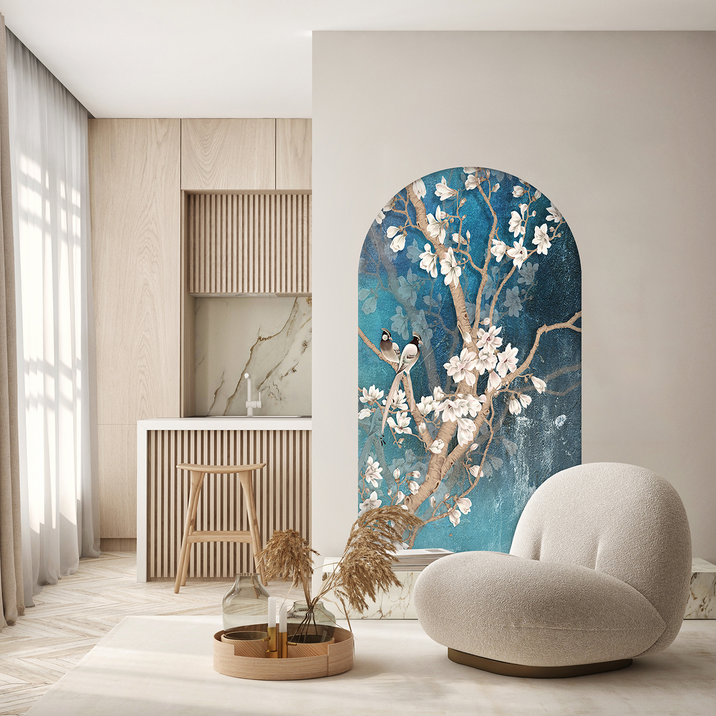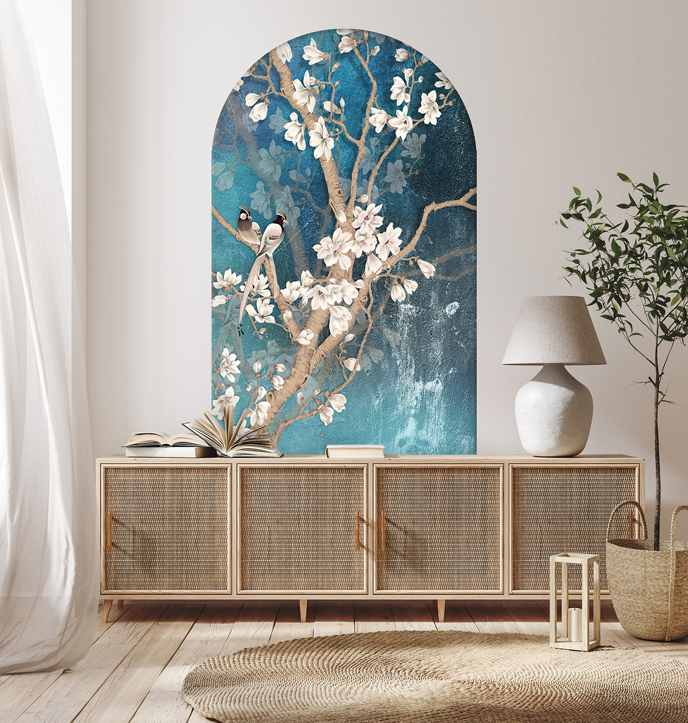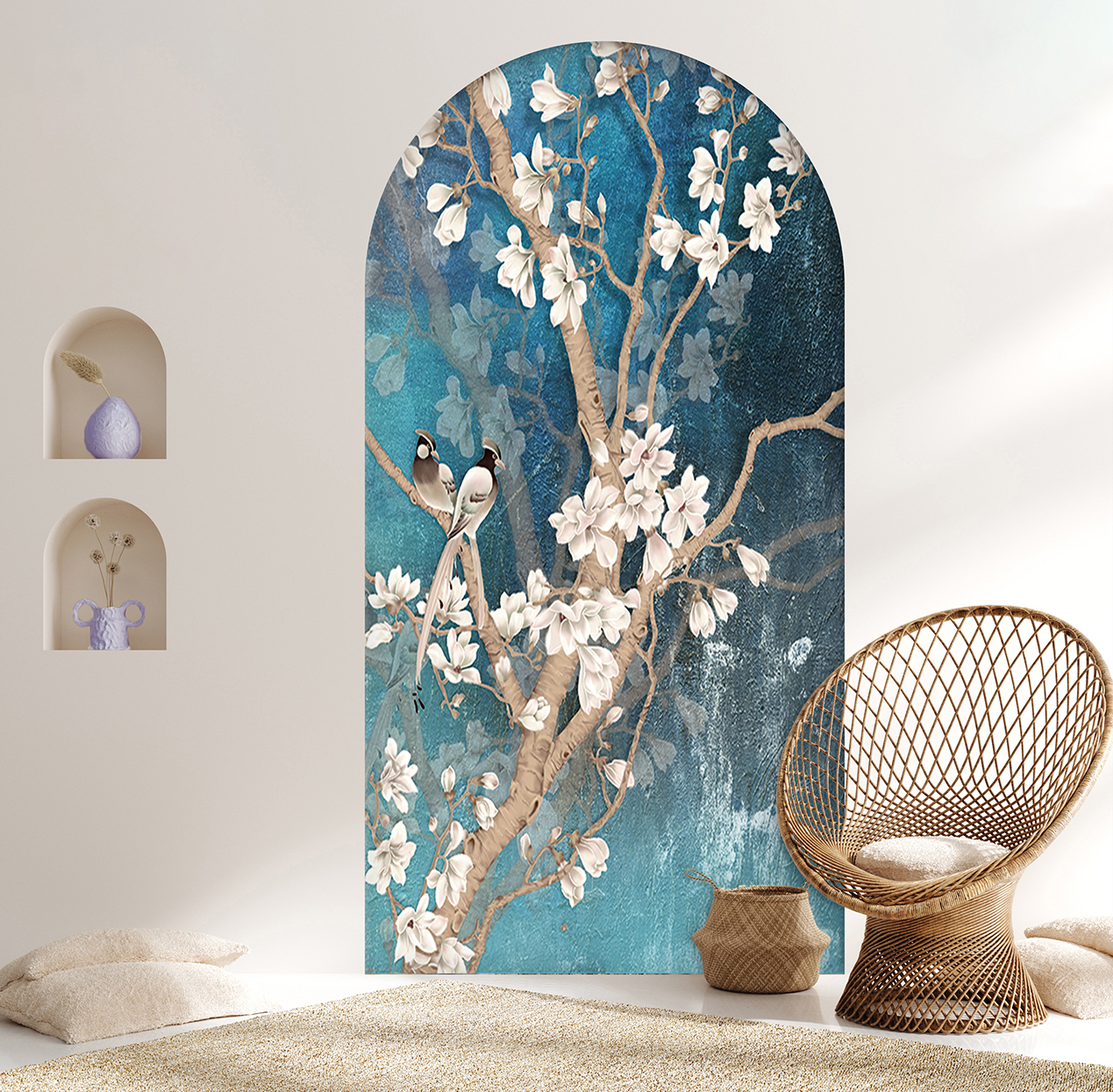 Çiçekli Kuş Desenli Duvar Kağıdı 🎨🚂