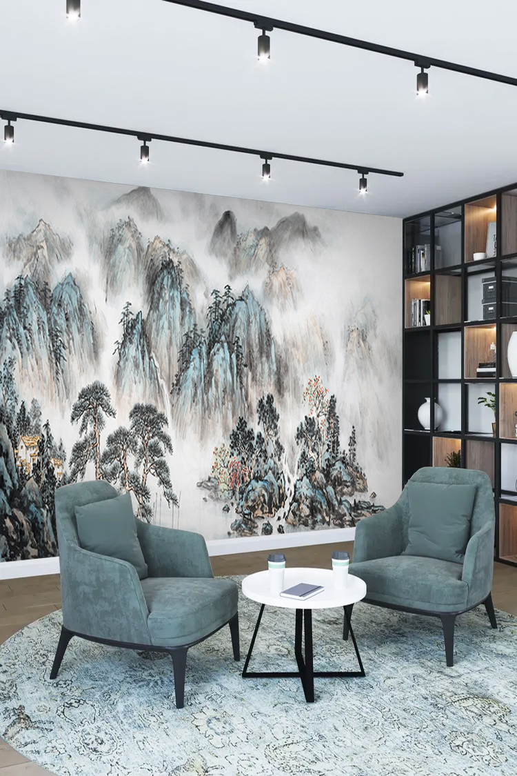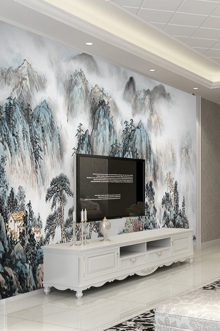 Çin Tarzı Dağ Manzaralı Duvar Kağıdı