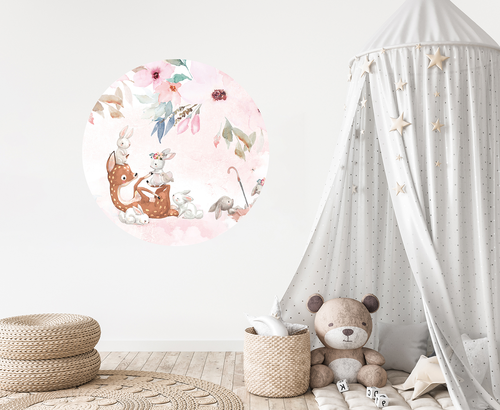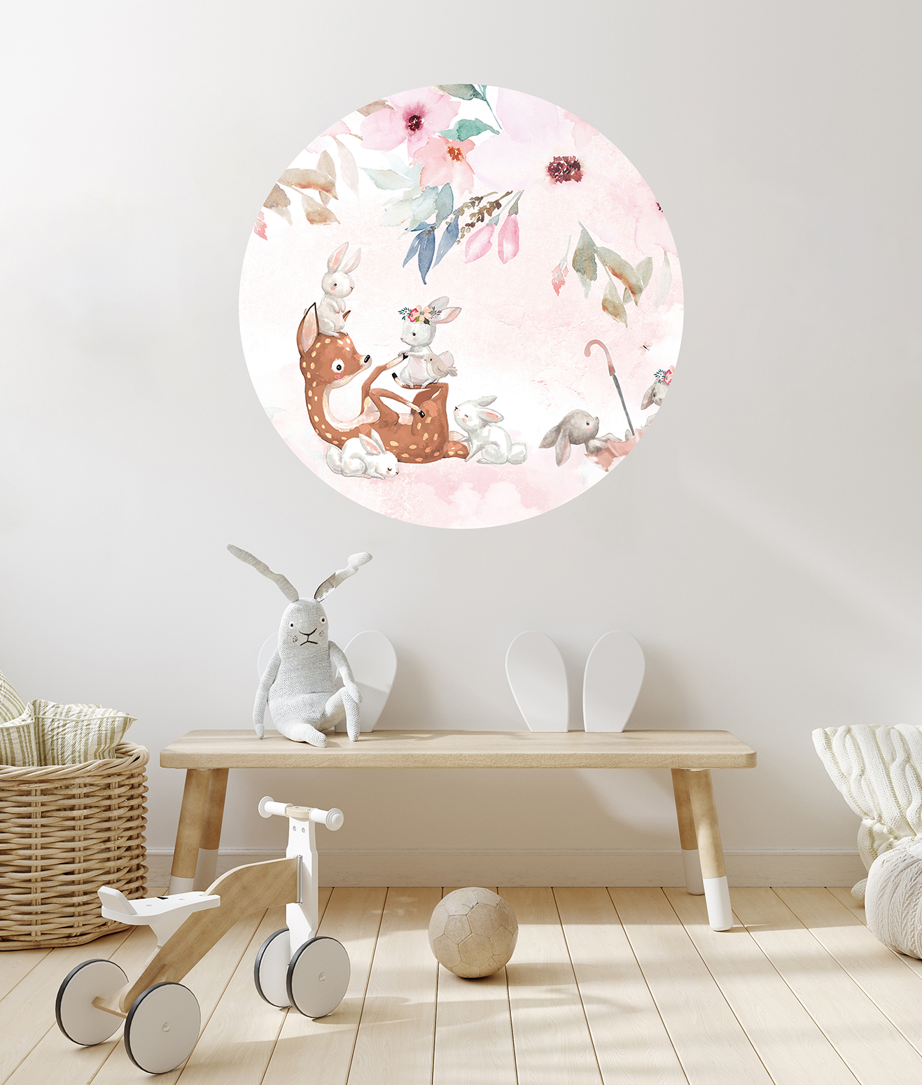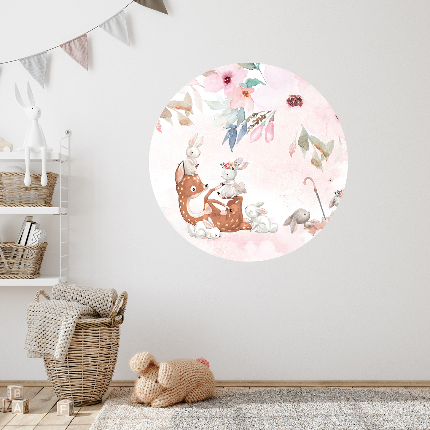 Çocuk Odası İçin Sevimli Hayvanlar ve Çiçek Temalı Duvar Kağıdı – Doğal Tasarım 🎨🚂