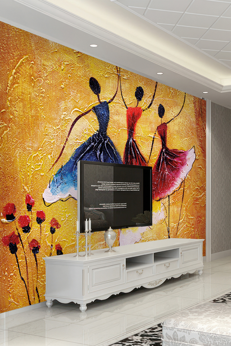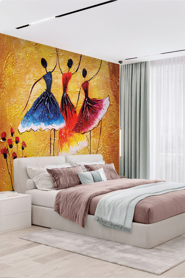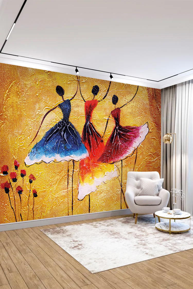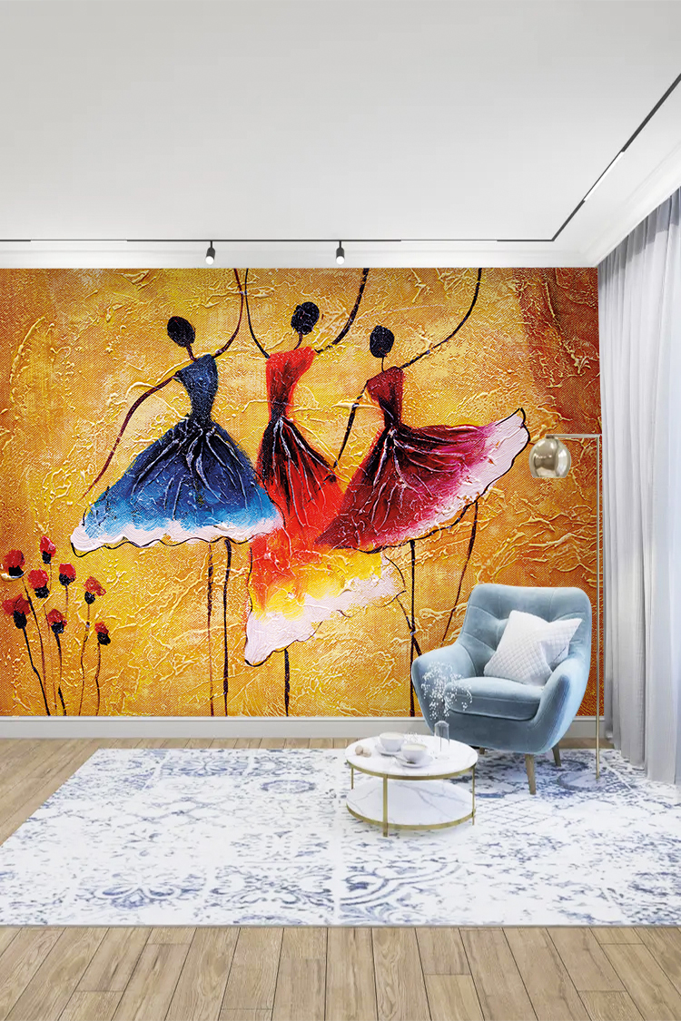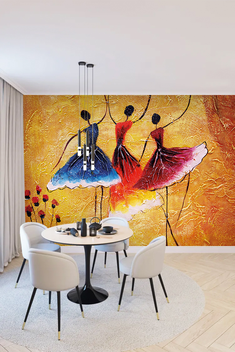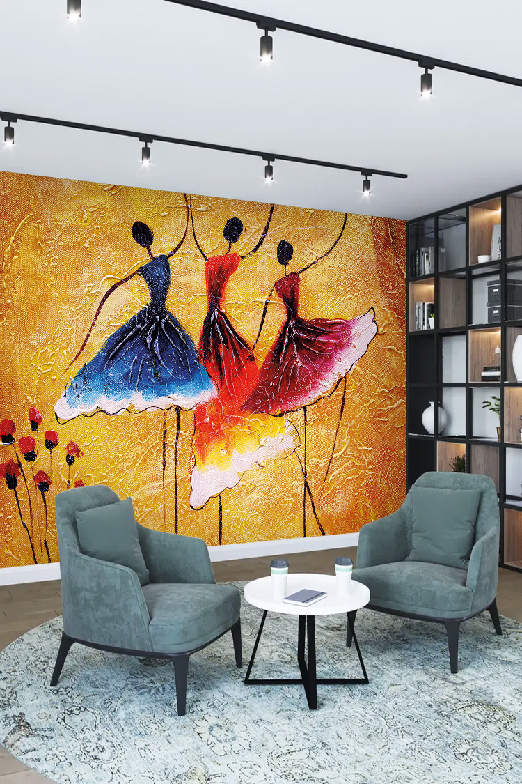 Dans Eden Balerinler ve Canlı Renklerle Tasarlanmış Duvar Kağıdı