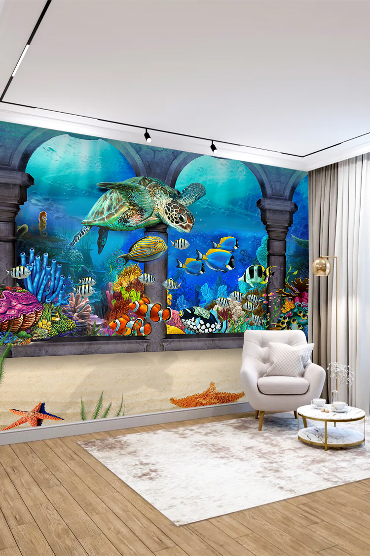 Deniz Kaplumbağası ve Tropikal Balıklarla Denizaltı Duvar Kağıdı