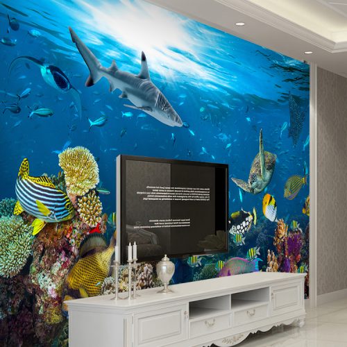 Yunuslar ve Denizaltı Manzarası – Okyanus Temalı Duvar Kağıdı