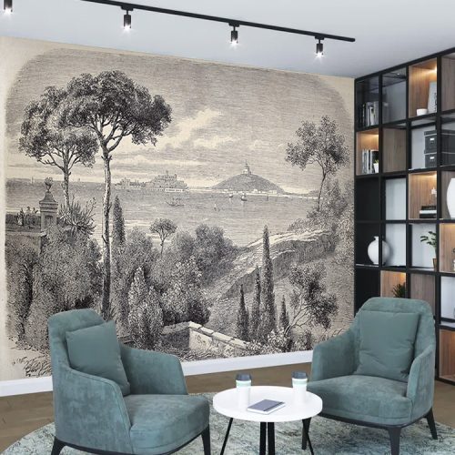 Gravür Tarzı Deniz Manzaralı Duvar Kağıdı