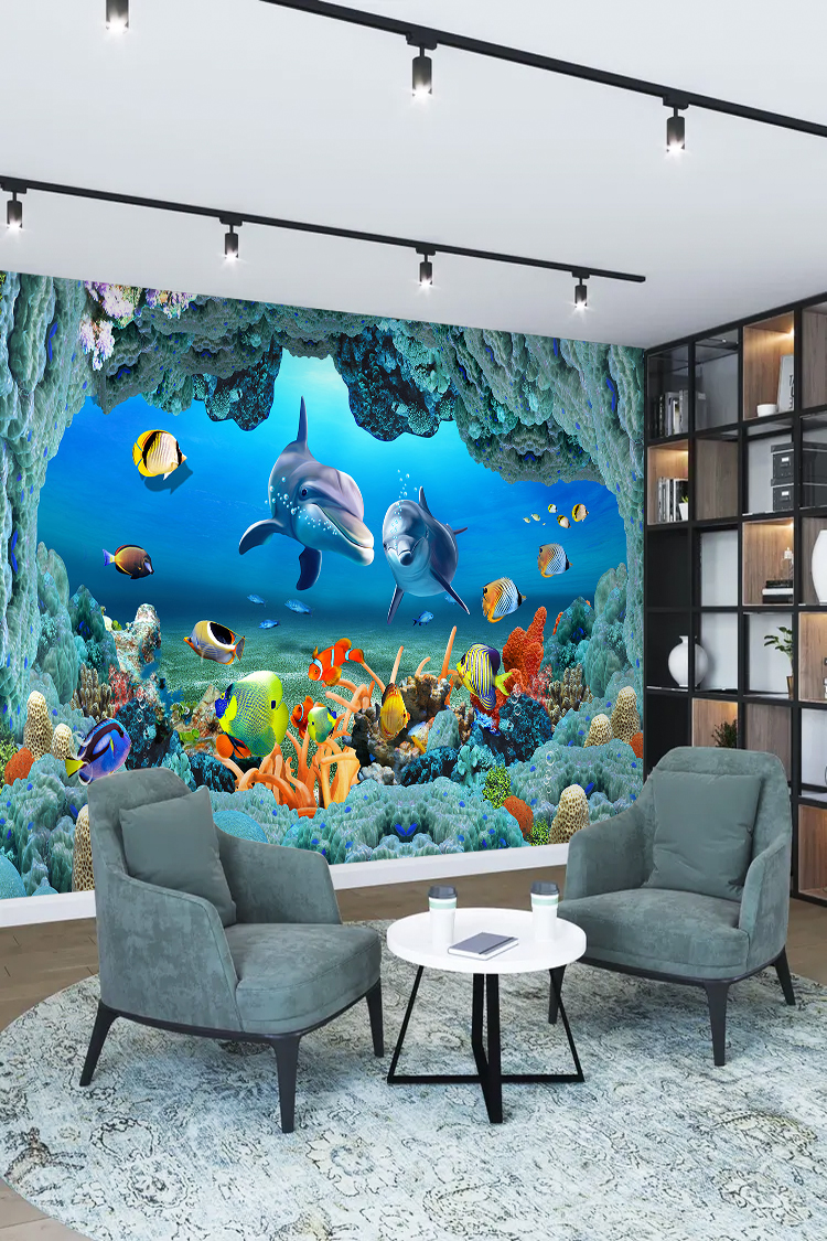 Denizaltı Manzarası – Yunuslar ve Tropikal Balıklarla Okyanus Duvar Kağıdı