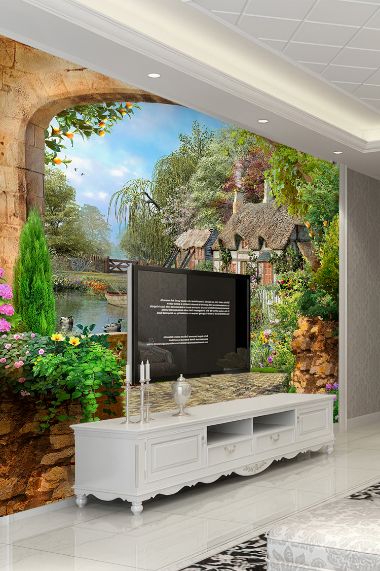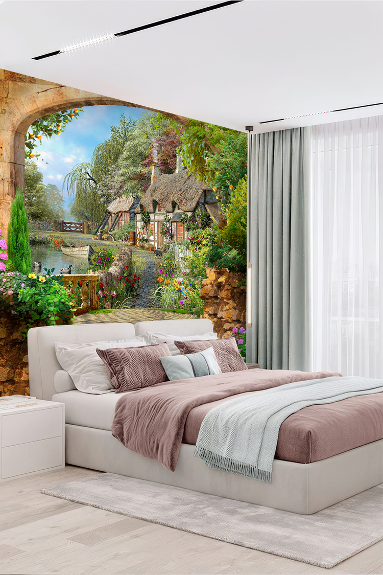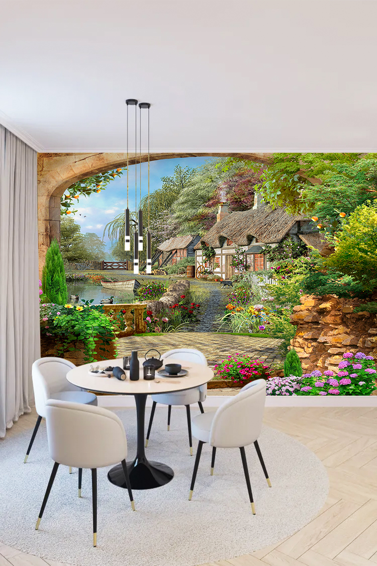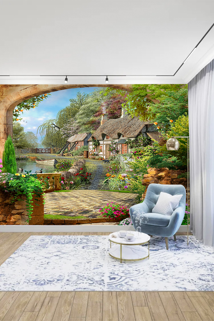 Doğal Bahçe ve Ev Manzaralı Duvar Kağıdı