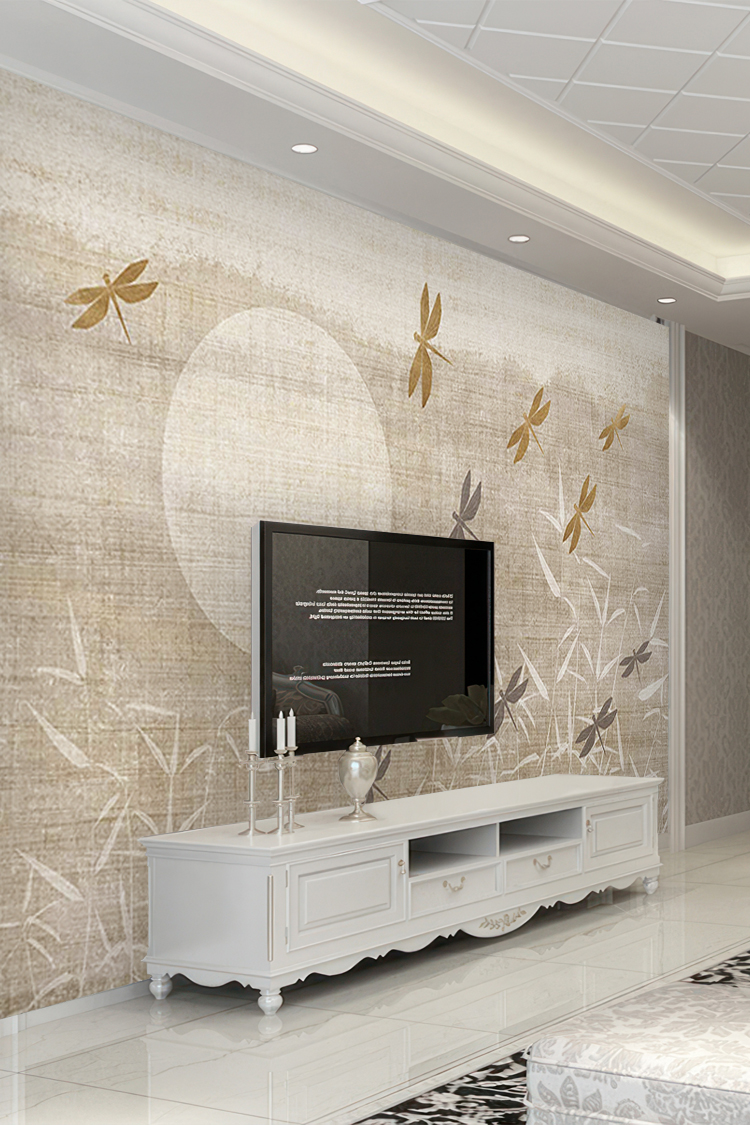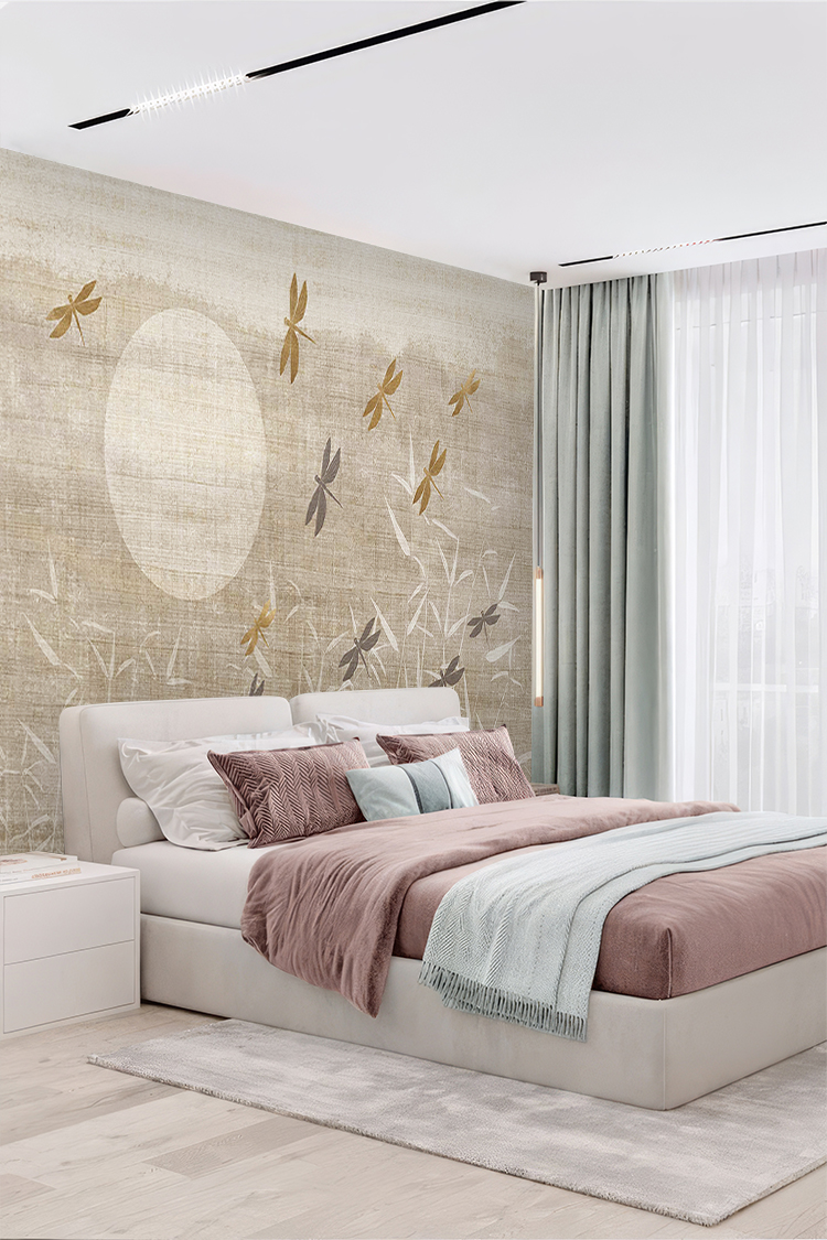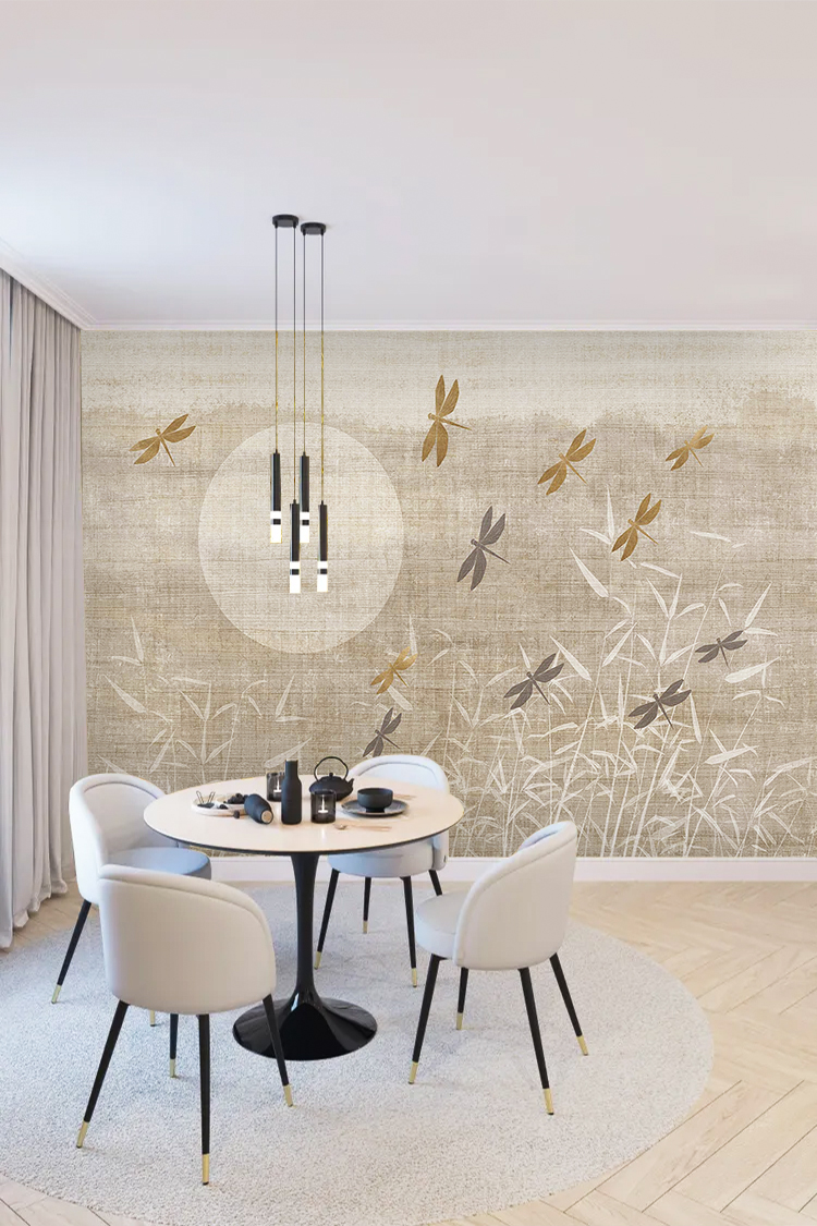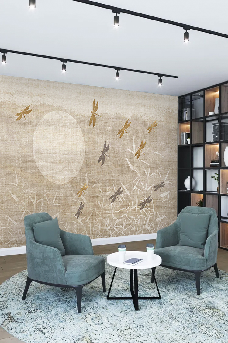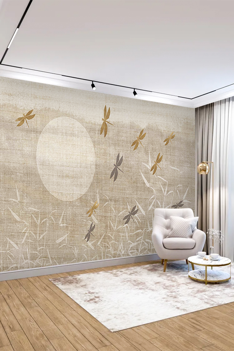 Doğal Bambu ve Böcek Tasarımlı Duvar Kağıdı