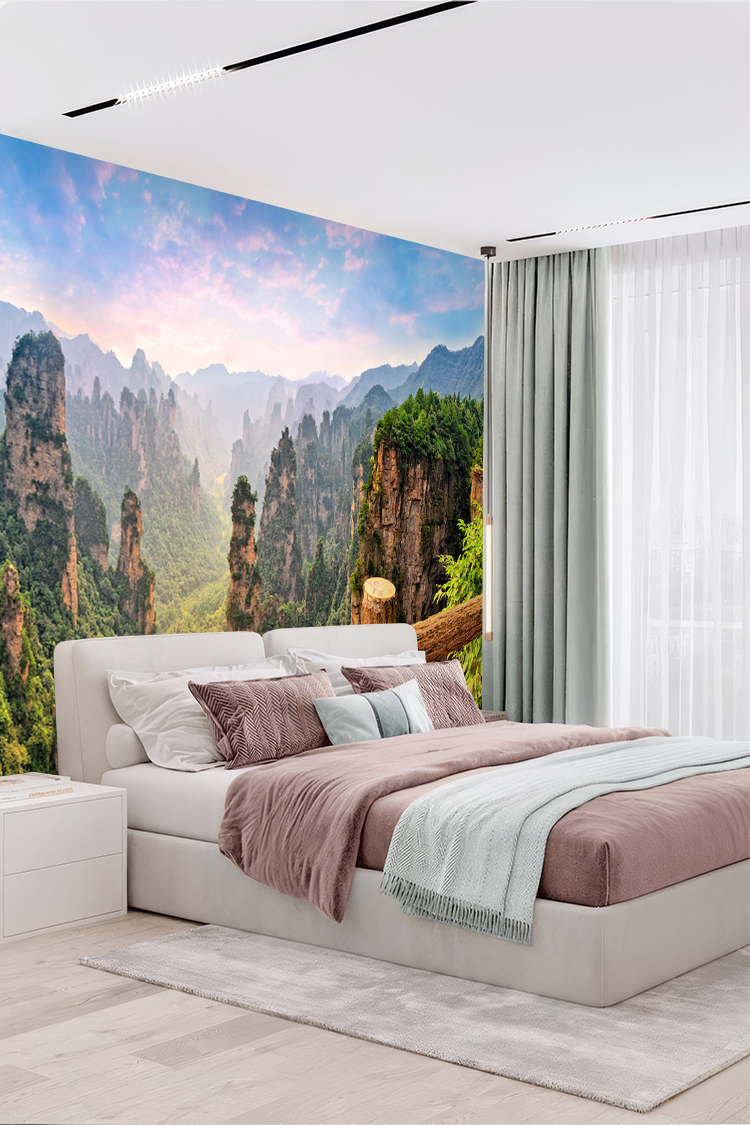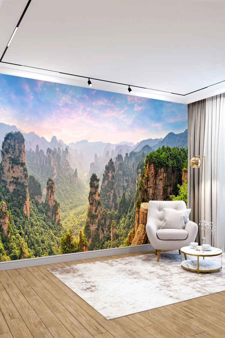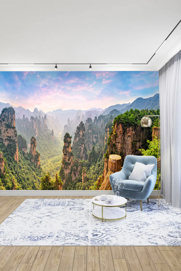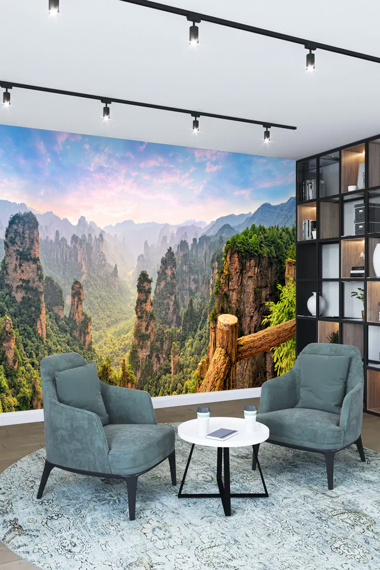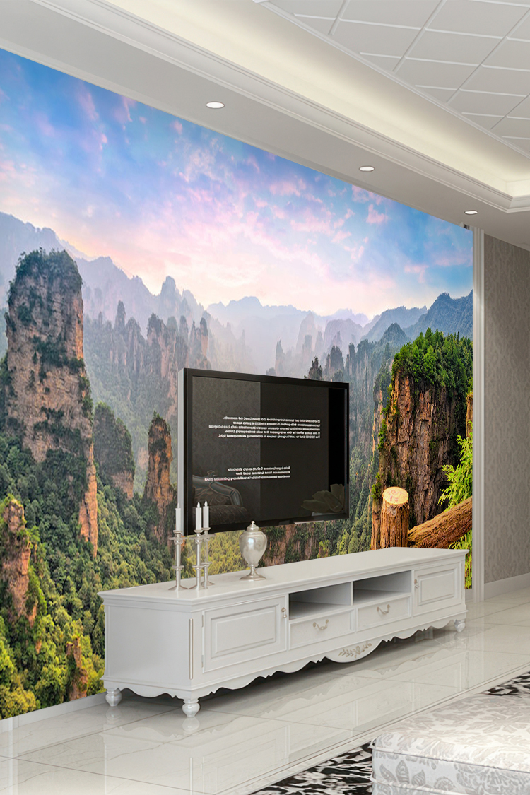 Doğal dağ manzaralı orman temalı 3D duvar kağıdı