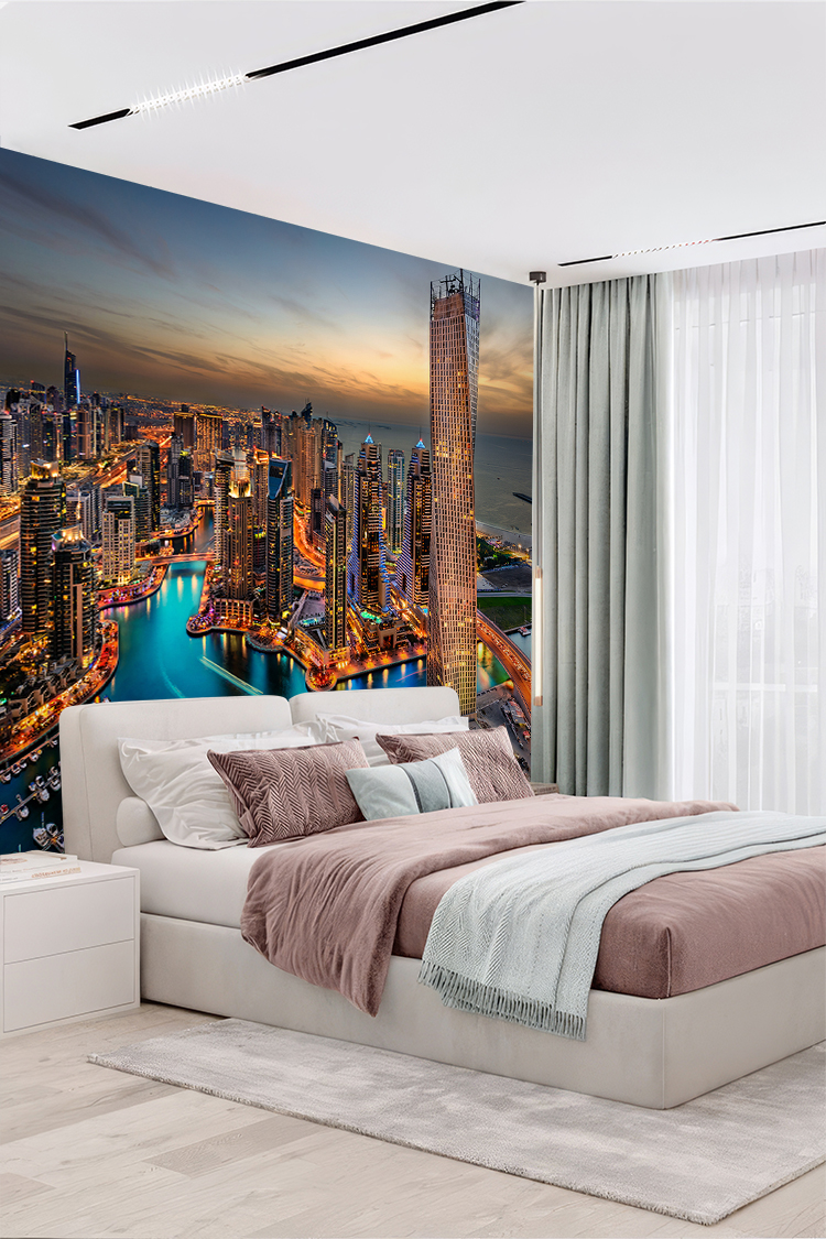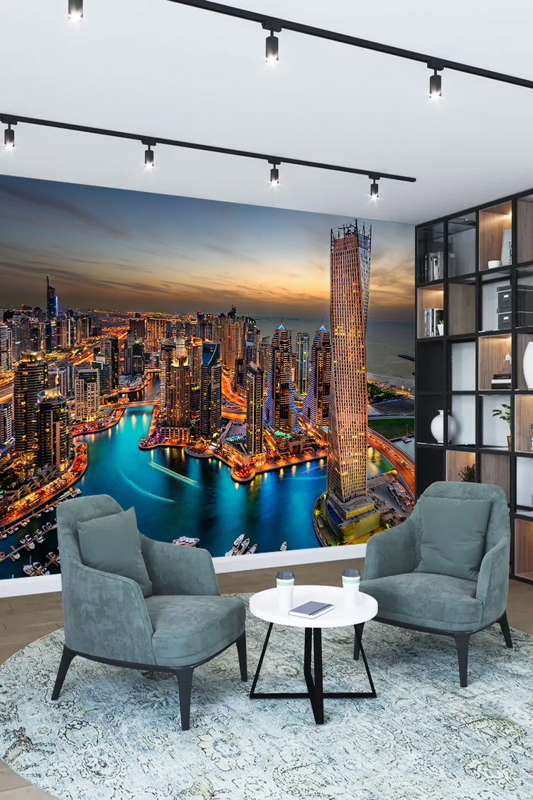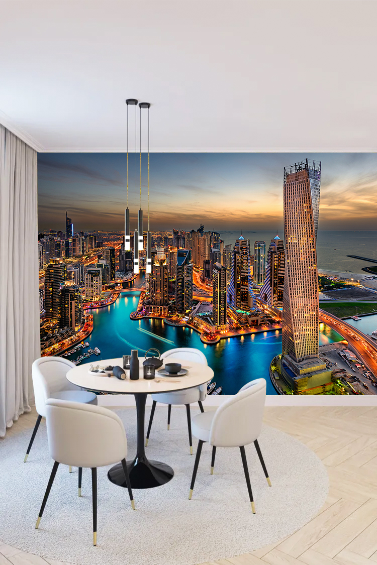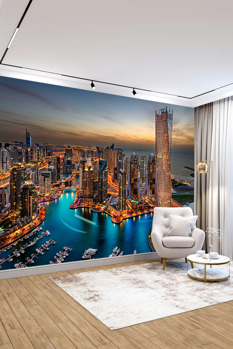 Dubai Gece Manzarası ve Modern Yüksek Binalar Duvar Kağıdı