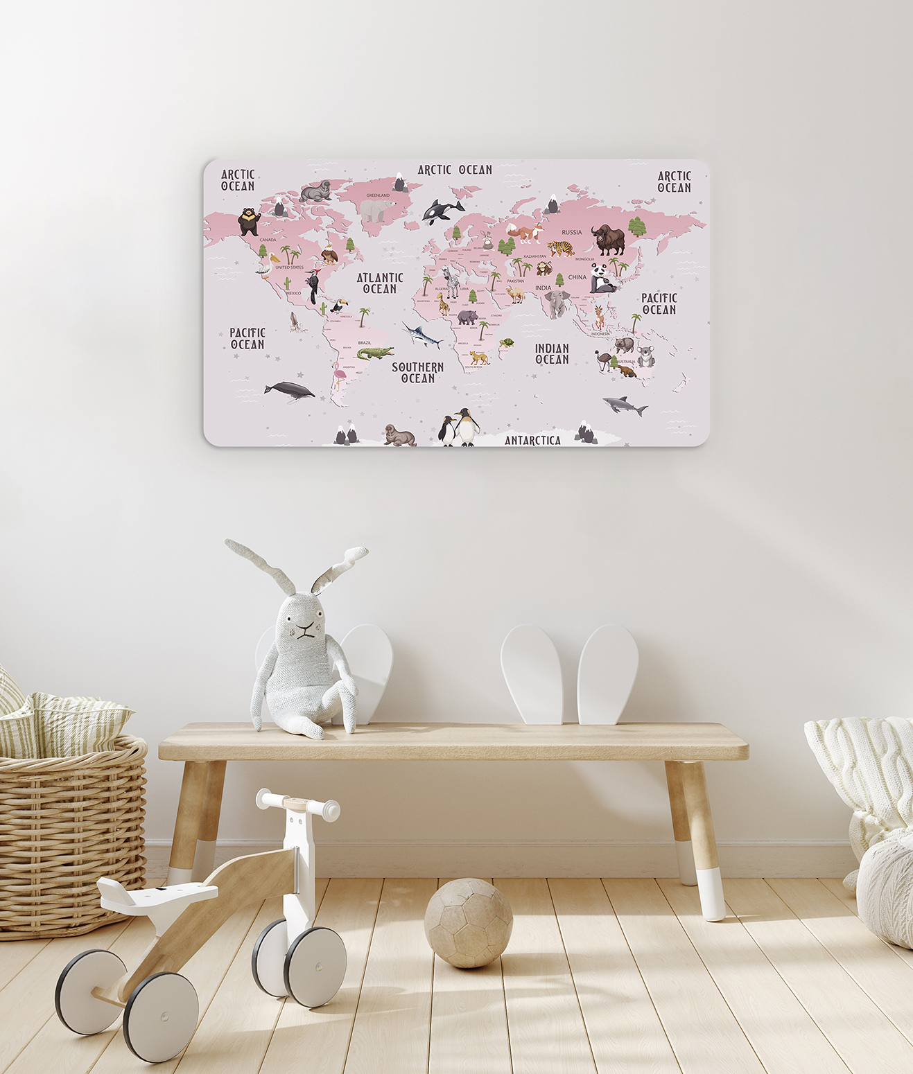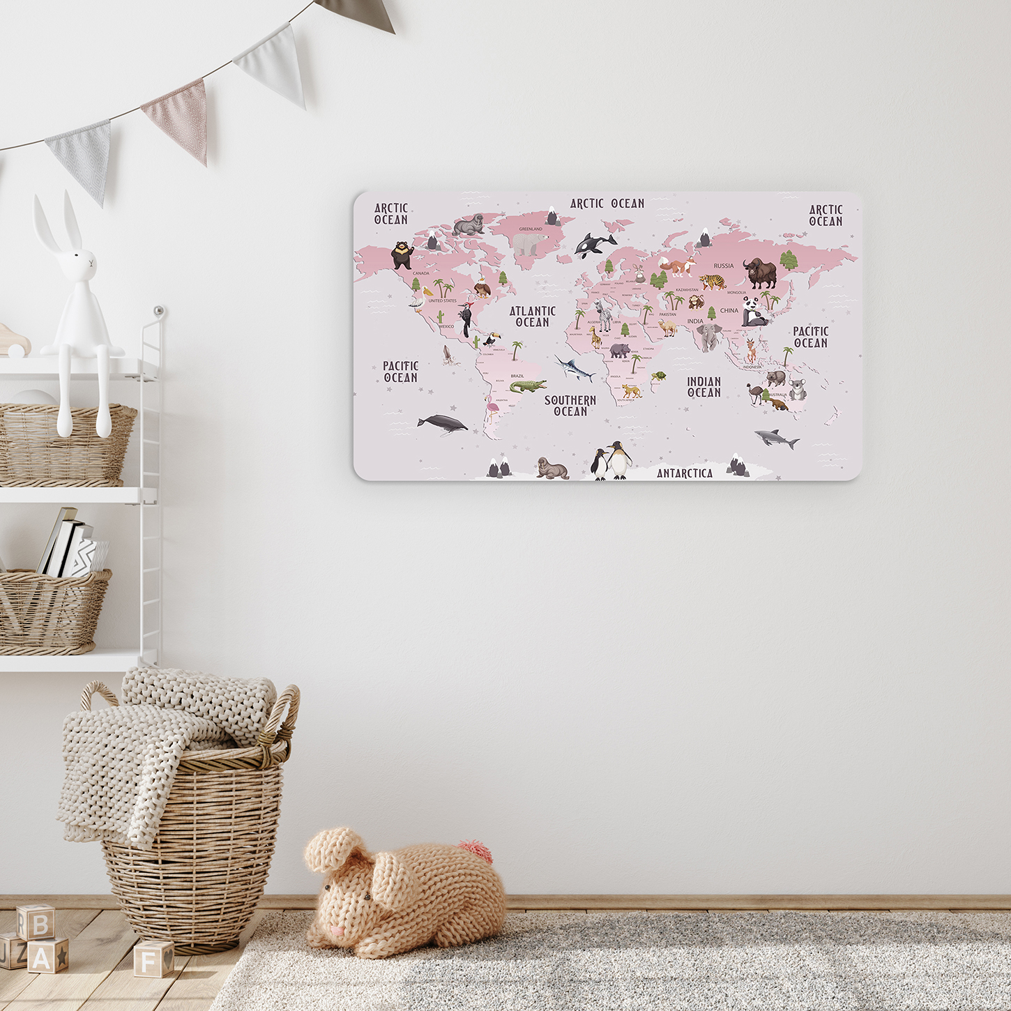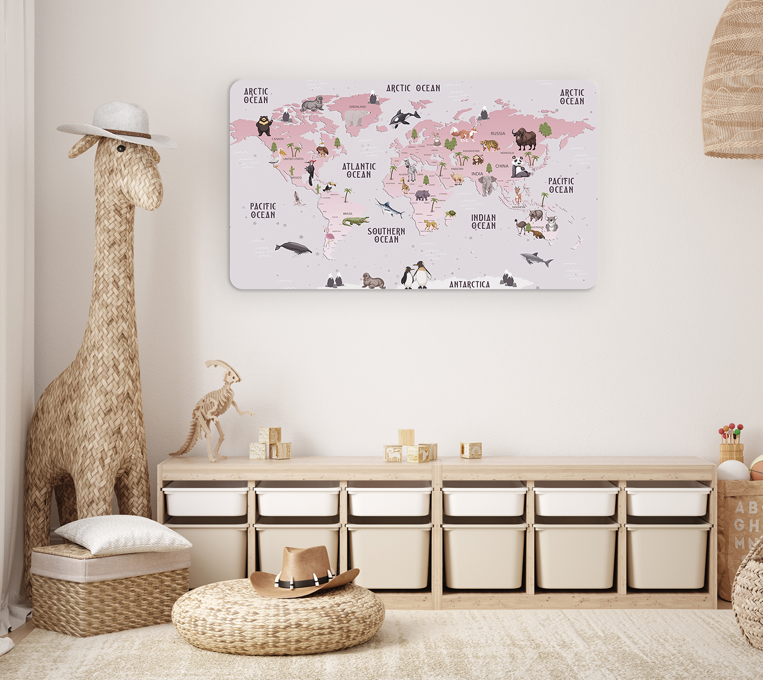 Dünya Haritası Duvar Kağıdı – Sevimli Hayvanlar ve Canlı Renkler 🎨🚂
