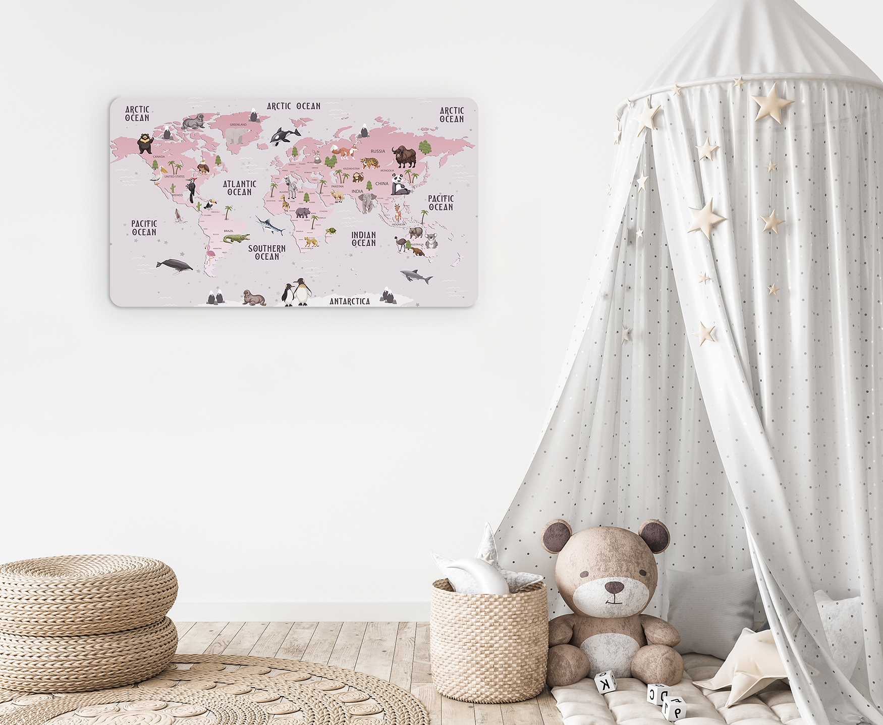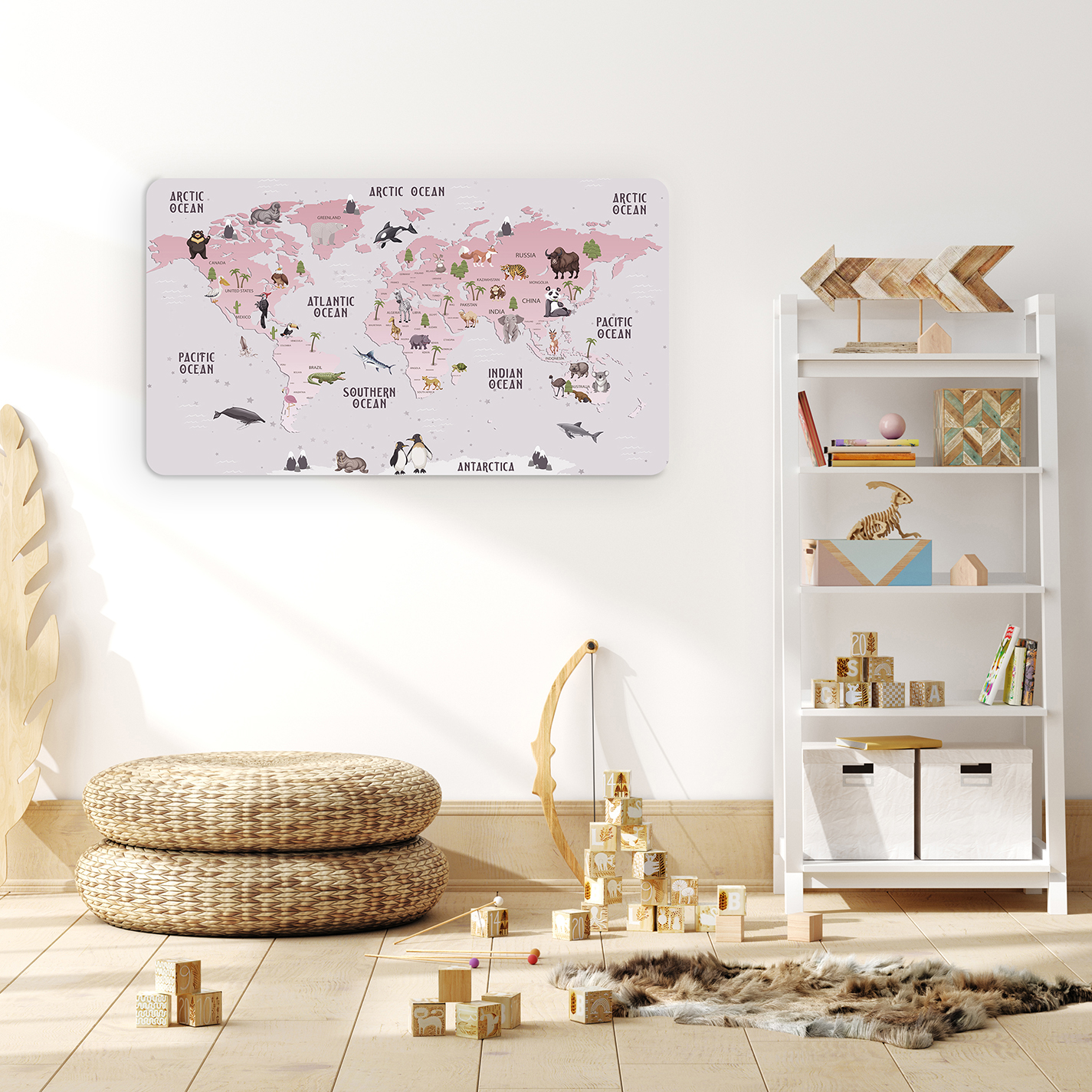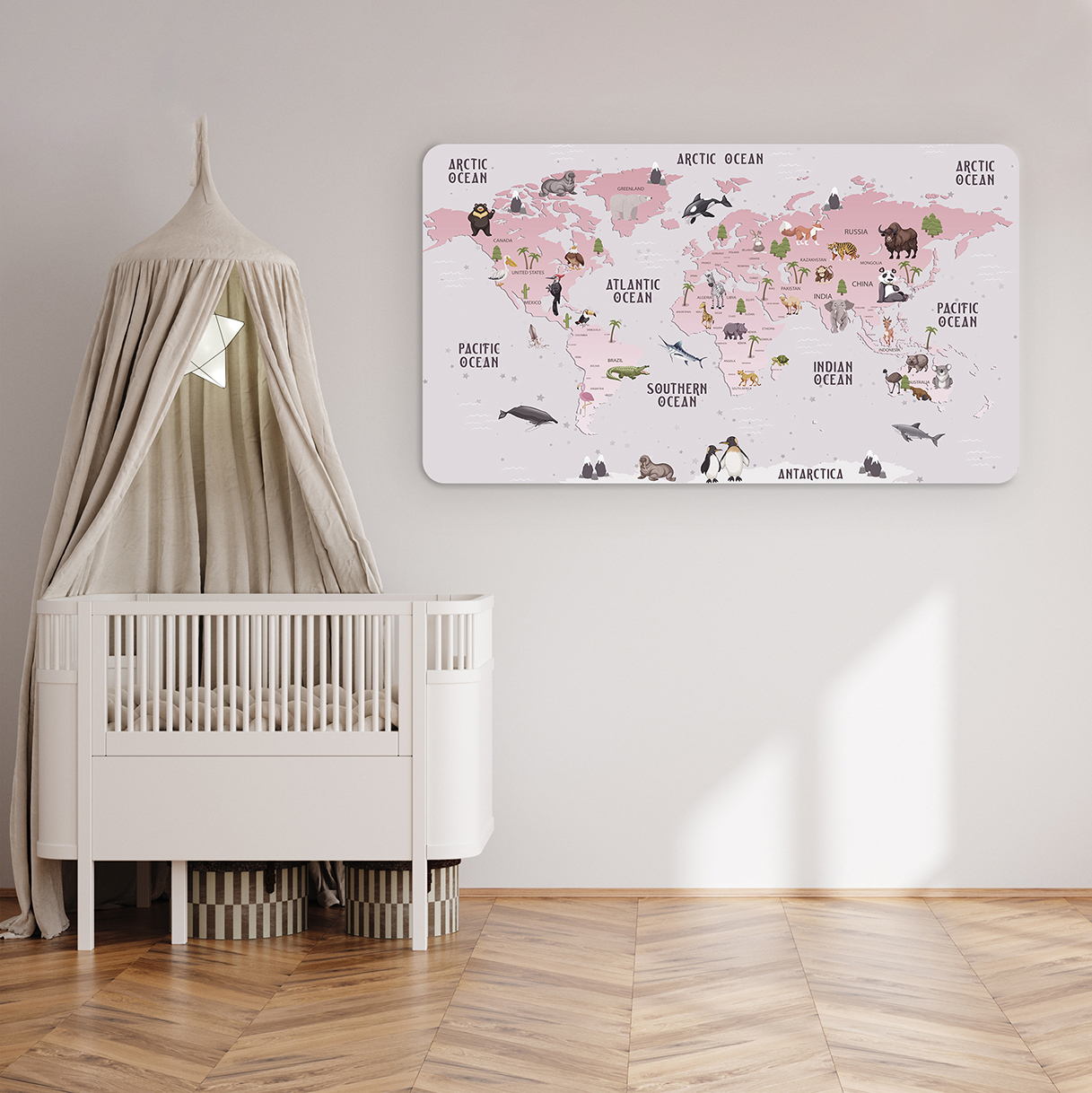 Dünya Haritası Duvar Kağıdı – Sevimli Hayvanlar ve Canlı Renkler 🎨🚂