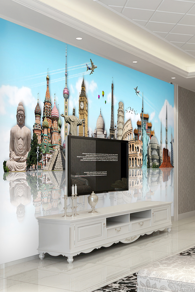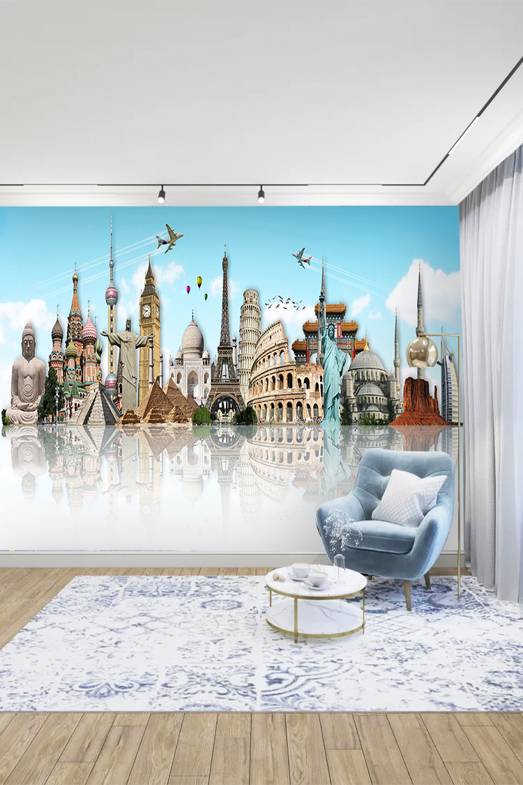 Dünya Simgeleri ve Seyahat Temalı Duvar Kağıdı